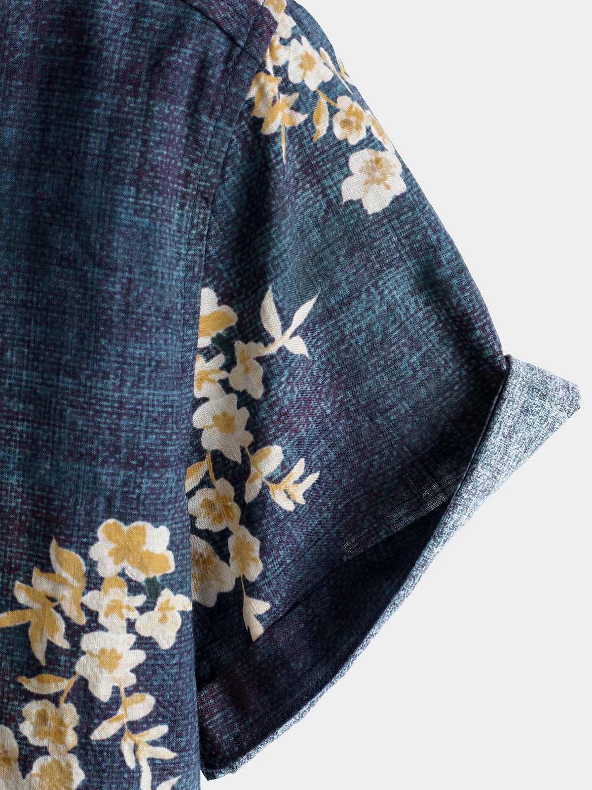 Men's Floral Printed Button Up Casual Short Sleeve Shirt