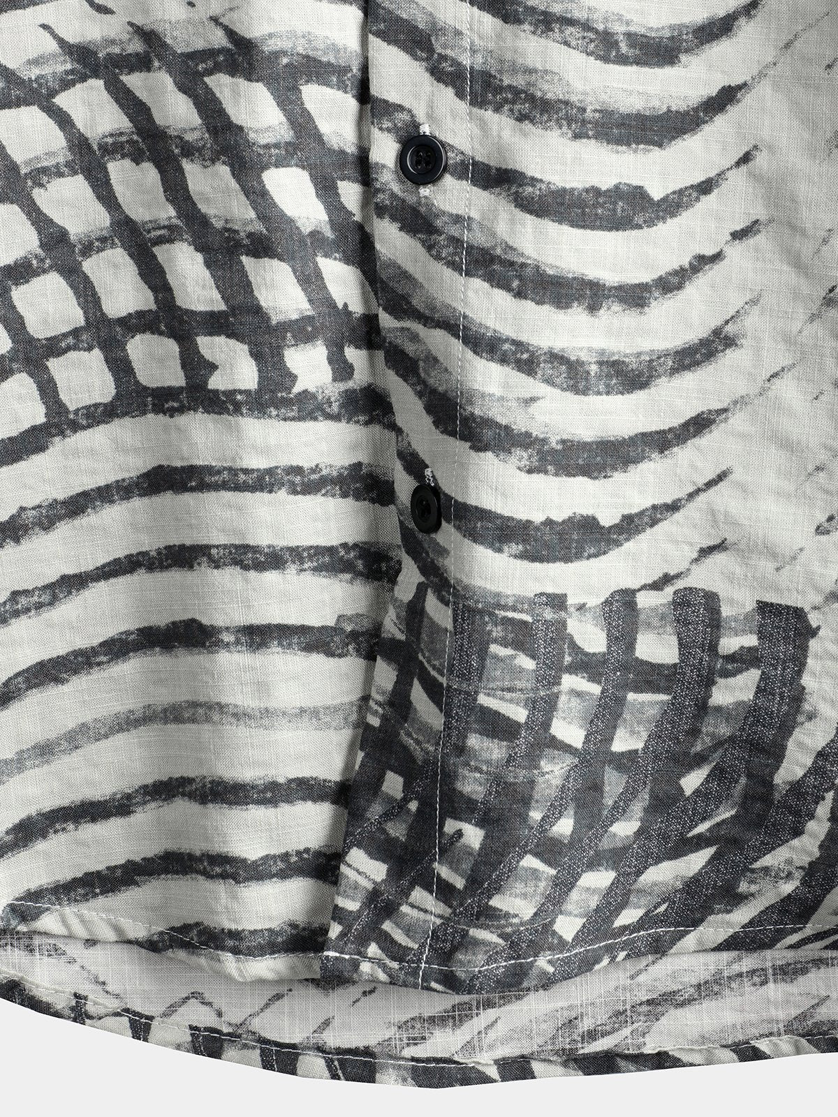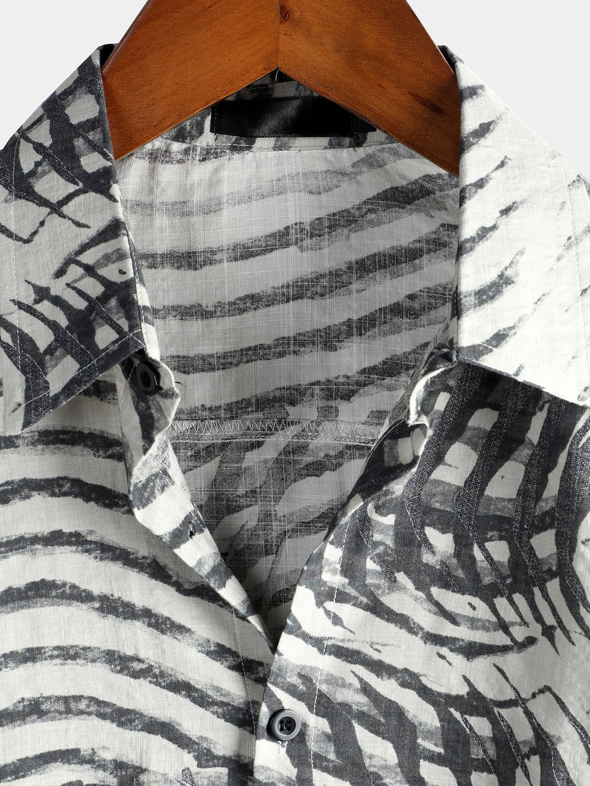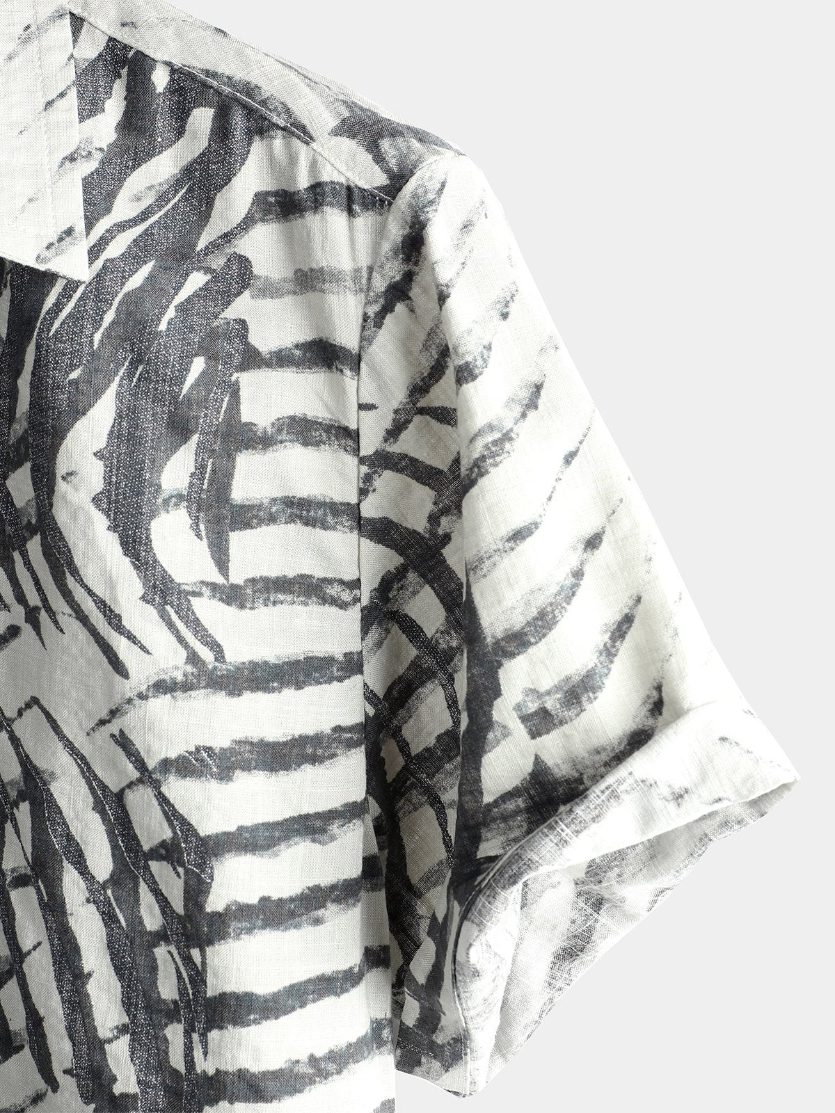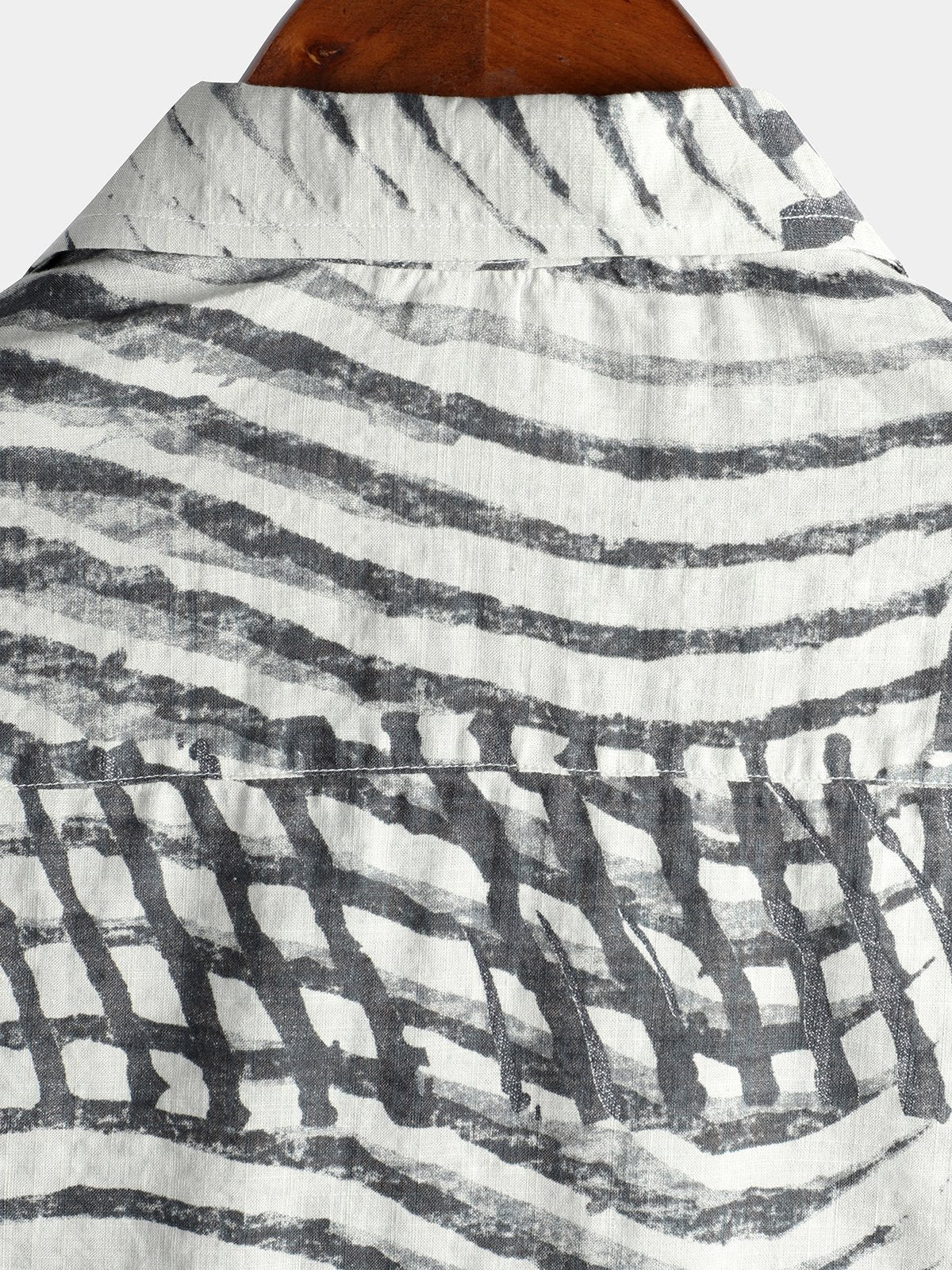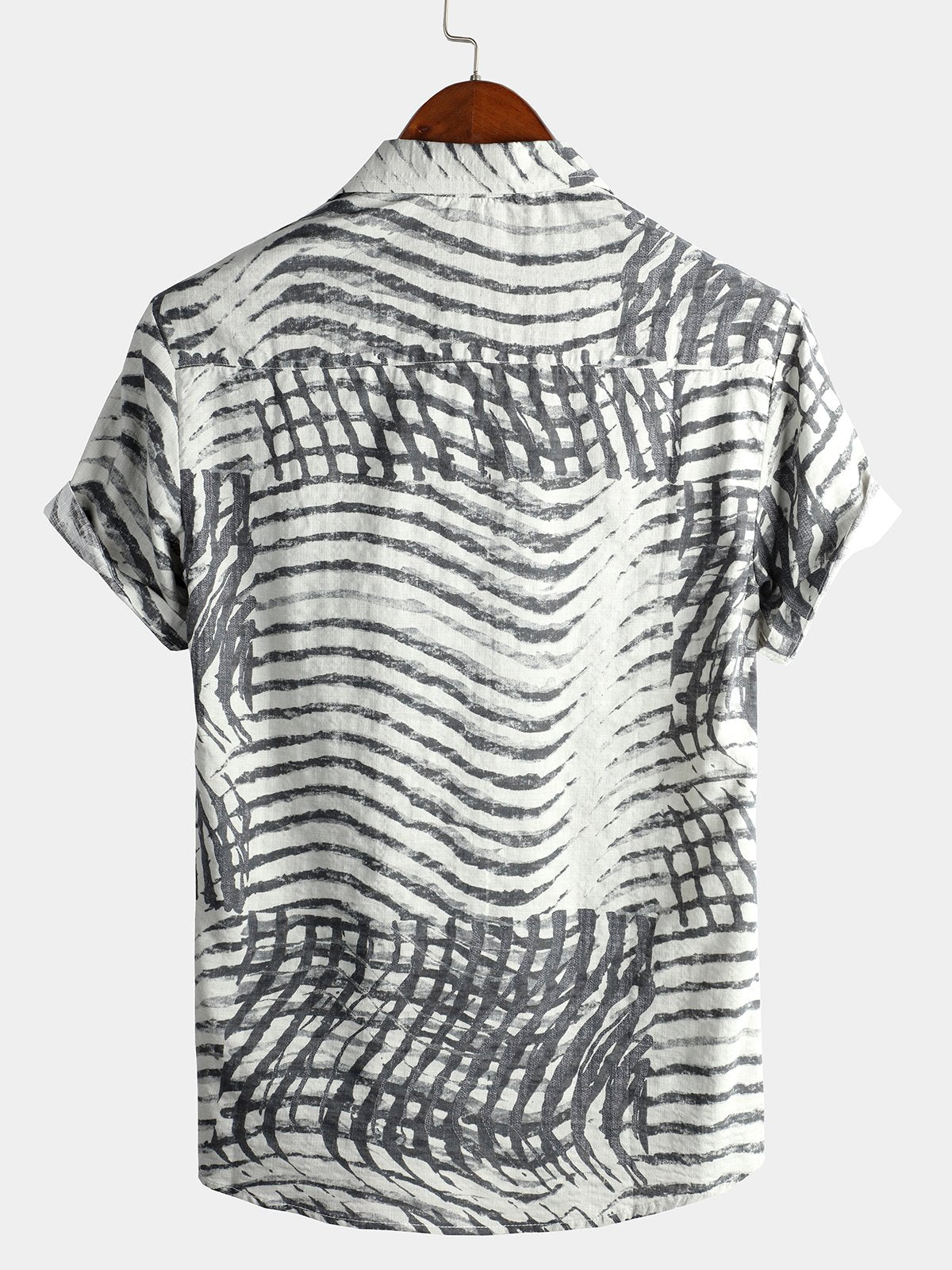 Men's Short Sleeve Striped Printed Retro Cotton Shirt