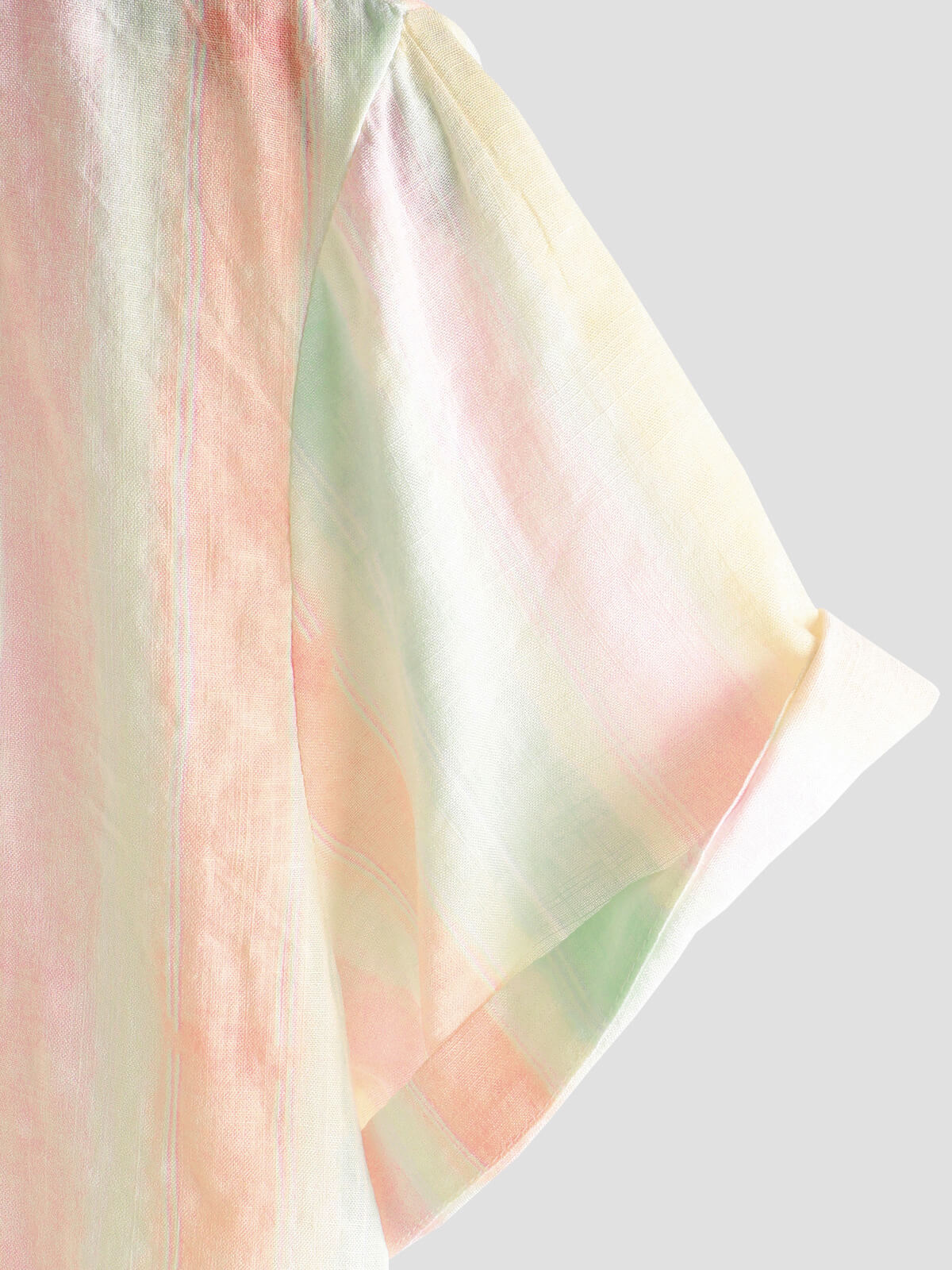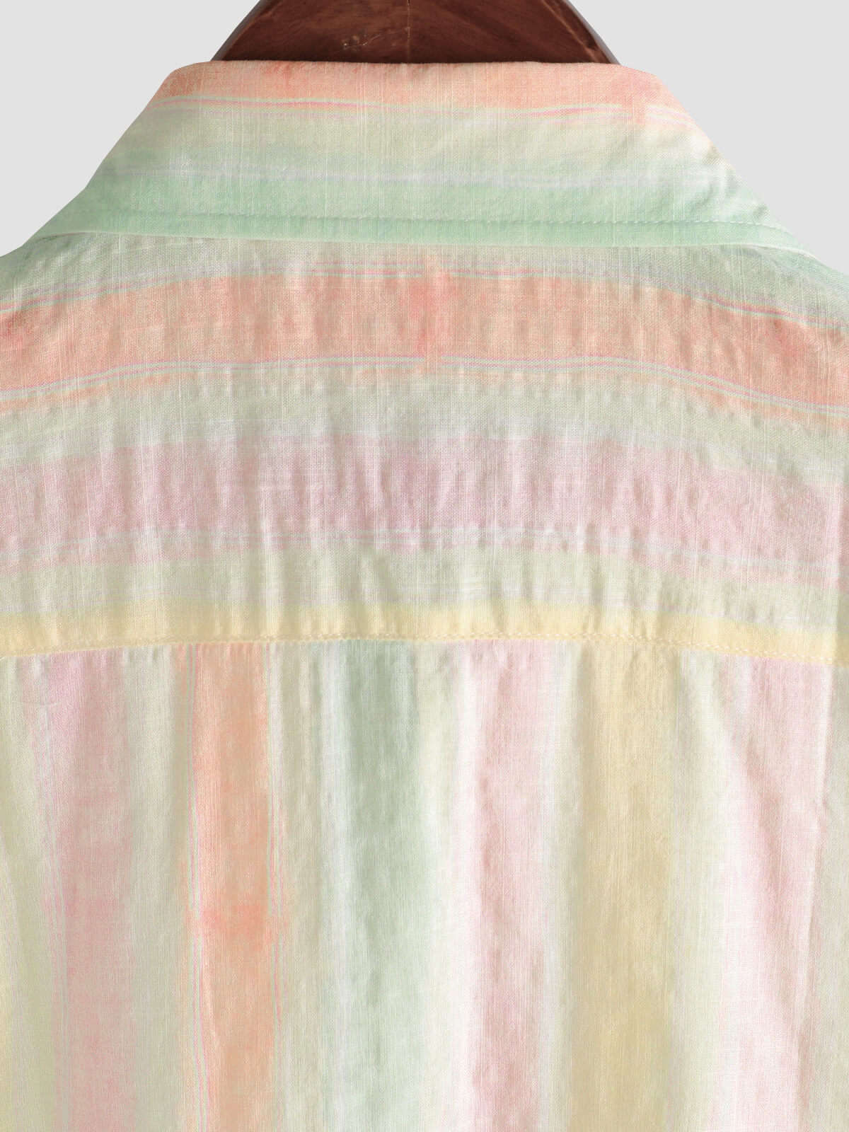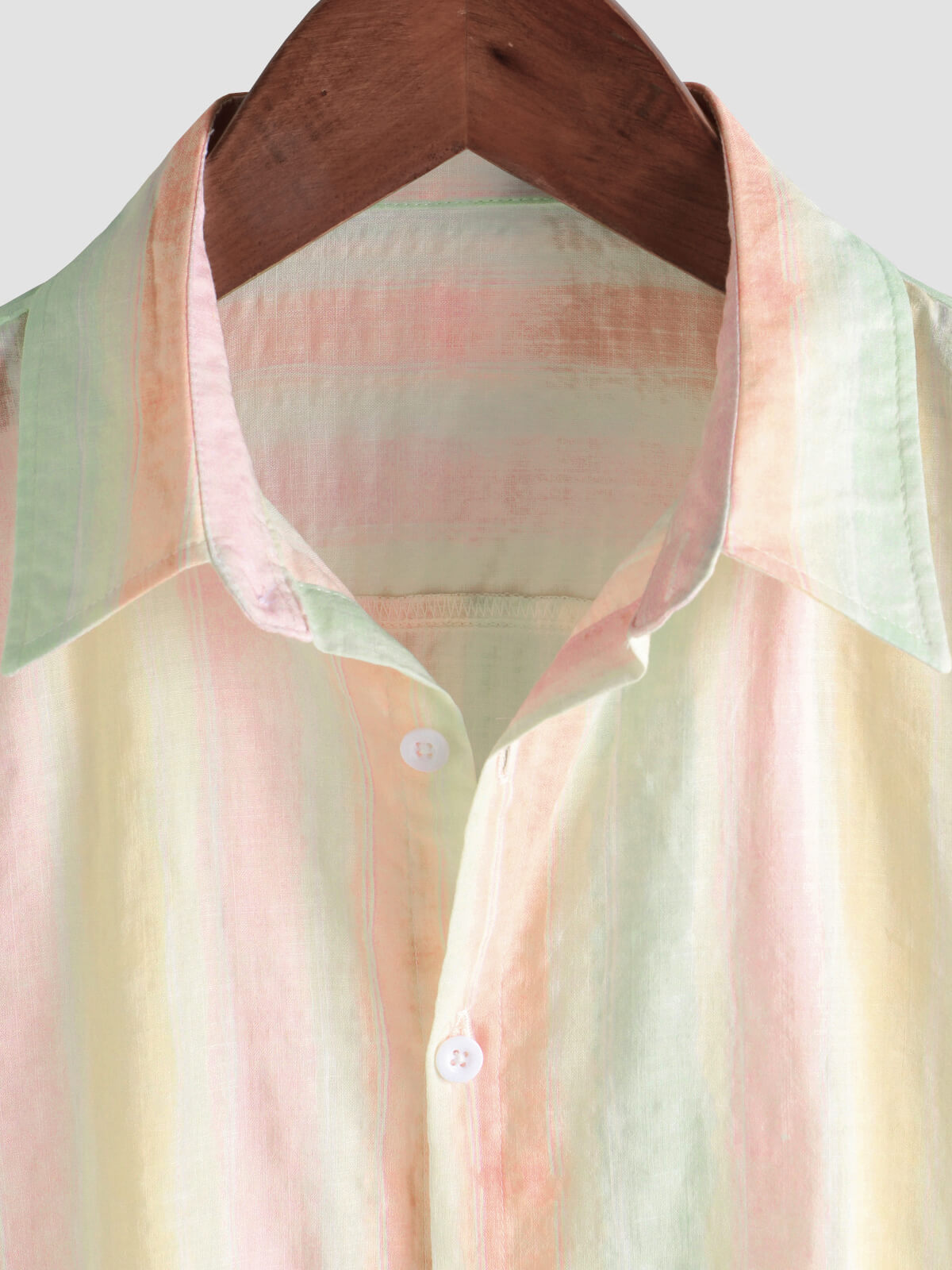 Men's Retro Colorful Striped Holiday Button Up Casual Short Sleeve Shirt