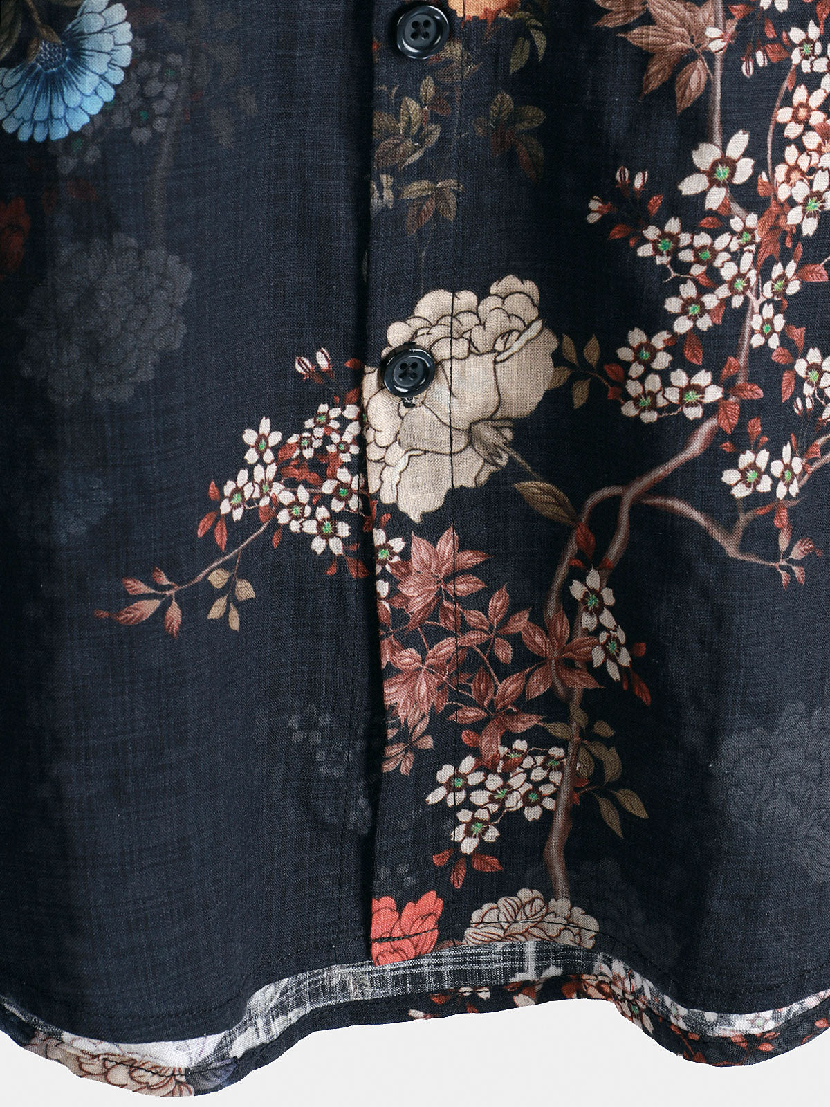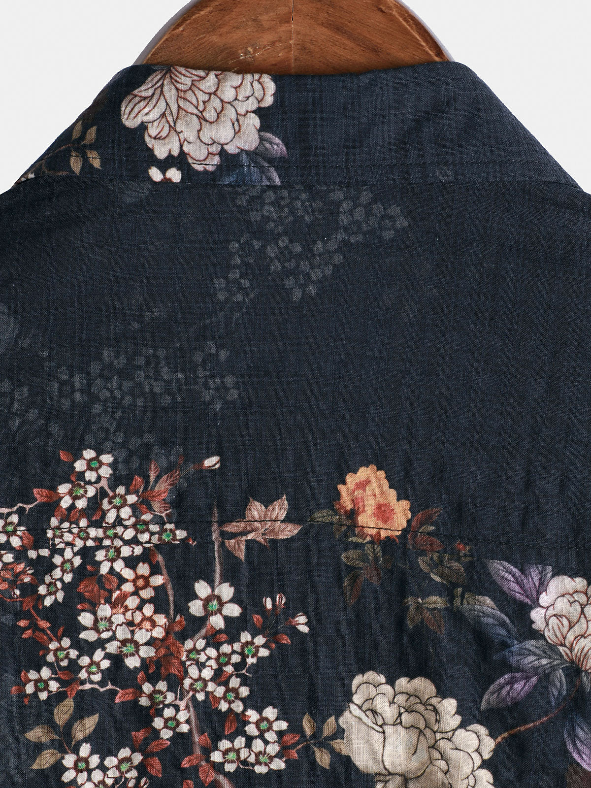 Men's Retro Floral Vacation Button Up Short Sleeve Shirt
