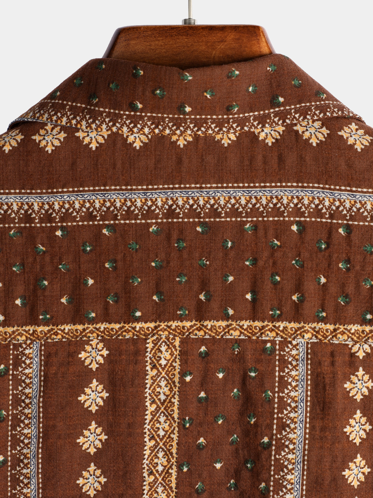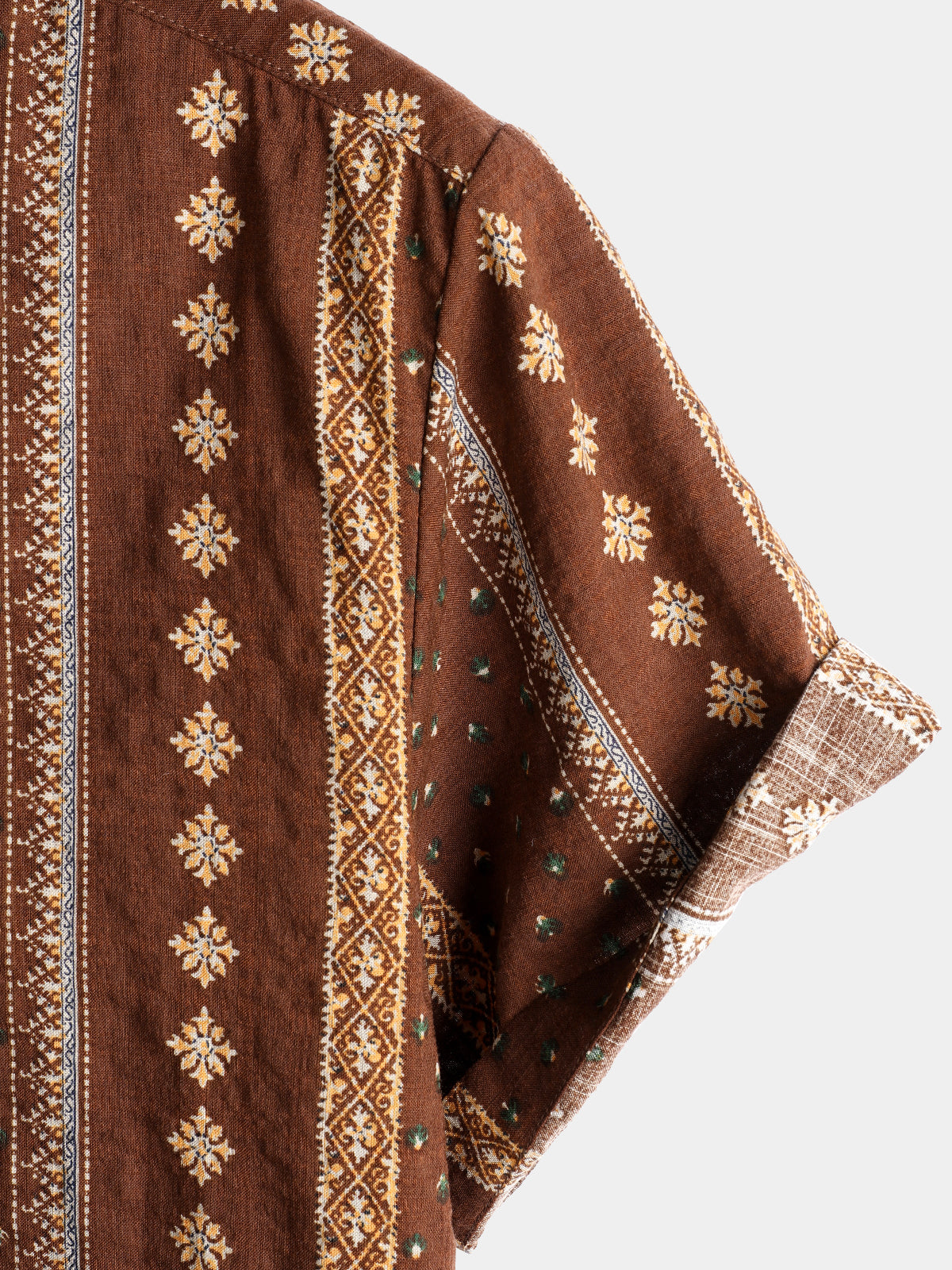 Men's Retro Cotton Button Up 70s Vintage Vertical Striped Short Sleeve Shirt