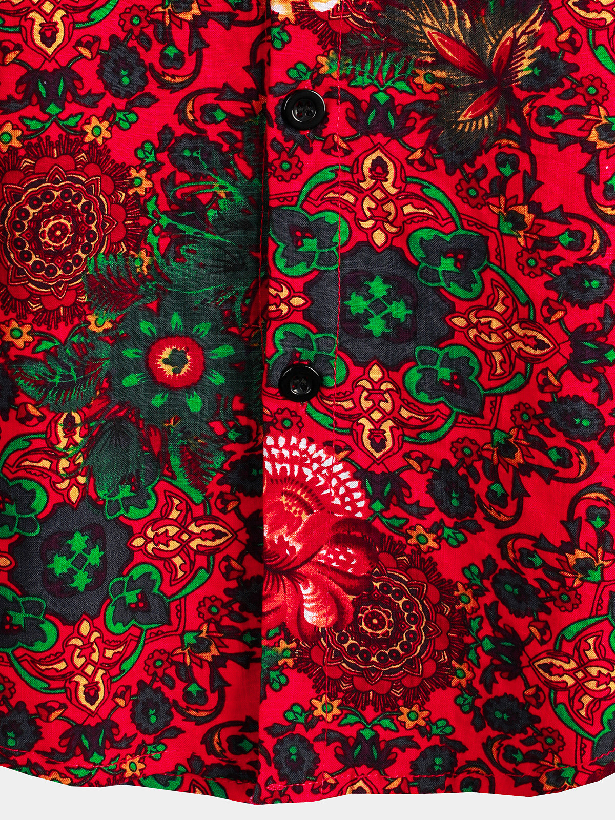 Men's Vintage Floral Print Hawaiian Cotton Short Sleeve Shirt