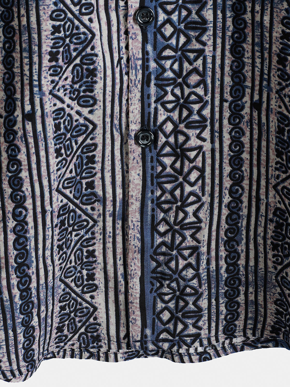 Men's Boho Navy Blue Stripe Print Short Sleeve Shirt