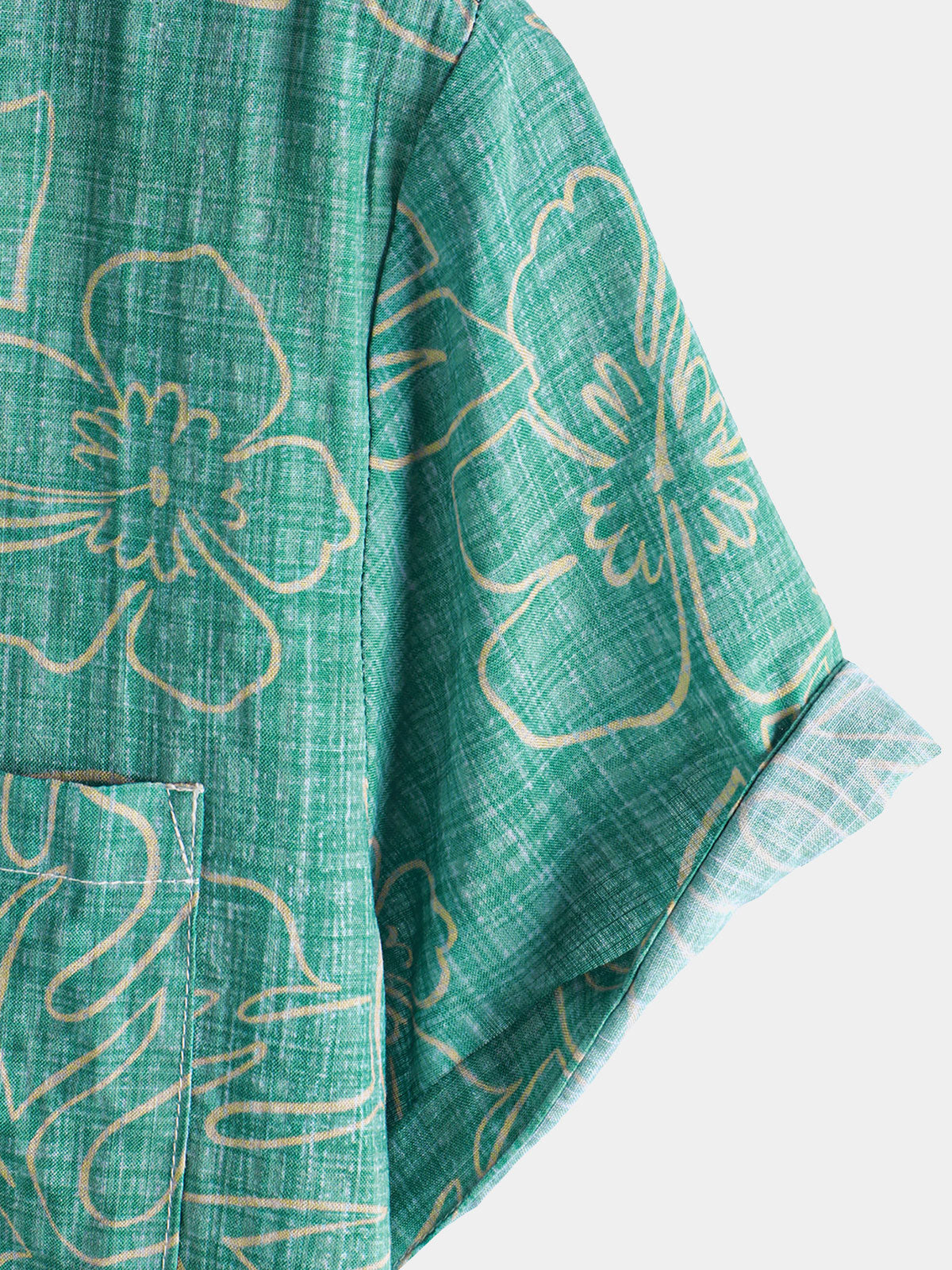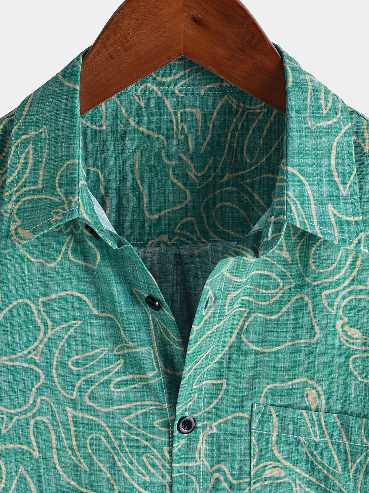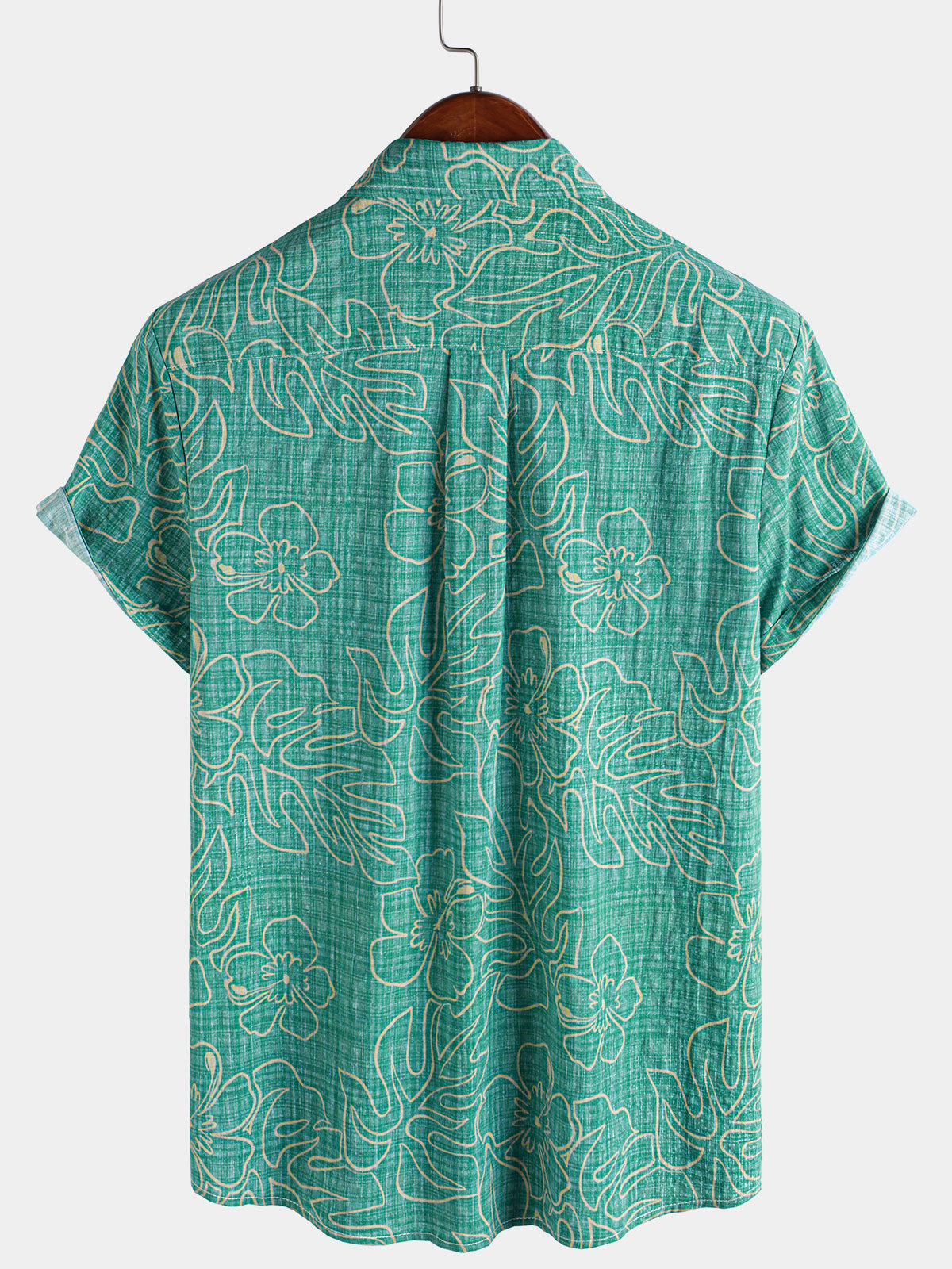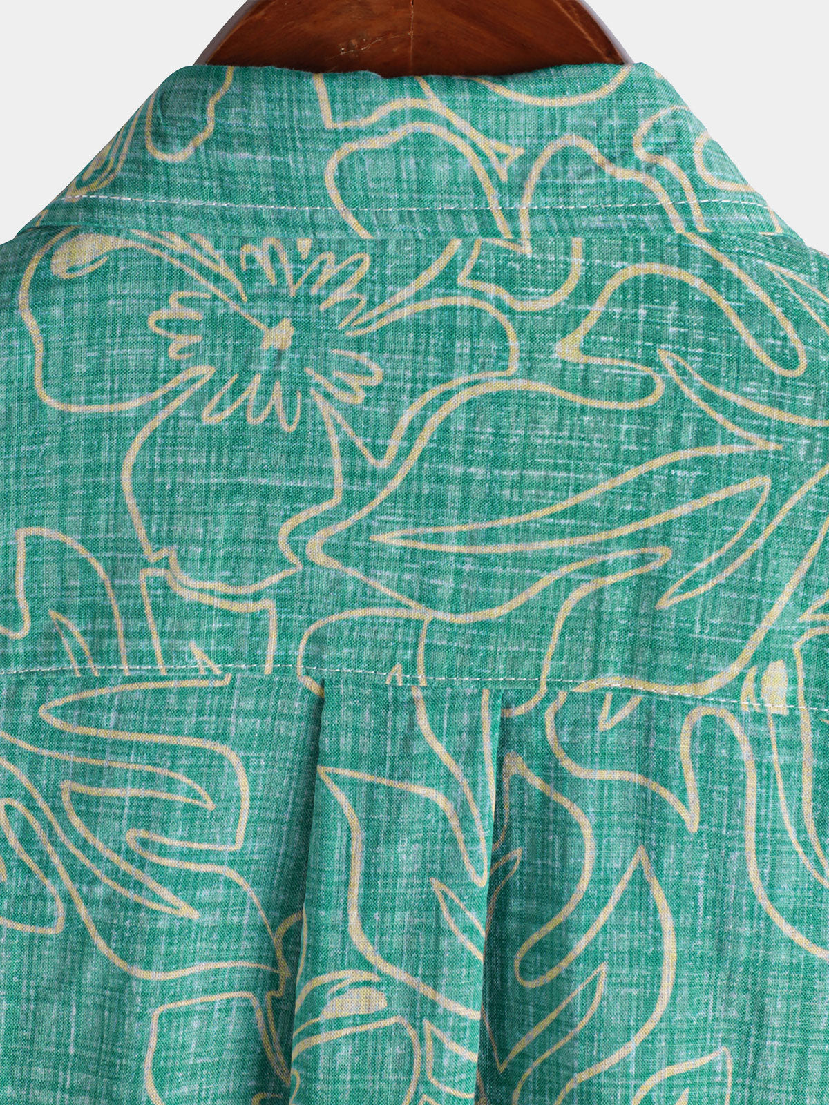 Men's Summer Green Beach Hawaiian Short Sleeve Shirt