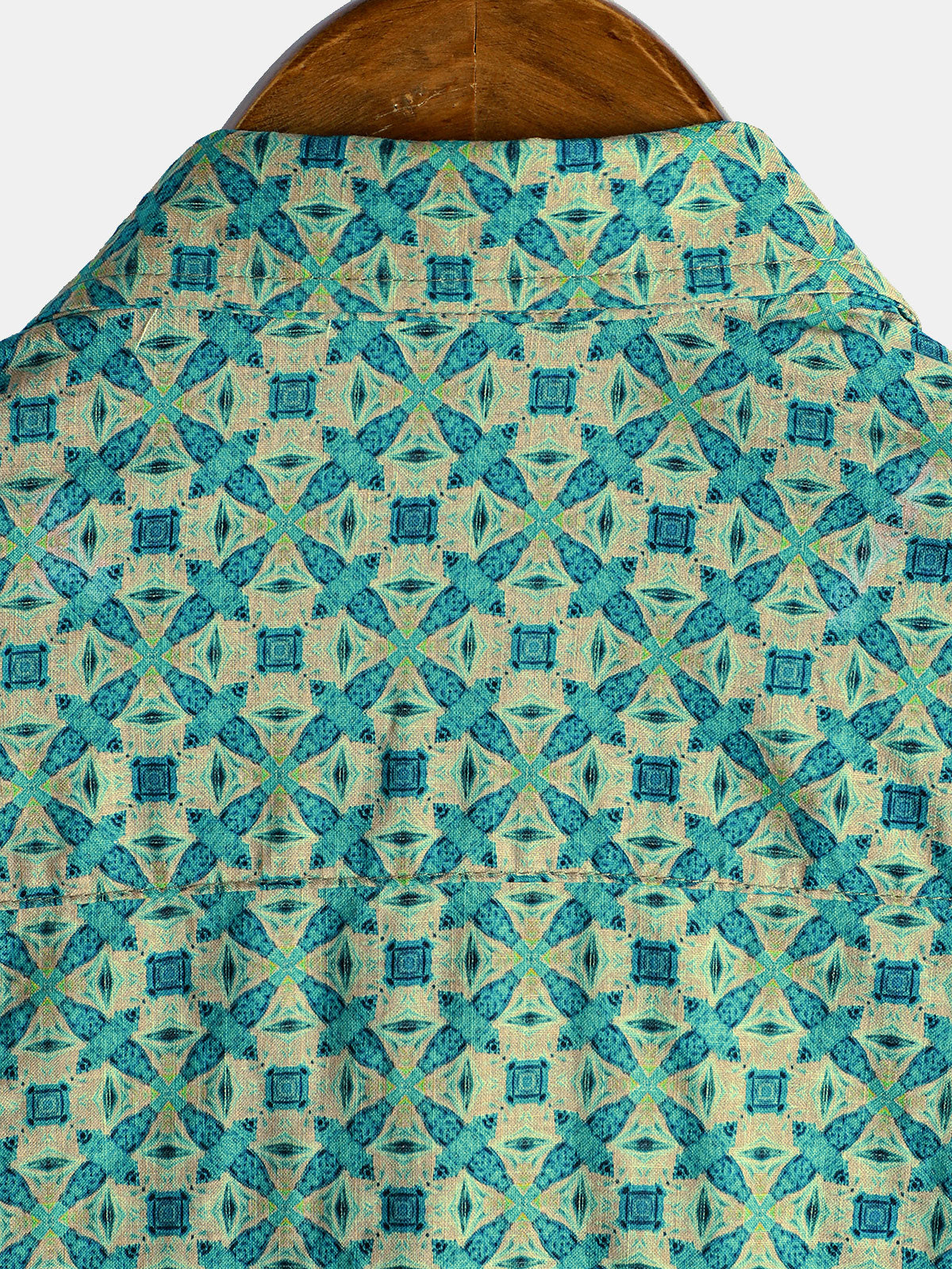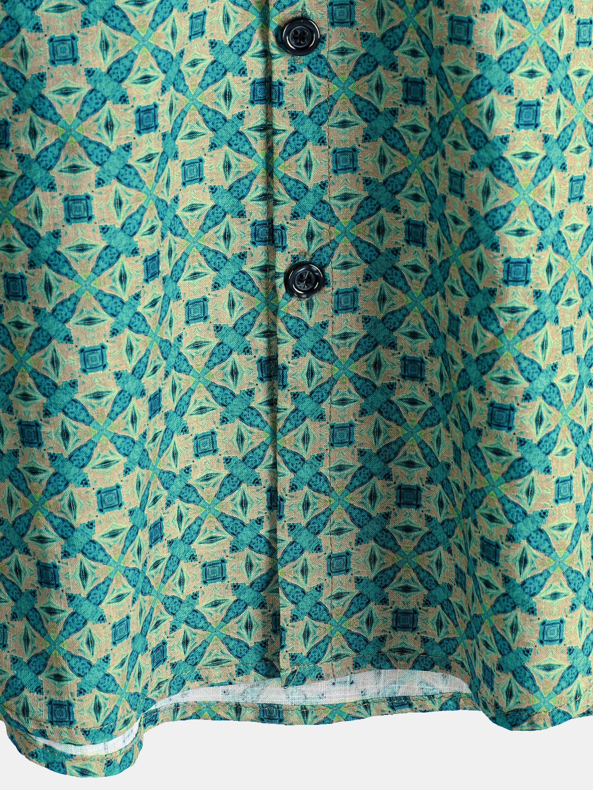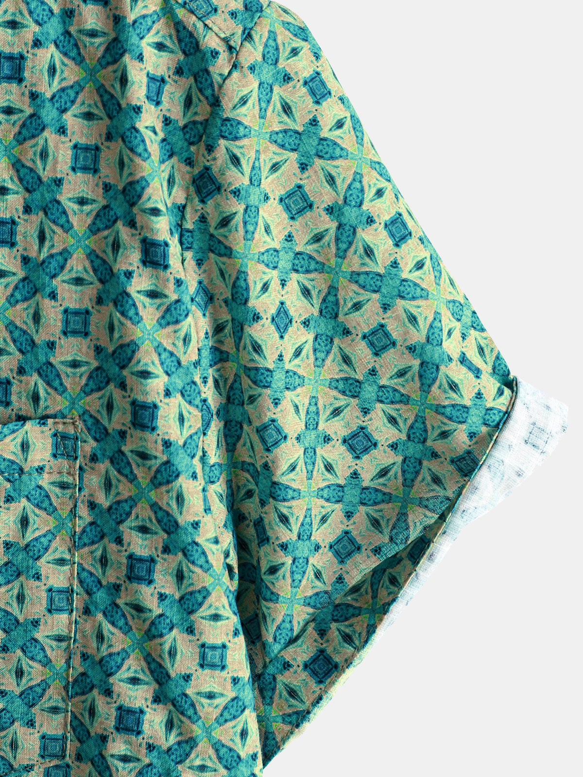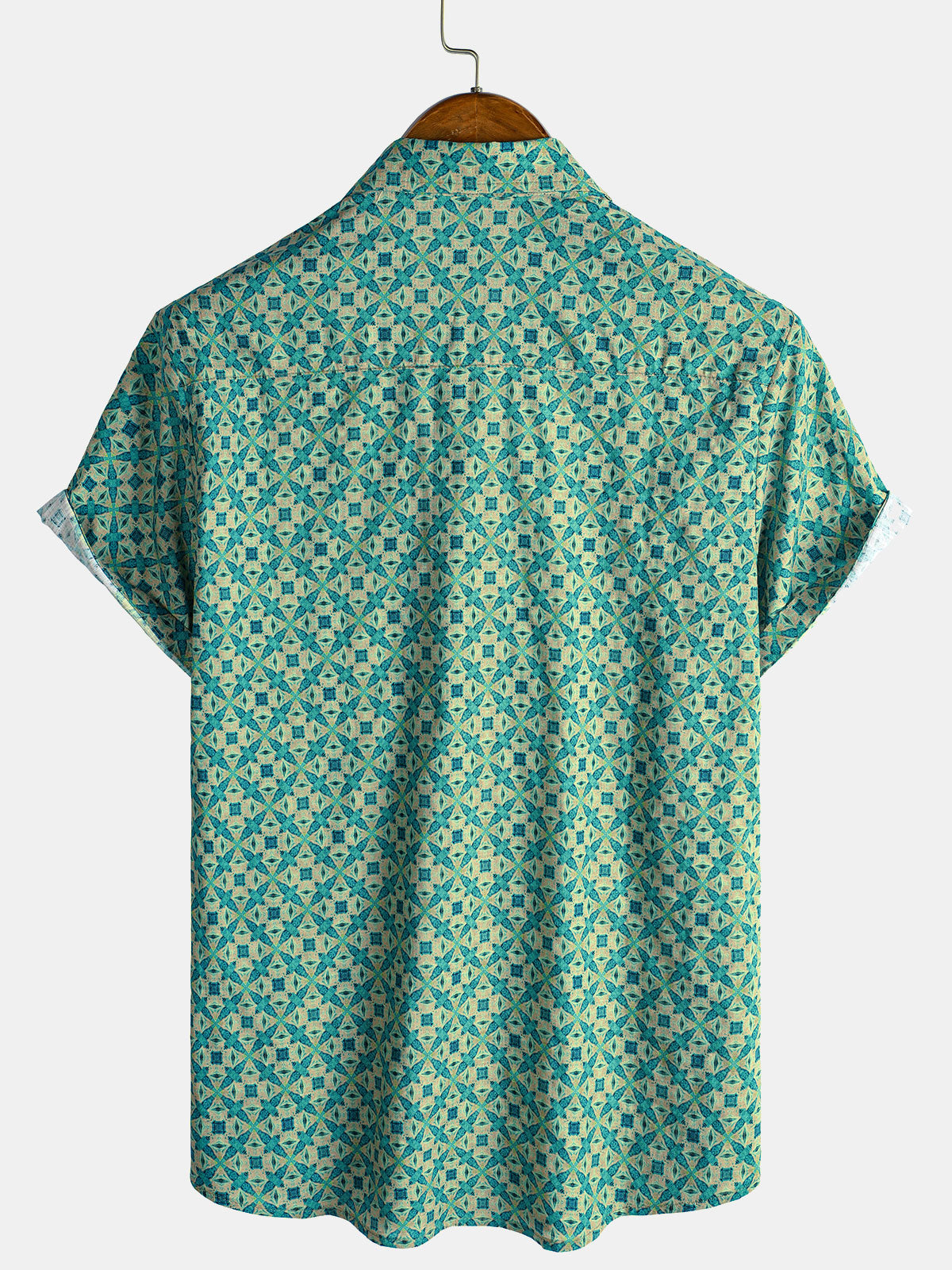 Men's Casual Retro Summer Beach Cotton Short Sleeve Shirt