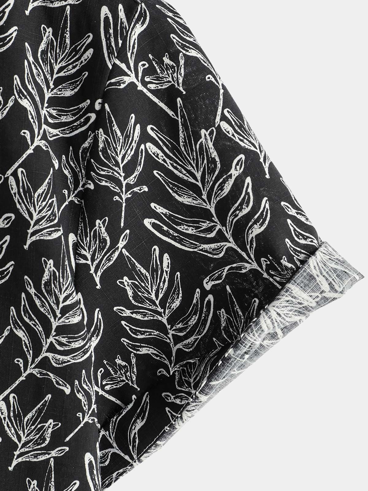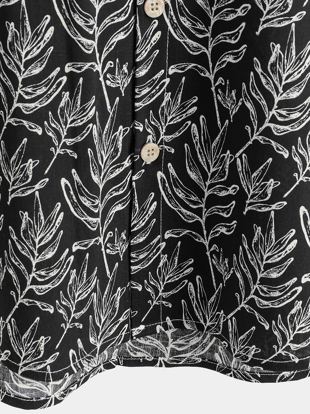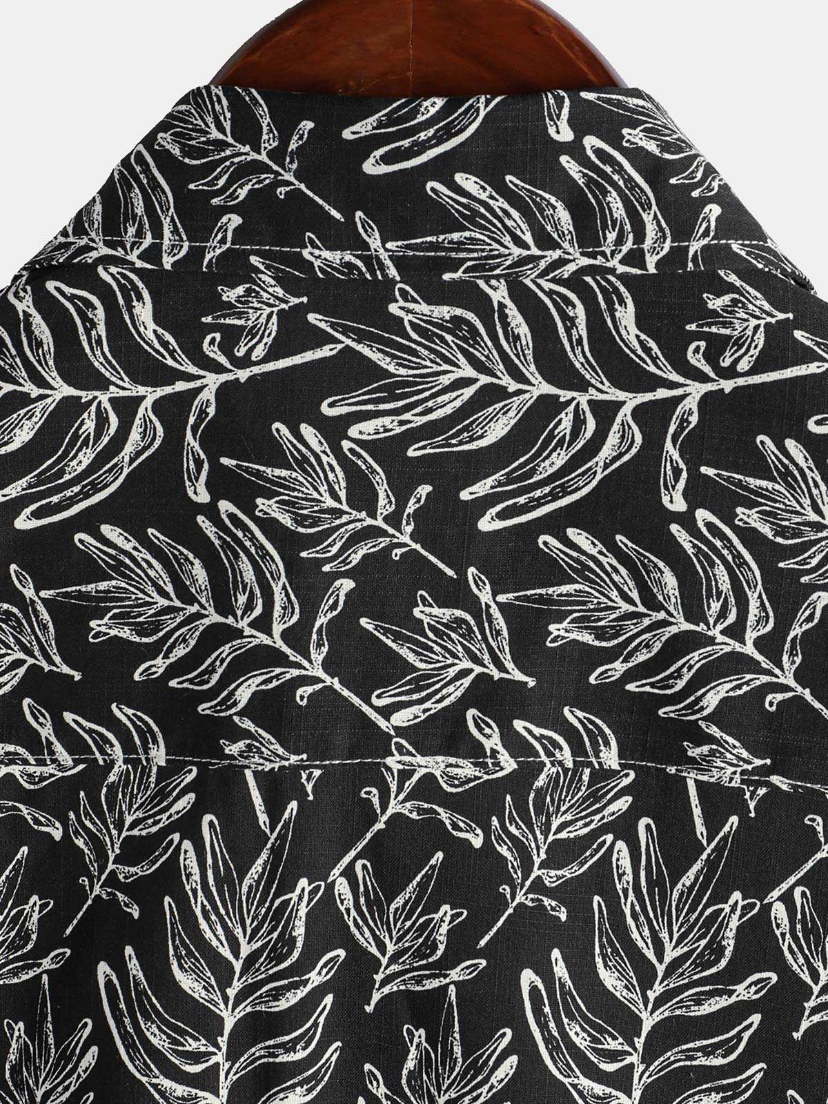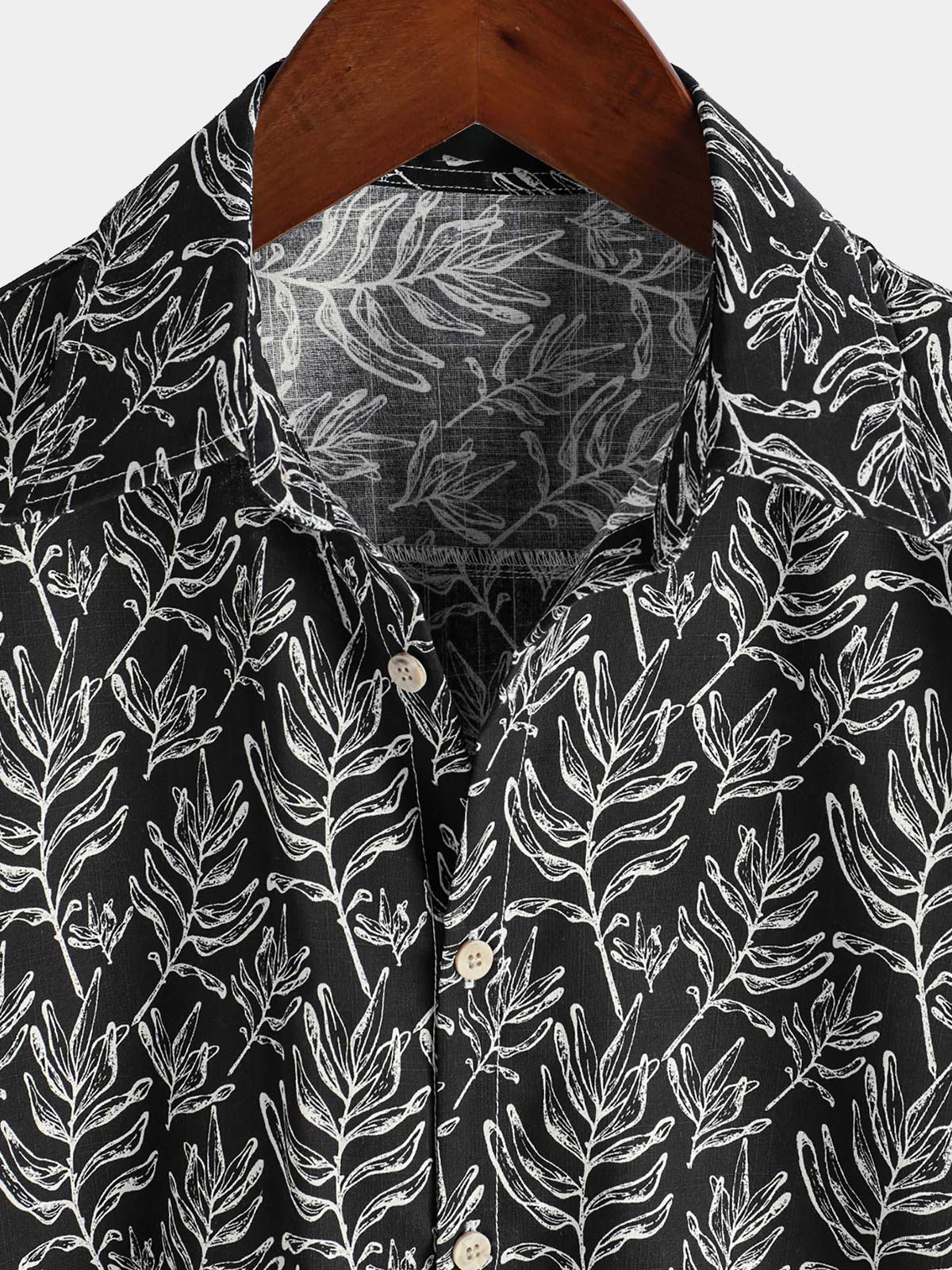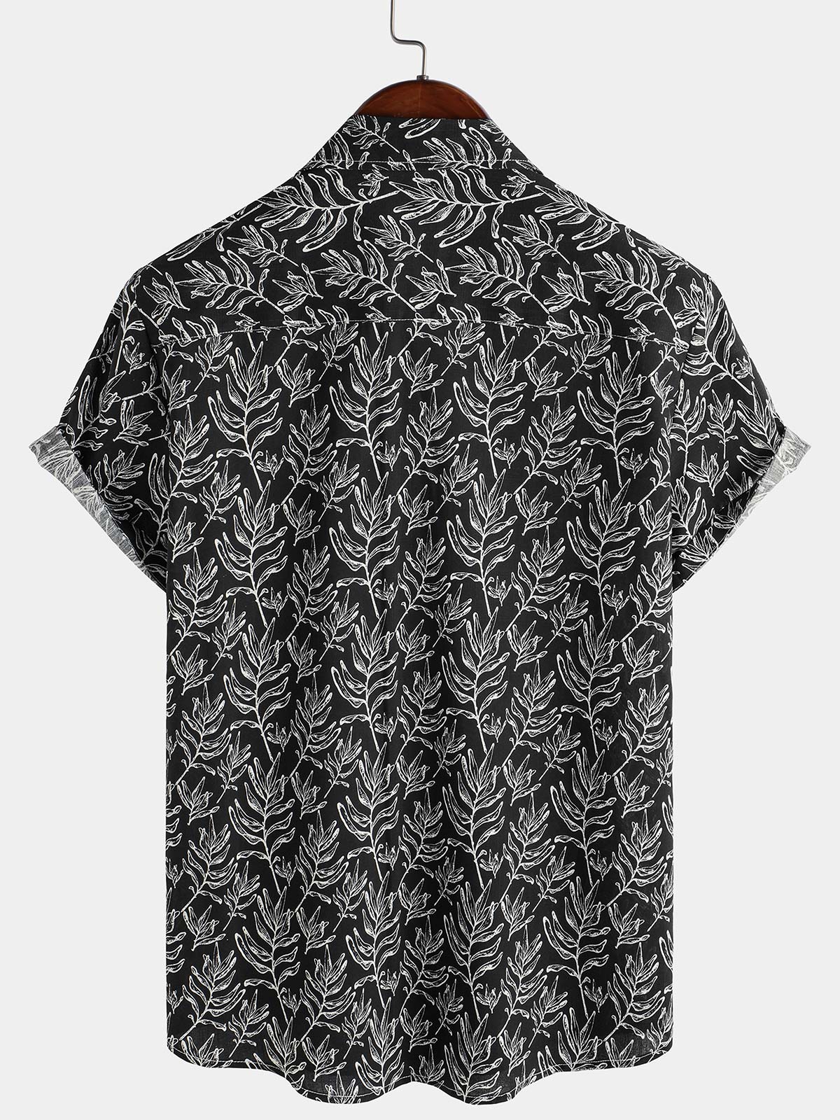 Men's Tropical Black Short Sleeve Summer Button Up Shirt