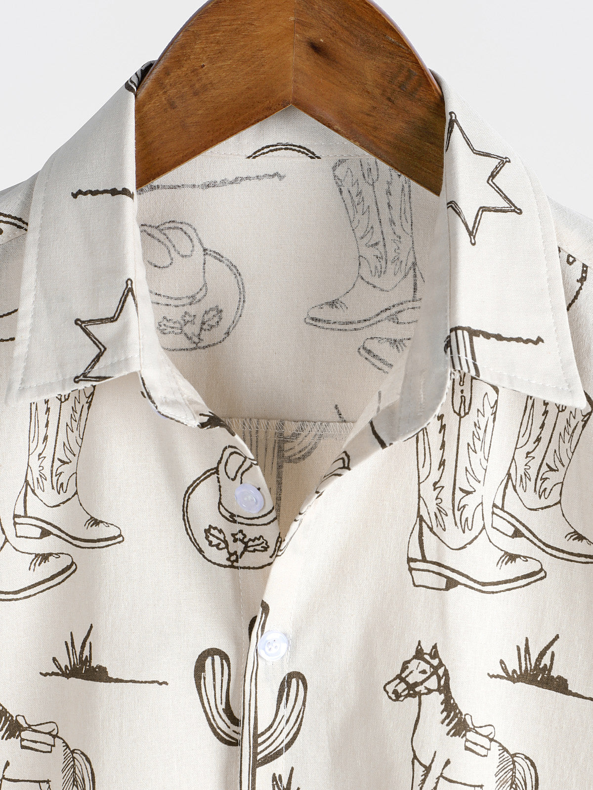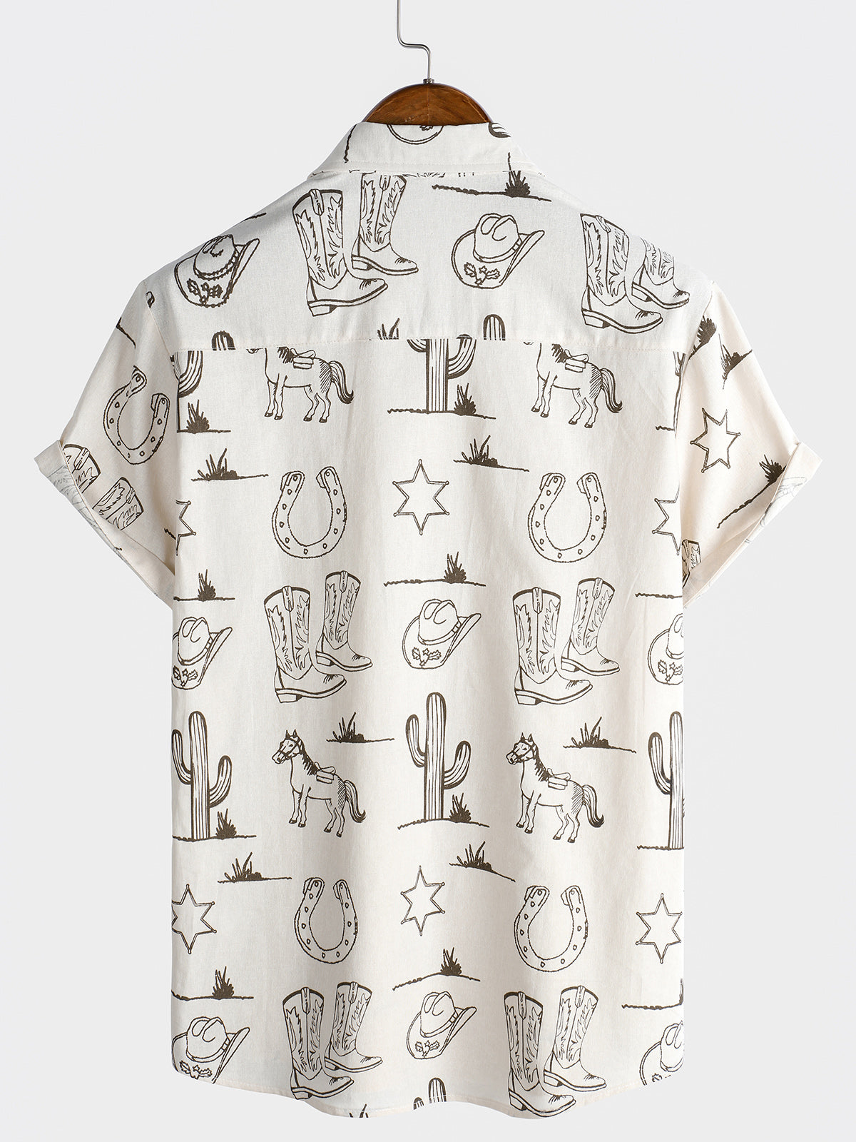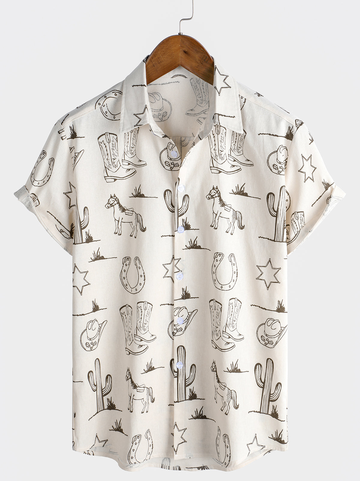Men's Short Sleeve Cowboy Summer Button Up Shirt