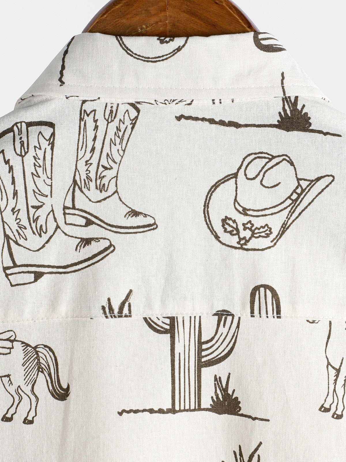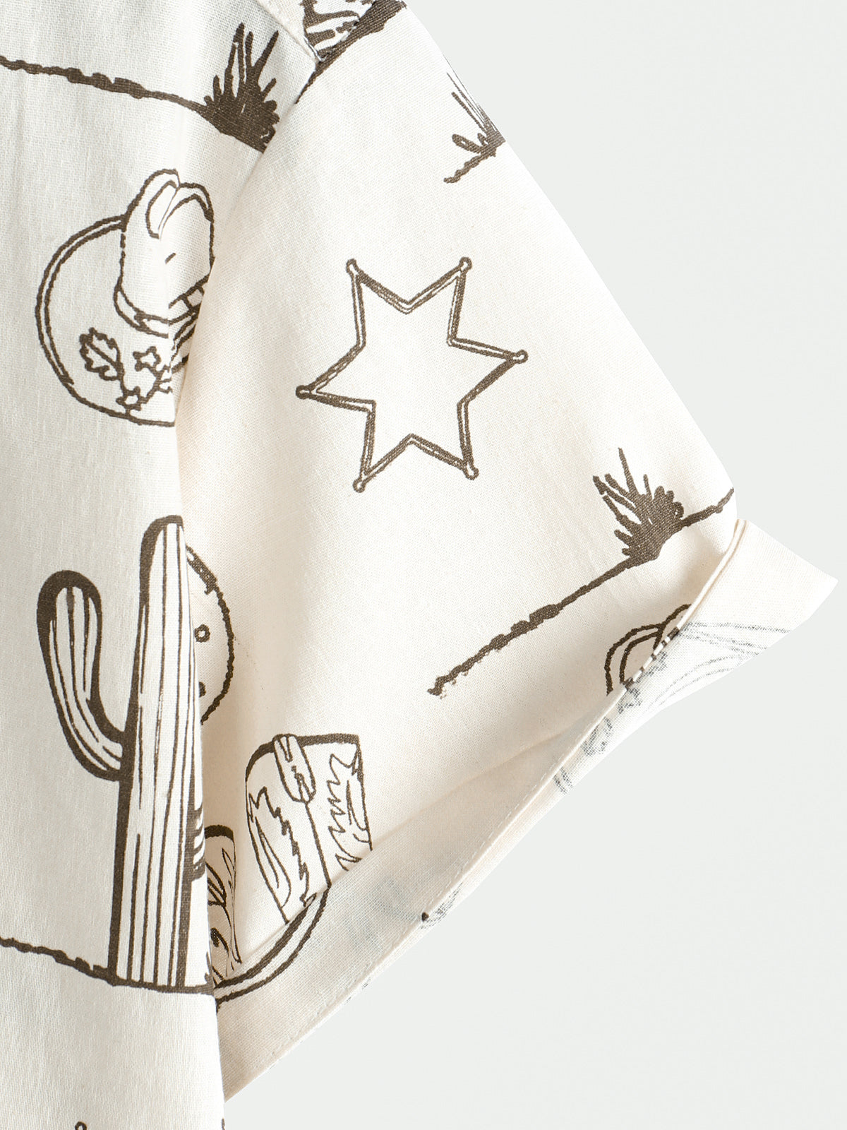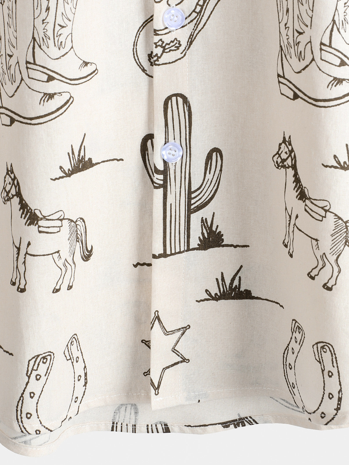 Men's Short Sleeve Cowboy Summer Button Up Shirt