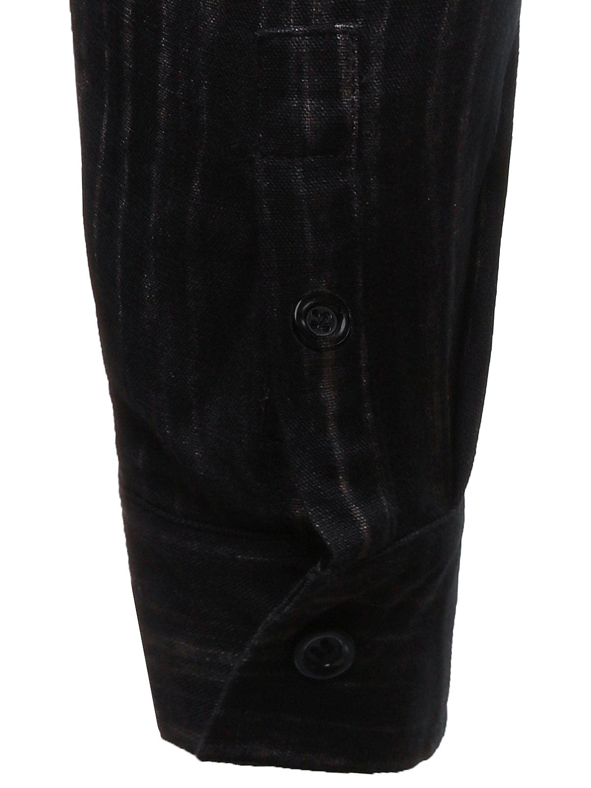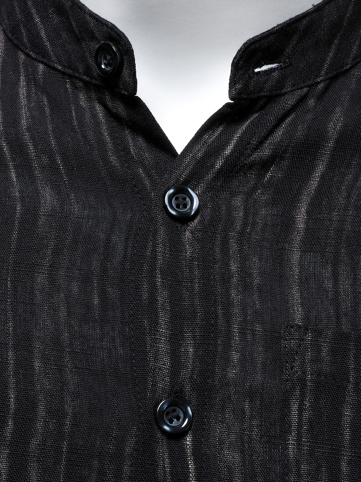 Men's Casual Breathable Pocket Long Sleeve Black Striped Shirt