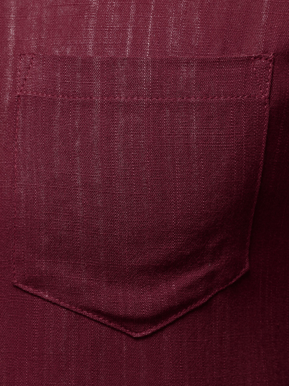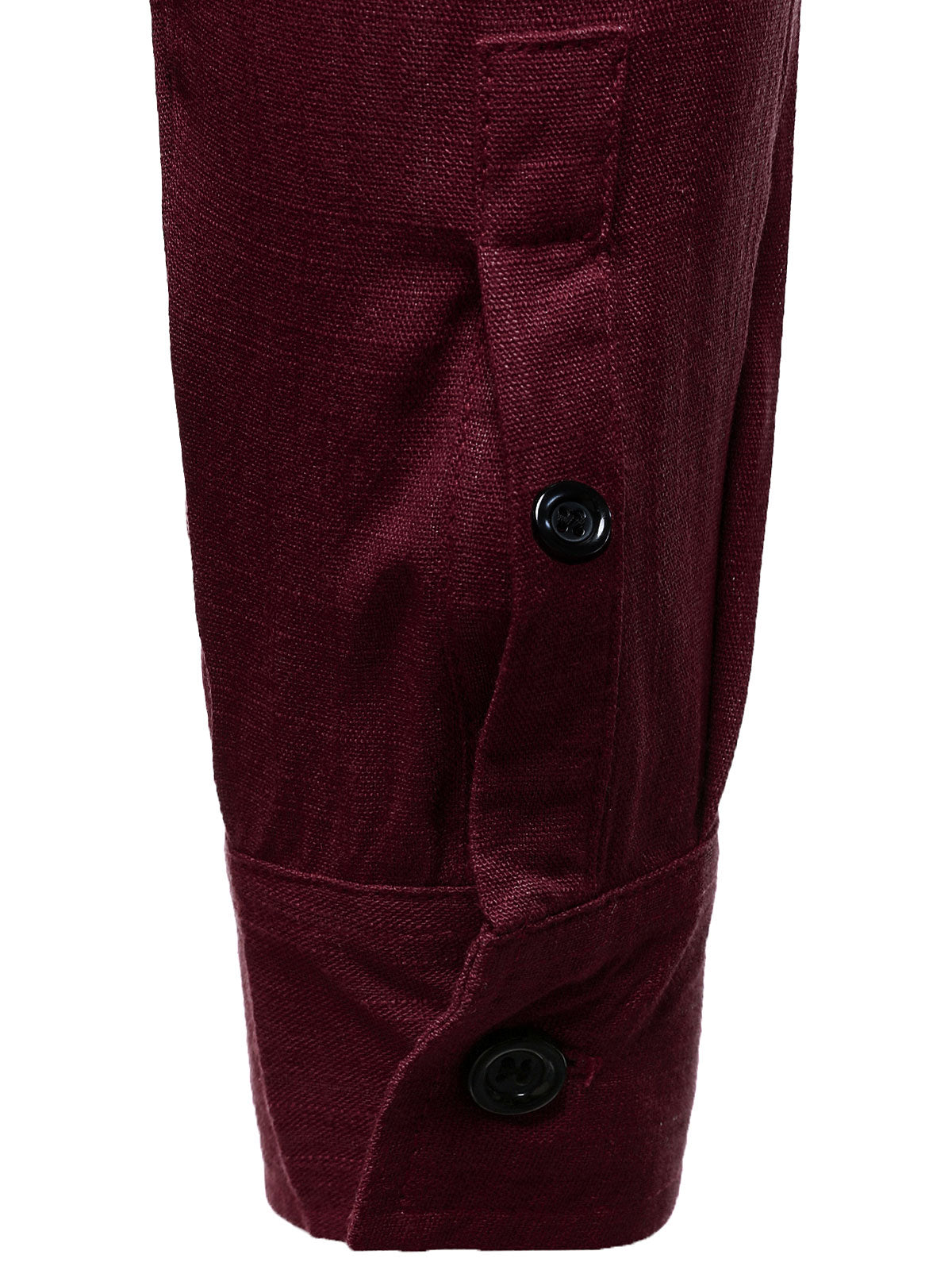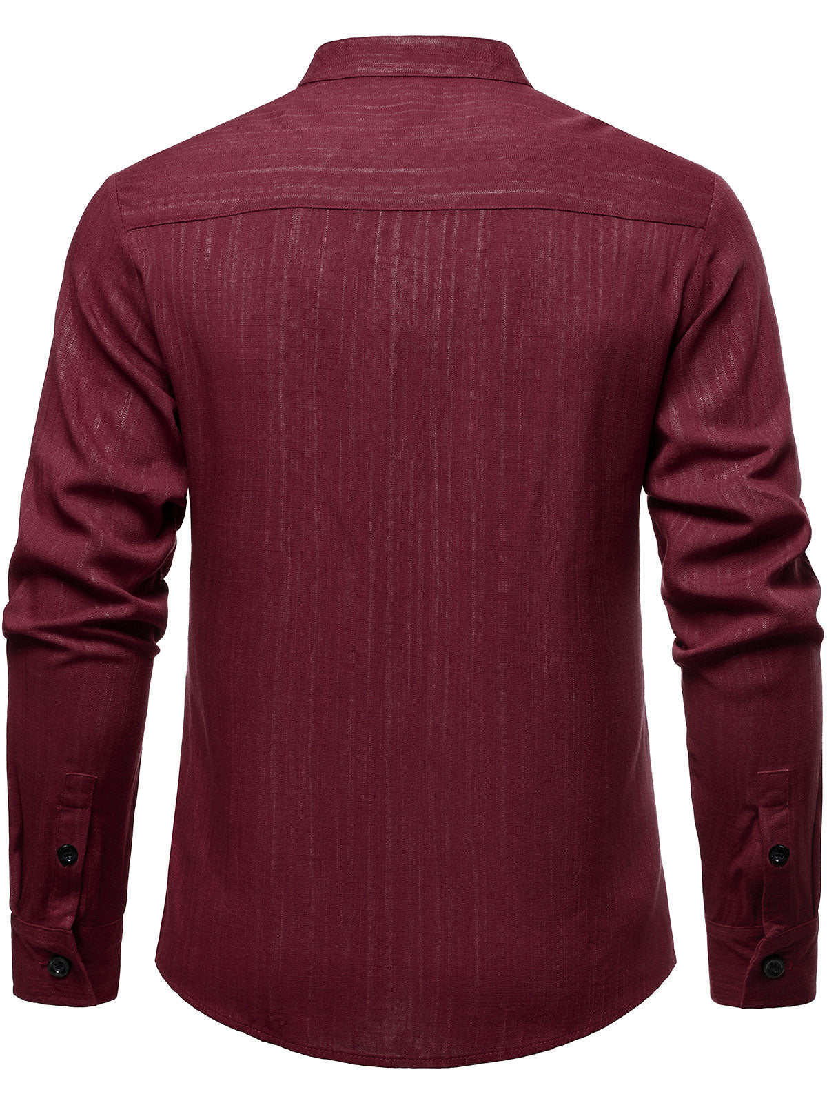 Men's Casual Breathable Pocket Long Sleeve Red Striped Shirt