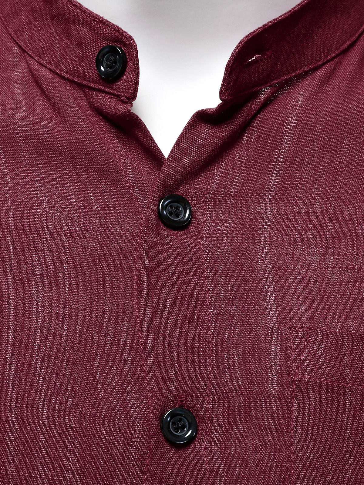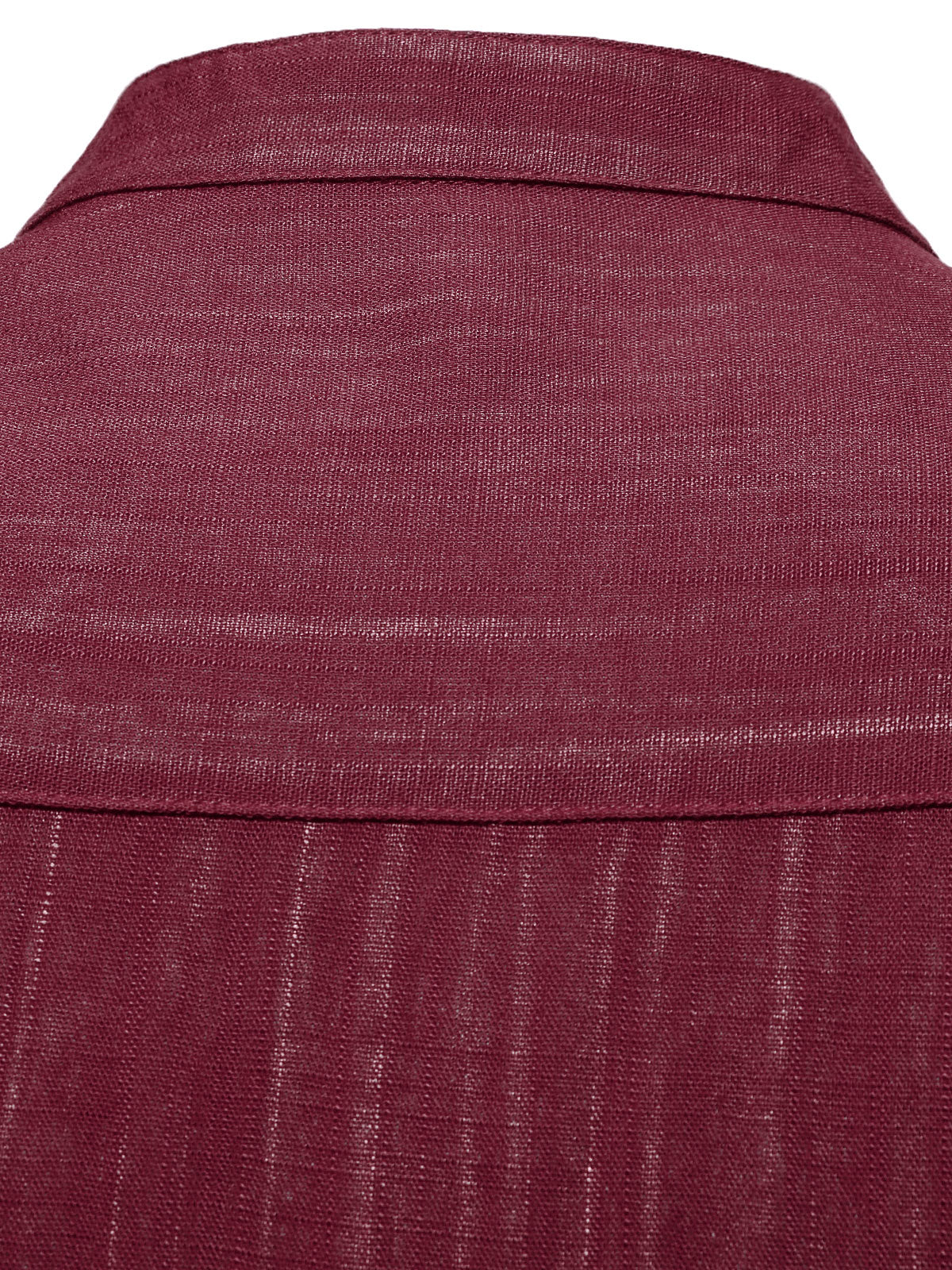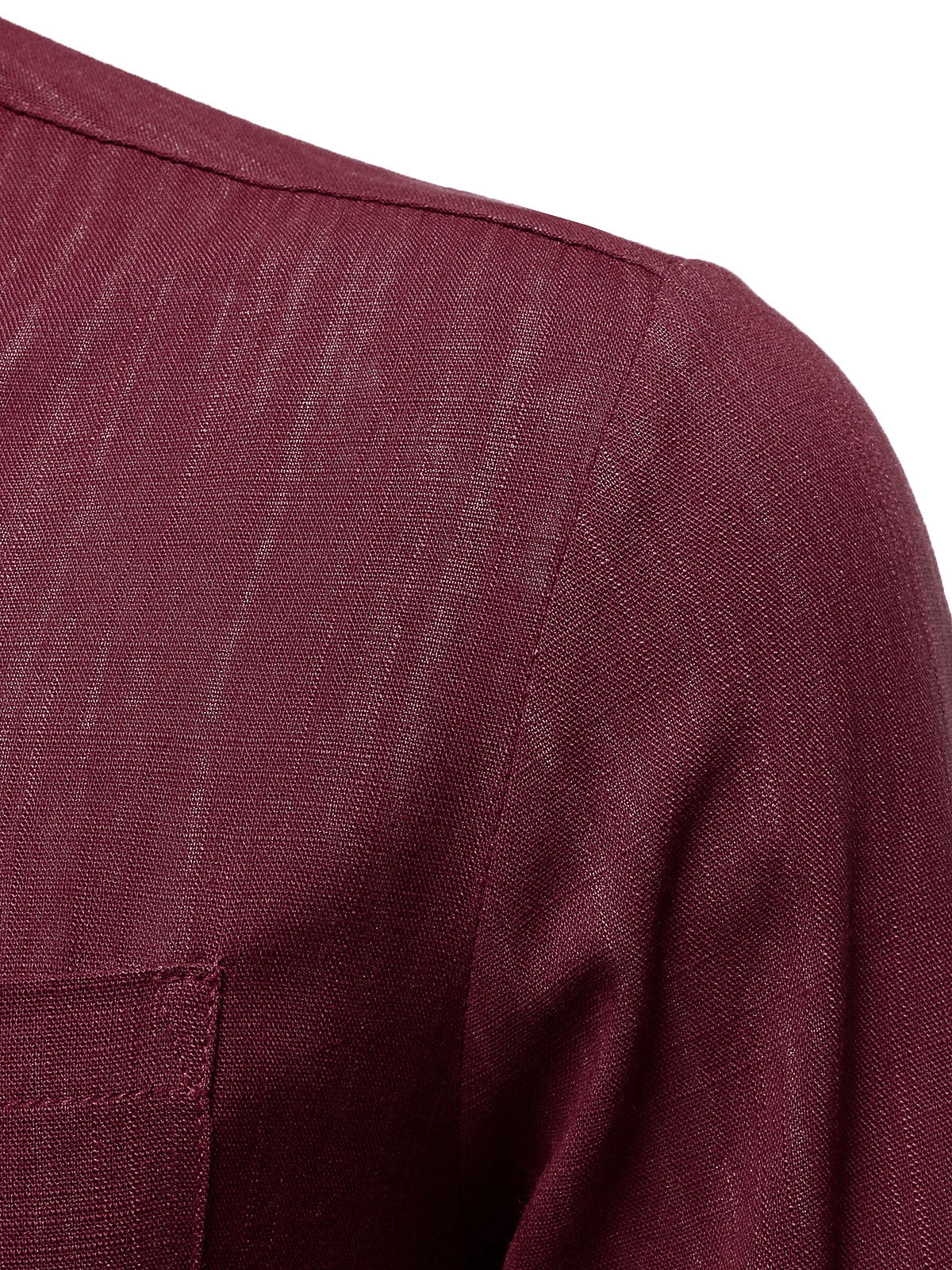 Men's Casual Breathable Pocket Long Sleeve Red Striped Shirt