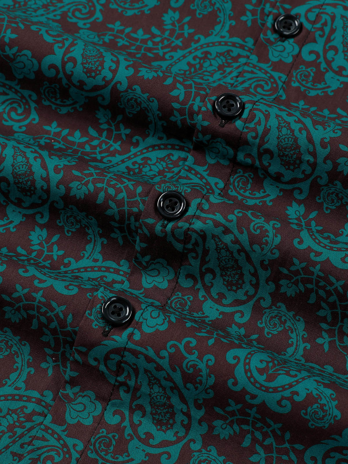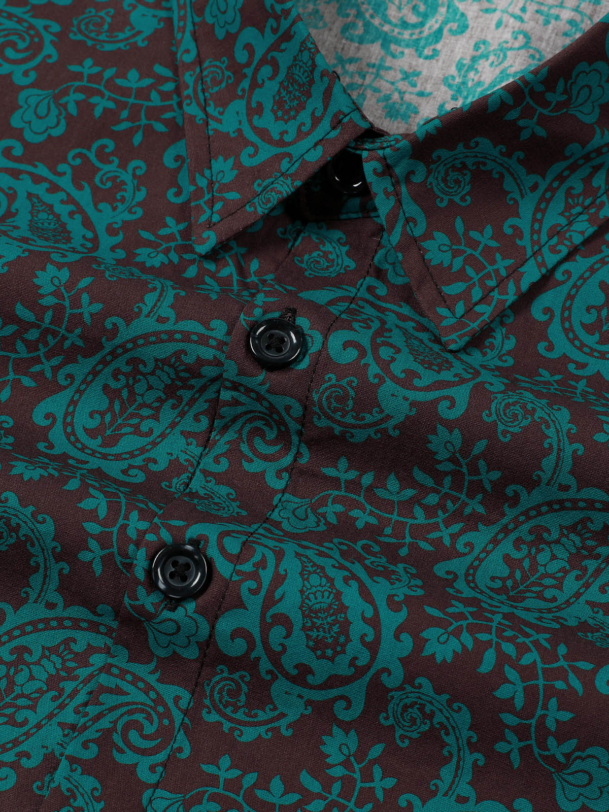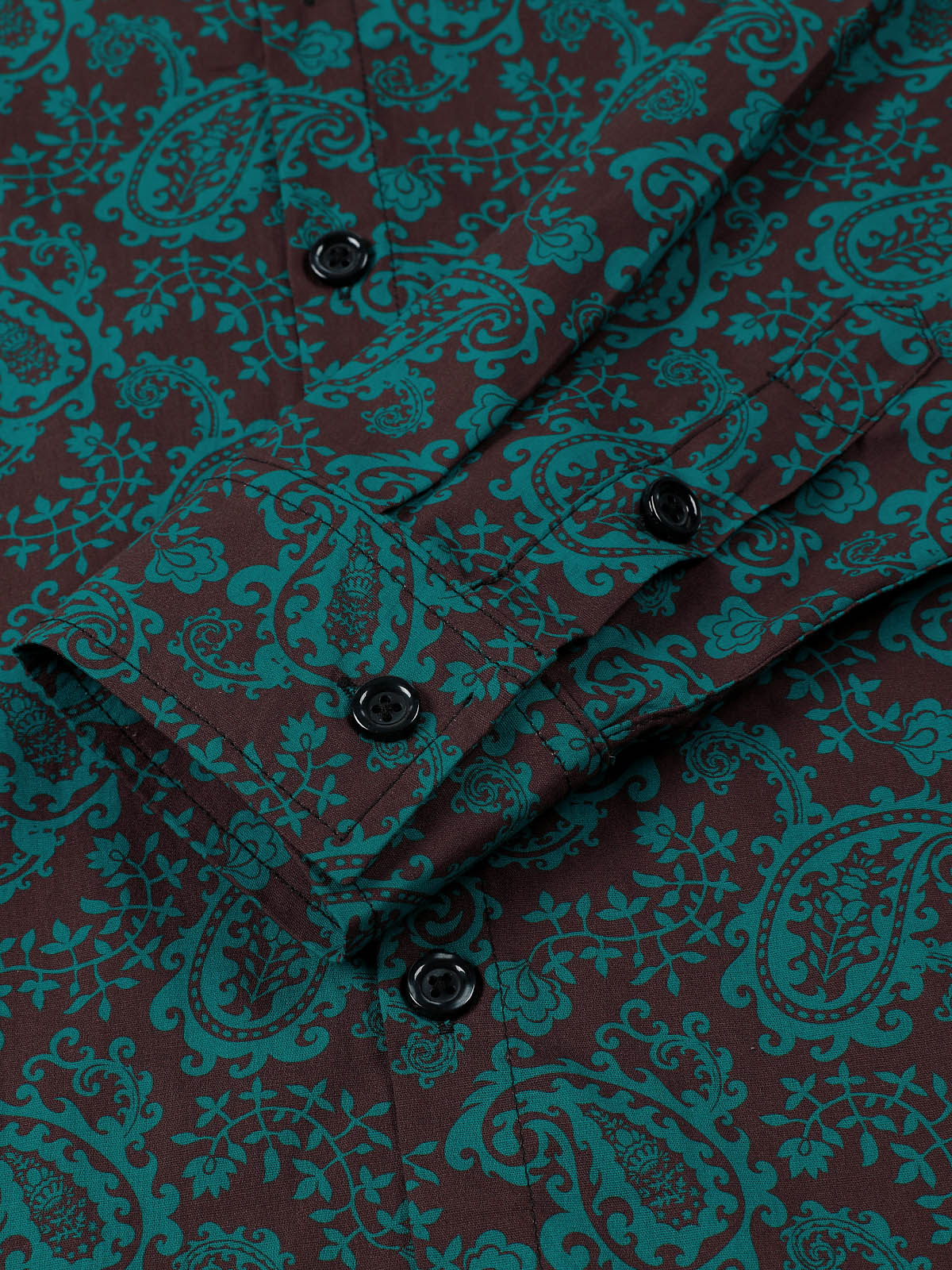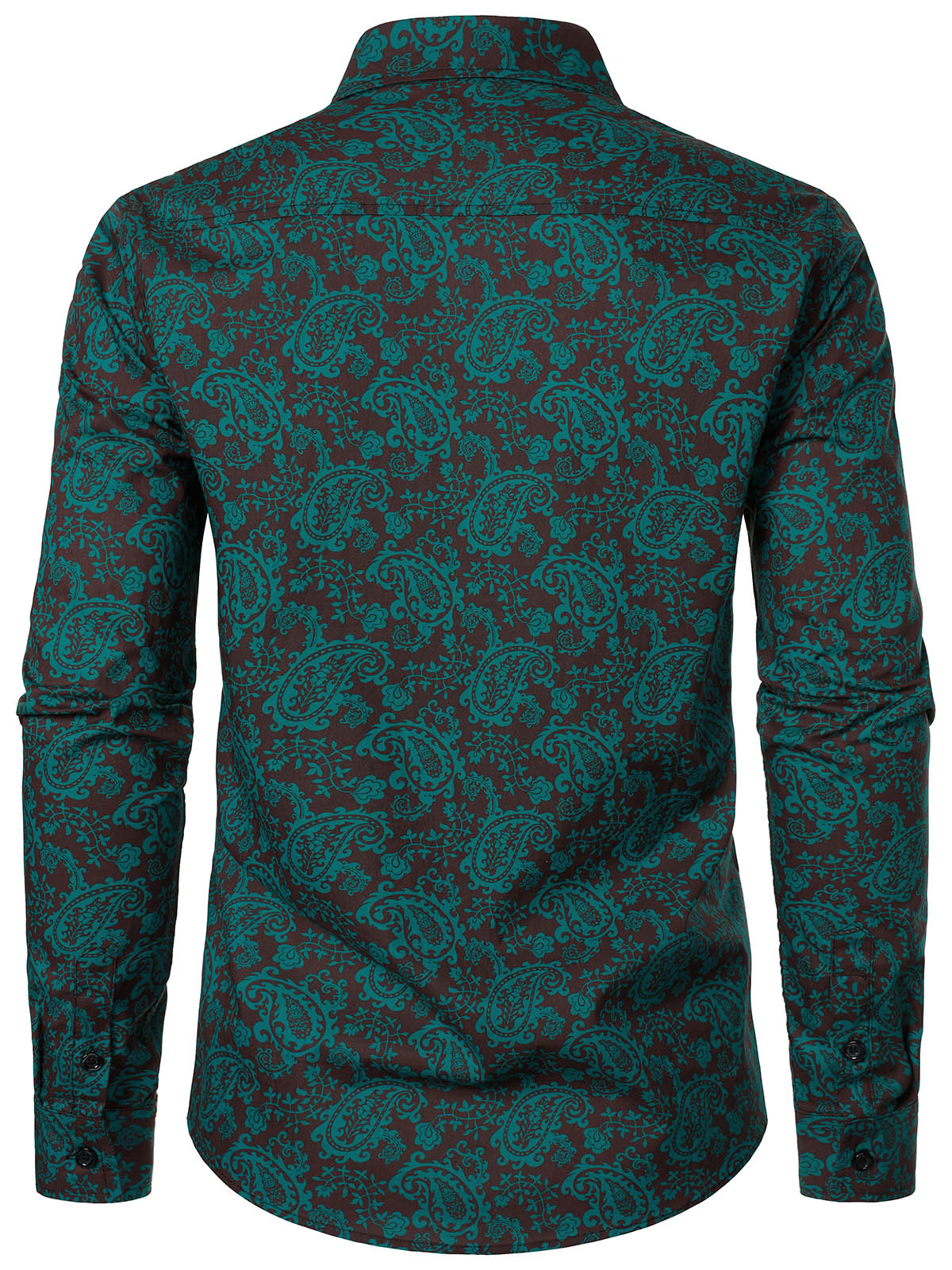 Men's Paisley Floral Green Cotton Long Sleeve Shirt