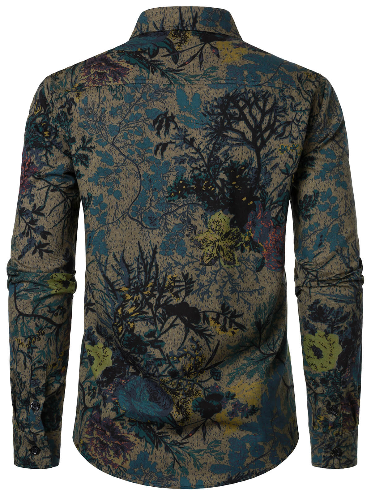 Men's Retro Floral Pattern Long Sleeve Shirt