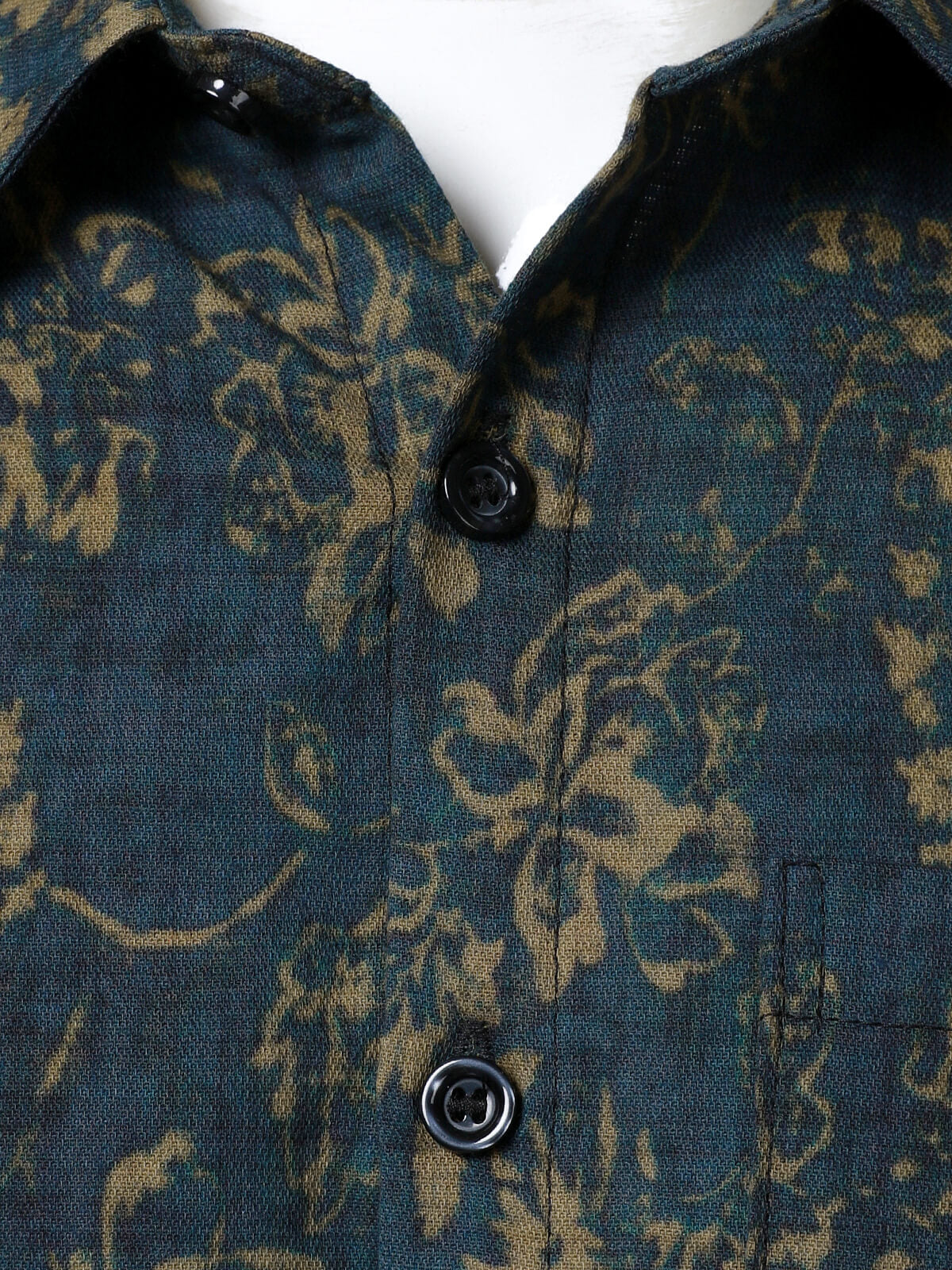 Men's Retro Floral Print Pocket Long Sleeve Shirt