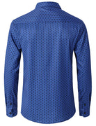 Men's Blue Retro Geometric Print Long Sleeve Shirt