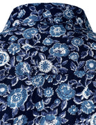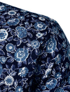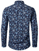 Men's Breathable Cotton 70s Floral Print Navy Blue Long Sleeve Shirt
