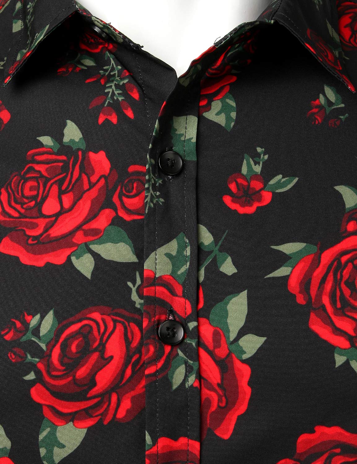 Men's Casual Rose Black Long Sleeve Button Up Shirt