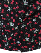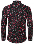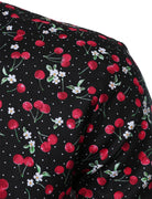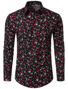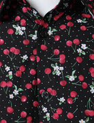 Men's Cherry Print Breathable Cotton Black Long Sleeve Shirt