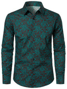 Men's Paisley Floral Green Cotton Long Sleeve Shirt