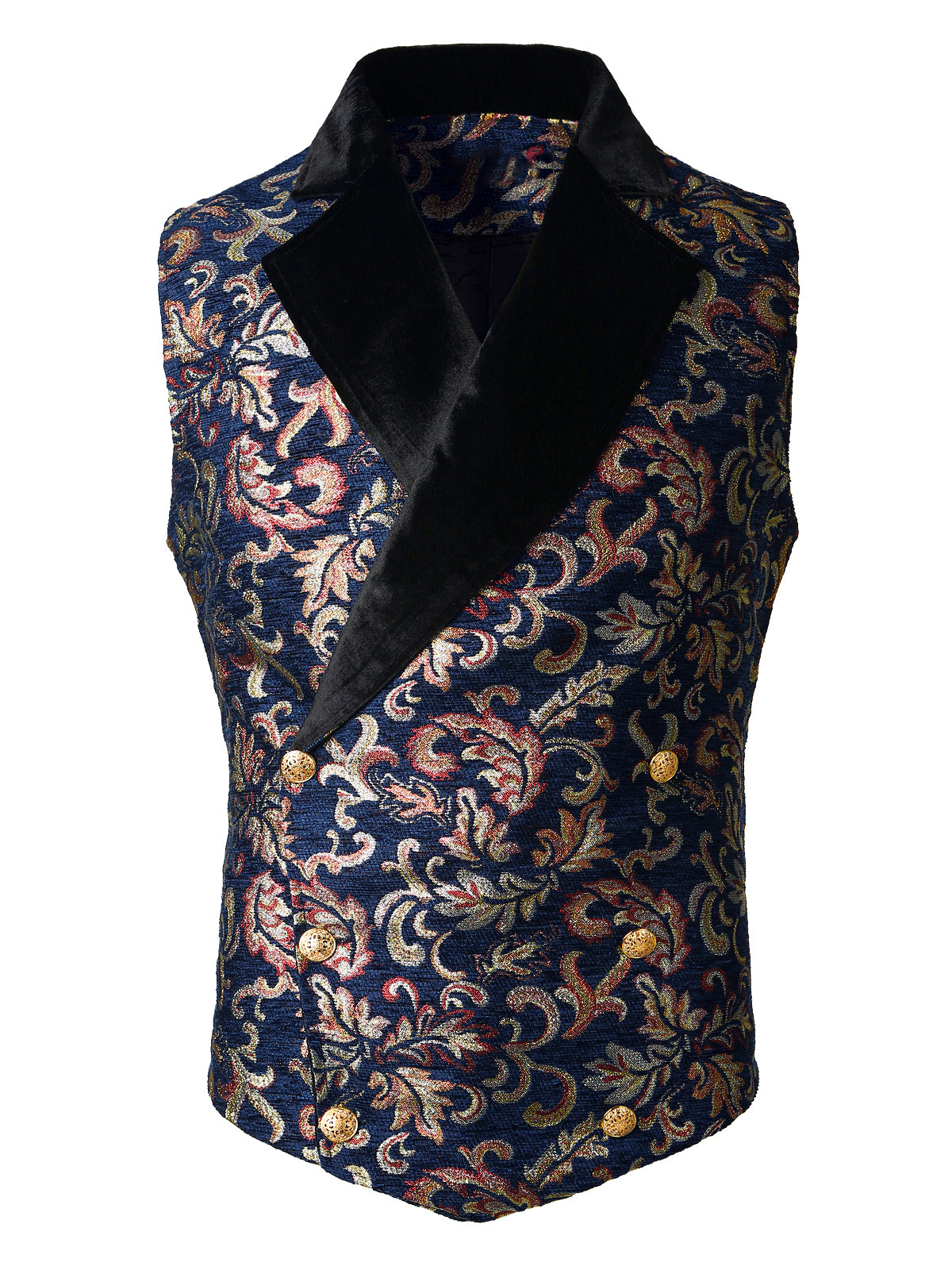 Mens Victorian Double Breasted Vest Floral Gothic Steampunk Waistcoat