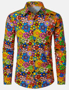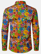 Men's Vintage Colorful Floral Cotton 70s Long Sleeve Button Up Shirt