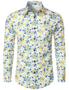 Men's White Breathable Cotton Floral Print Long Sleeve Shirt