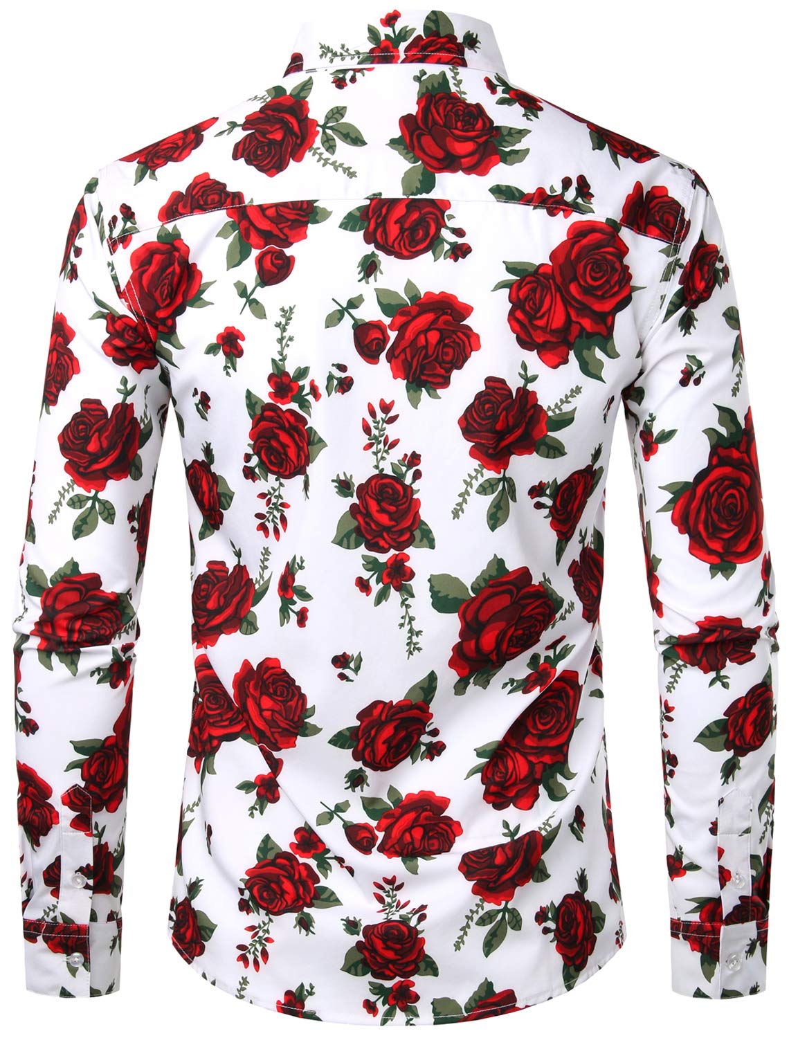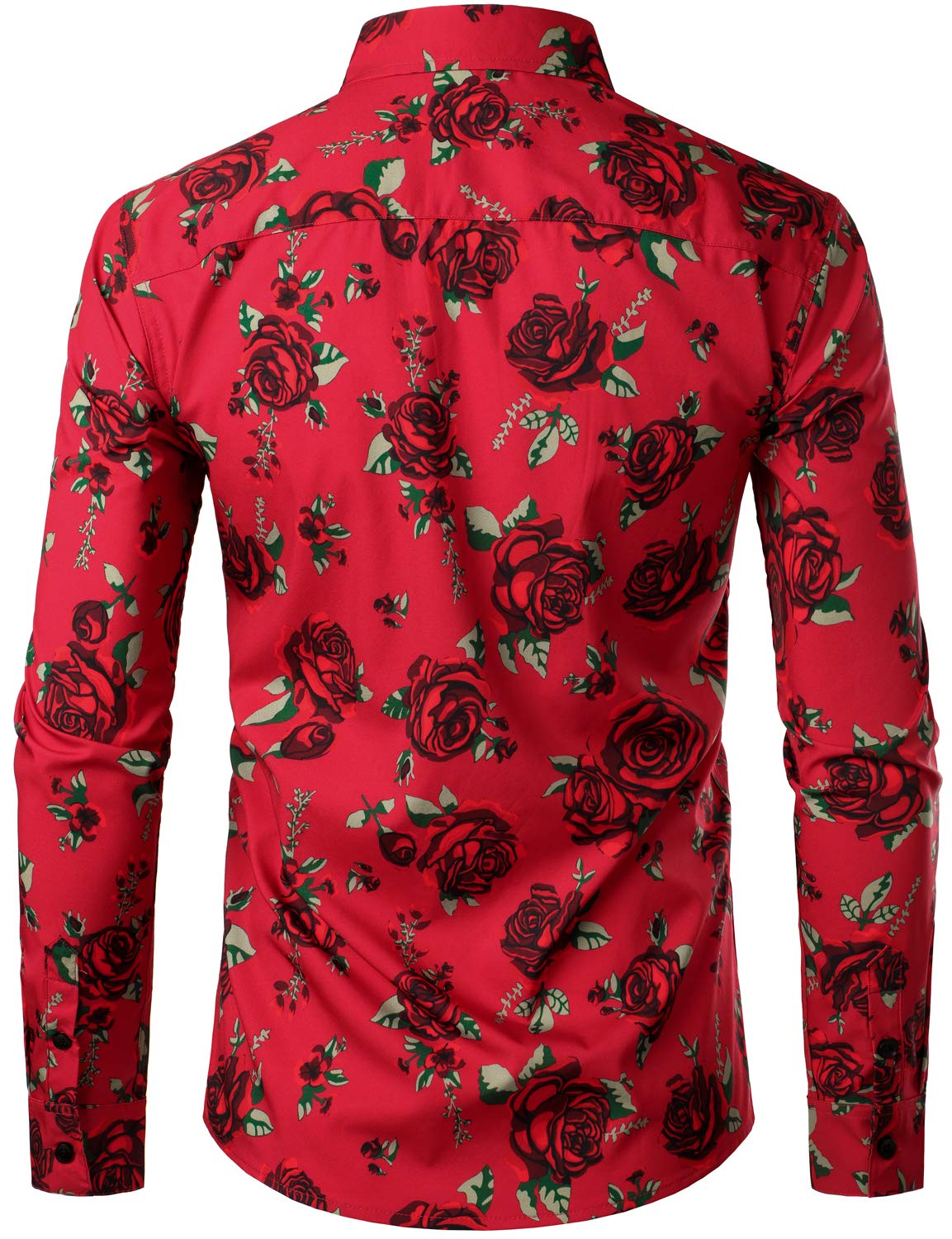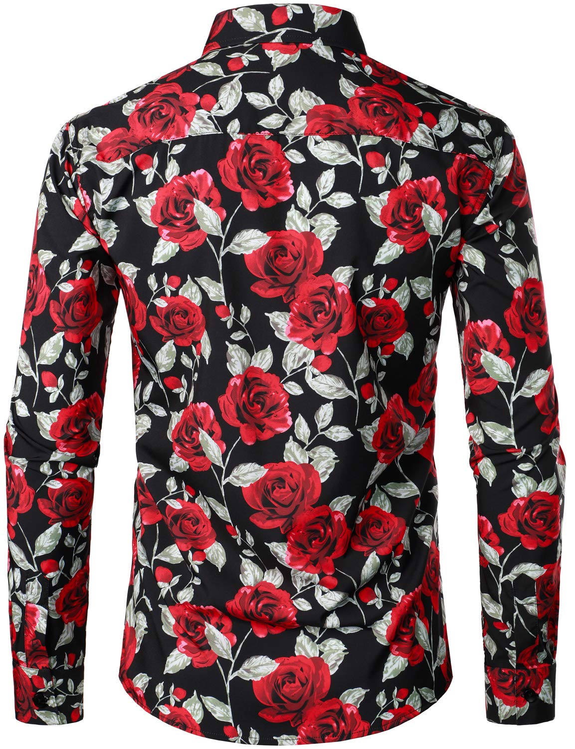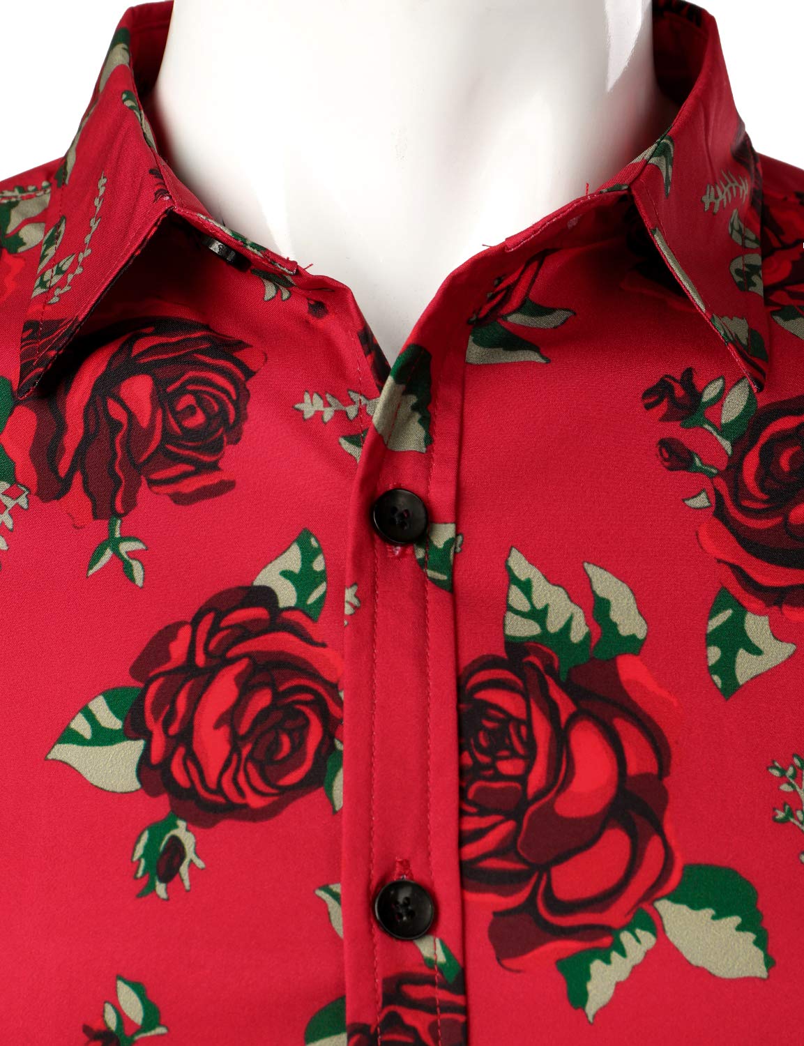 Men's Vintage Red Rose Casual Button Up Long Sleeve Shirt
