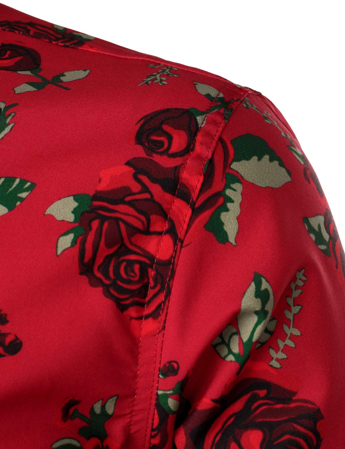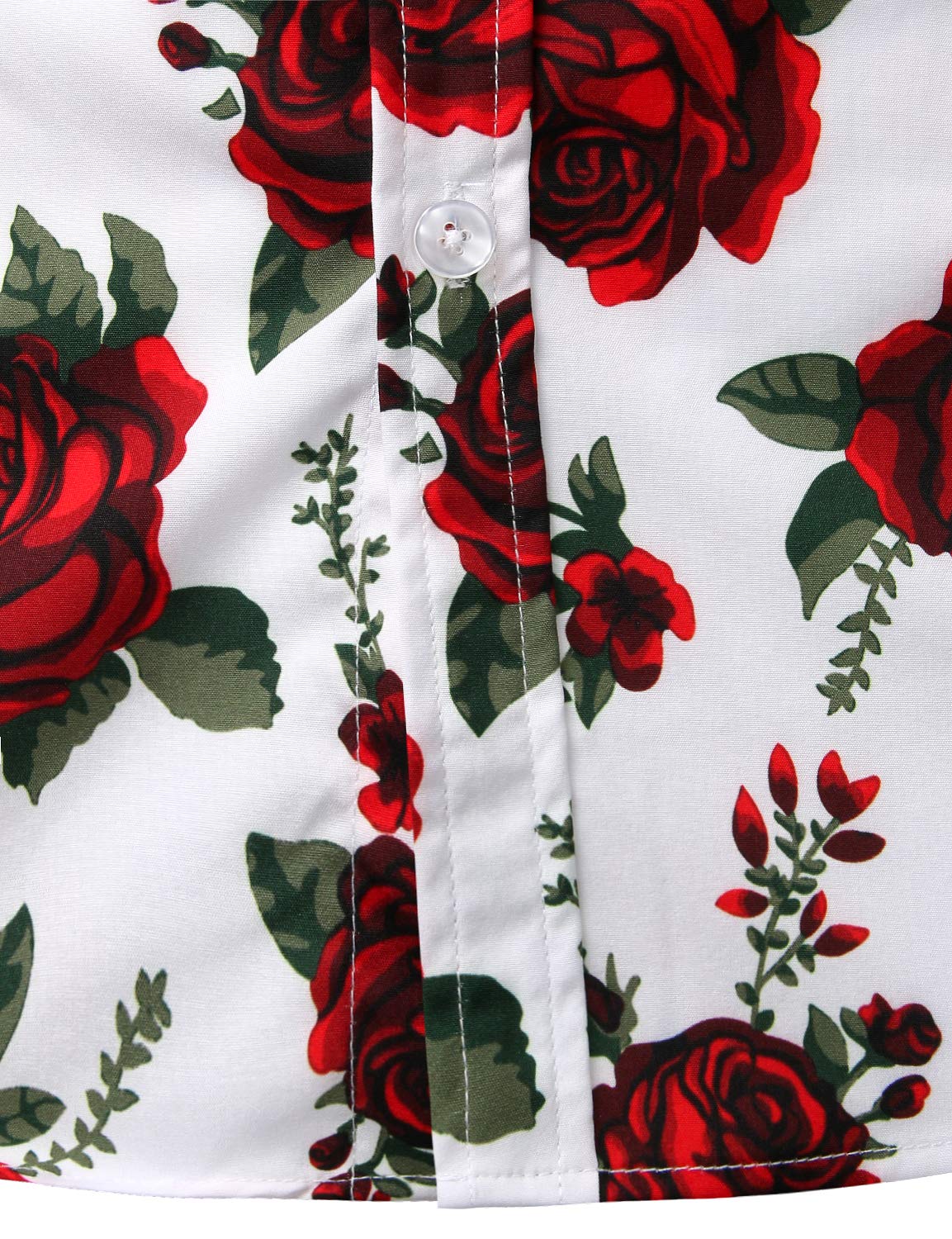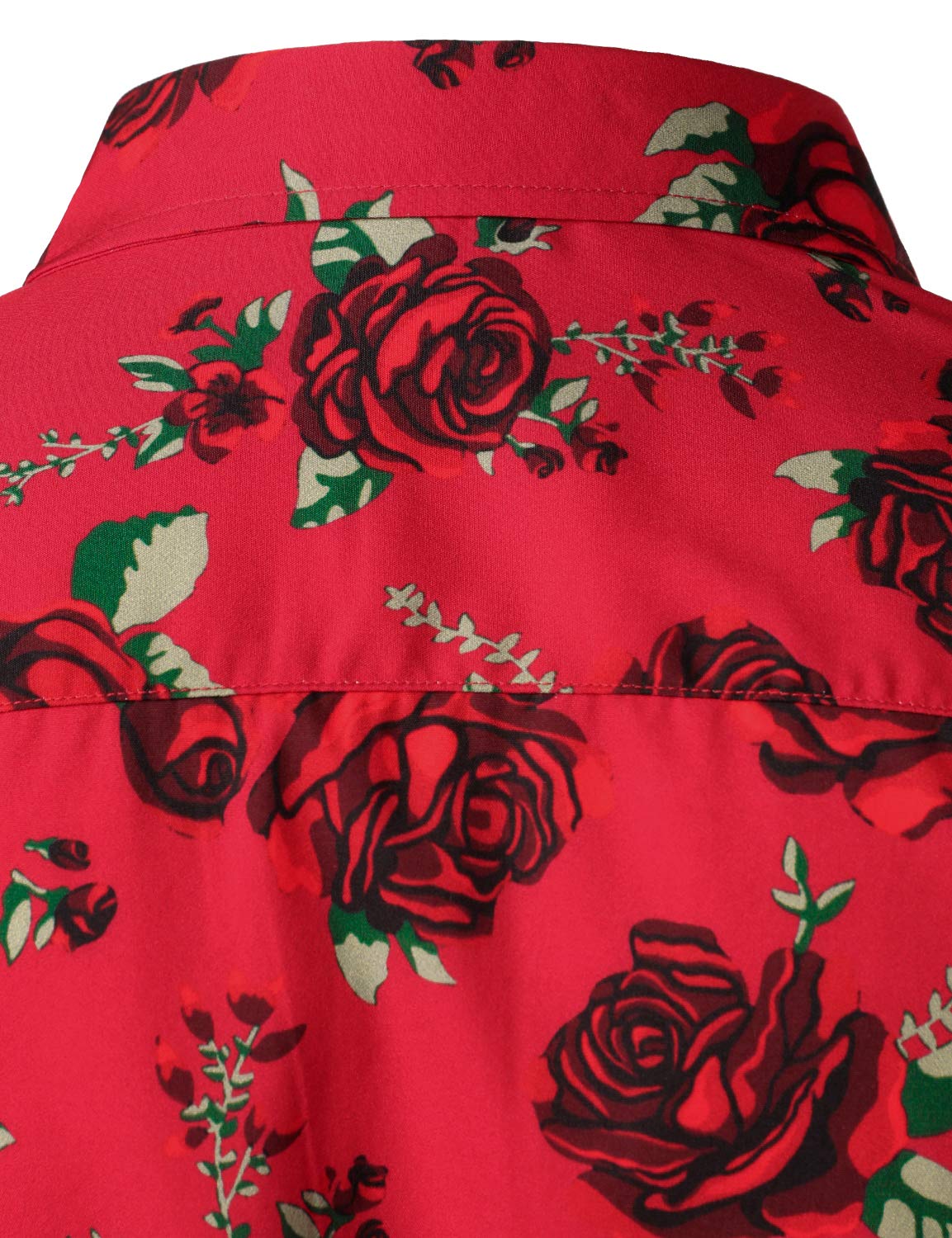 Men's Vintage Red Rose Casual Button Up Long Sleeve Shirt