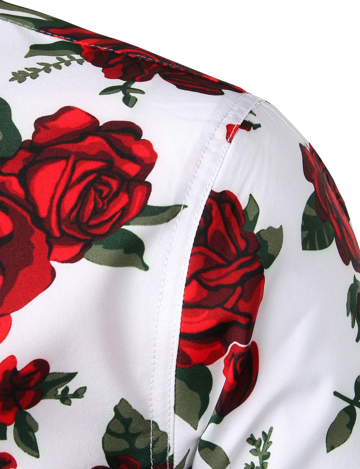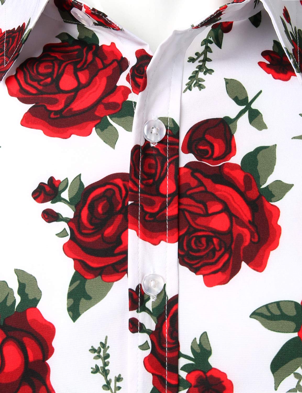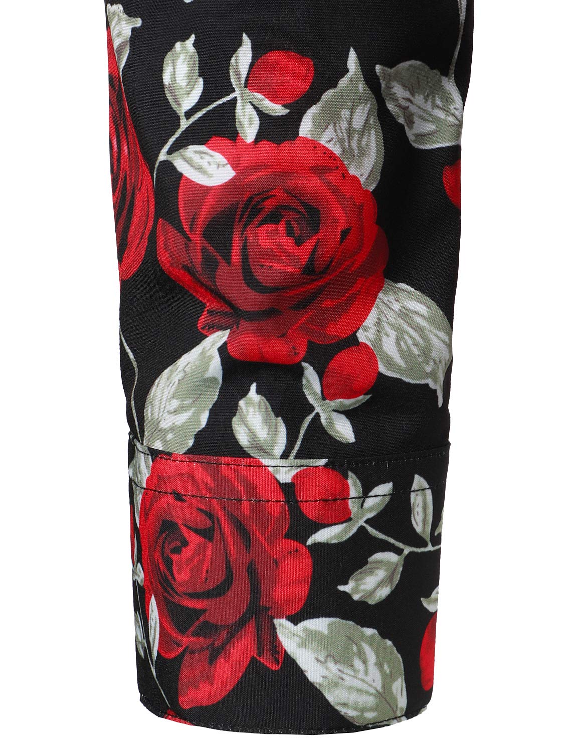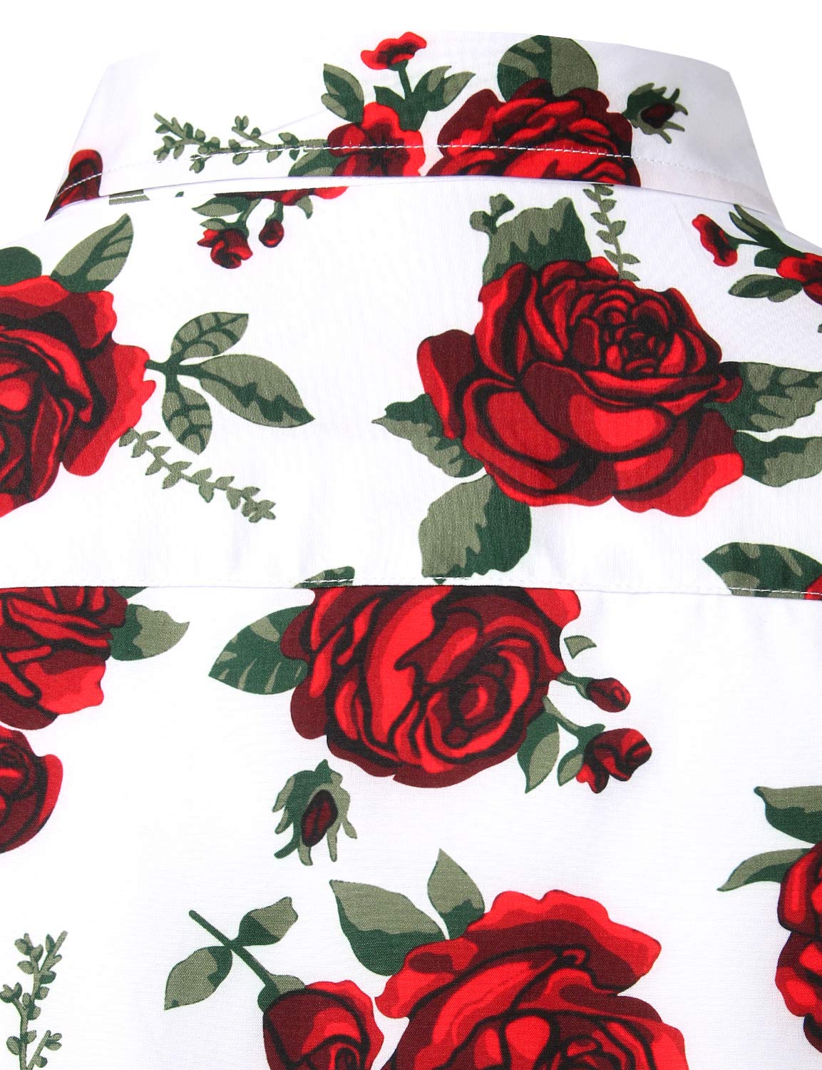 Men's Vintage Red Rose Casual Button Up Long Sleeve Shirt