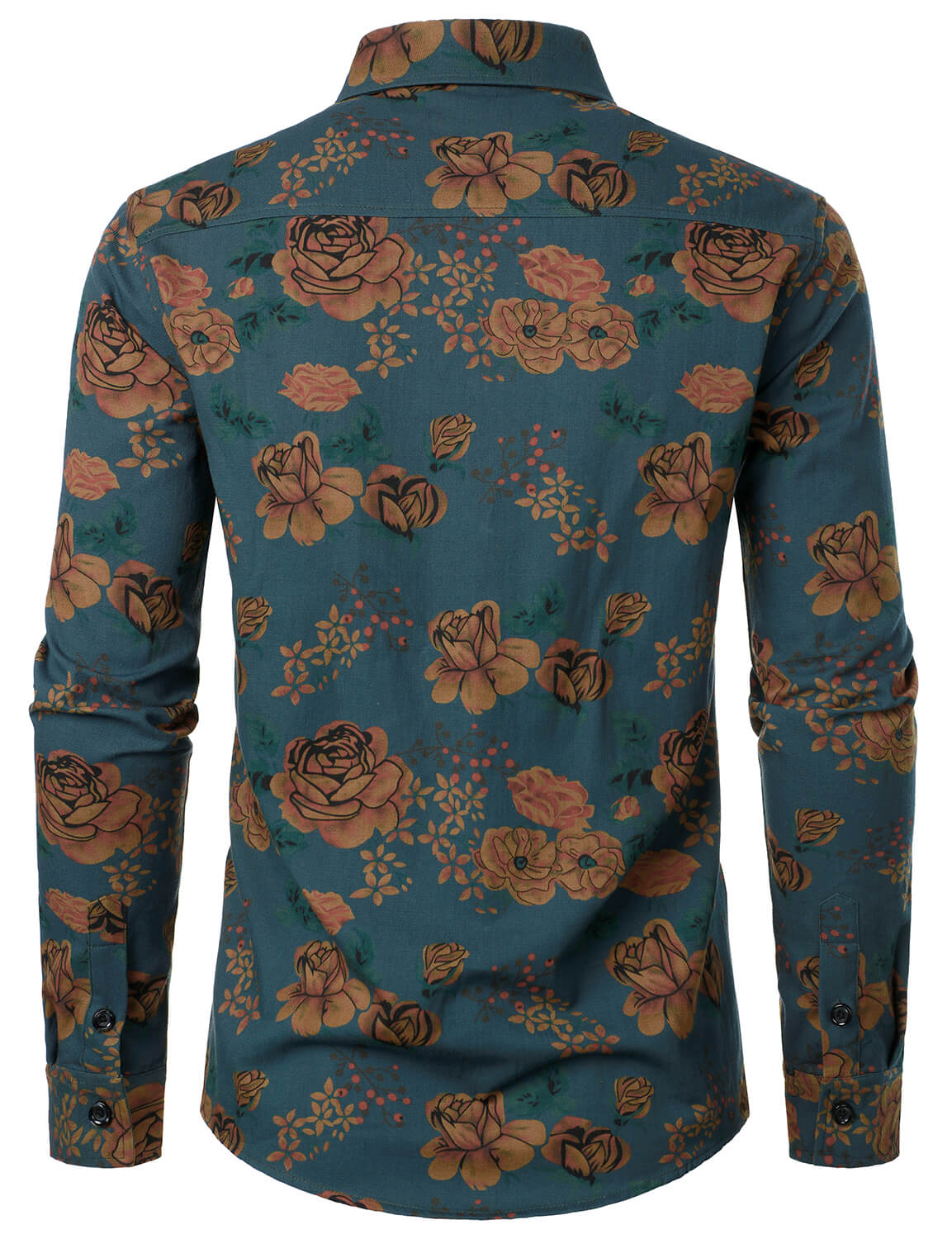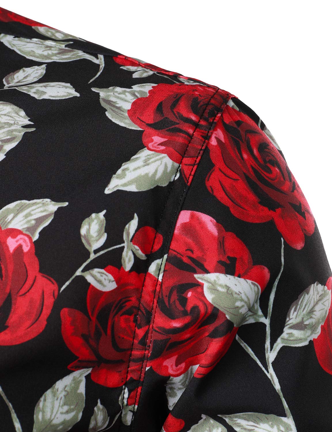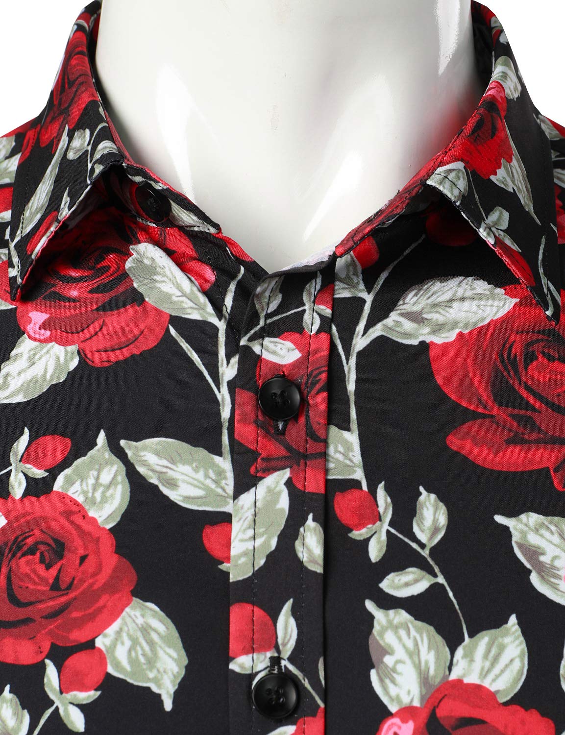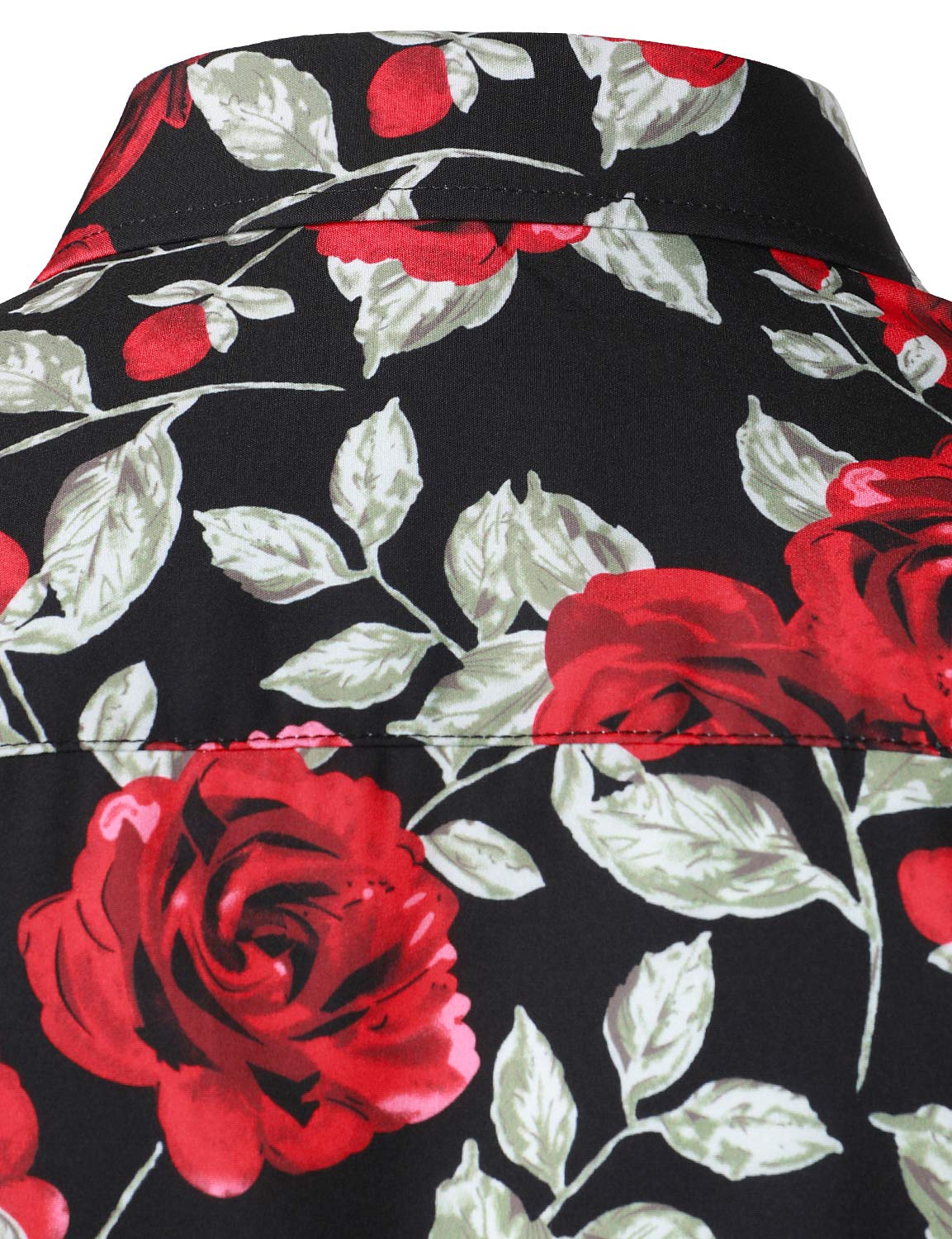 Men's Casual Vintage Rose Black Button Up Long Sleeve Shirt