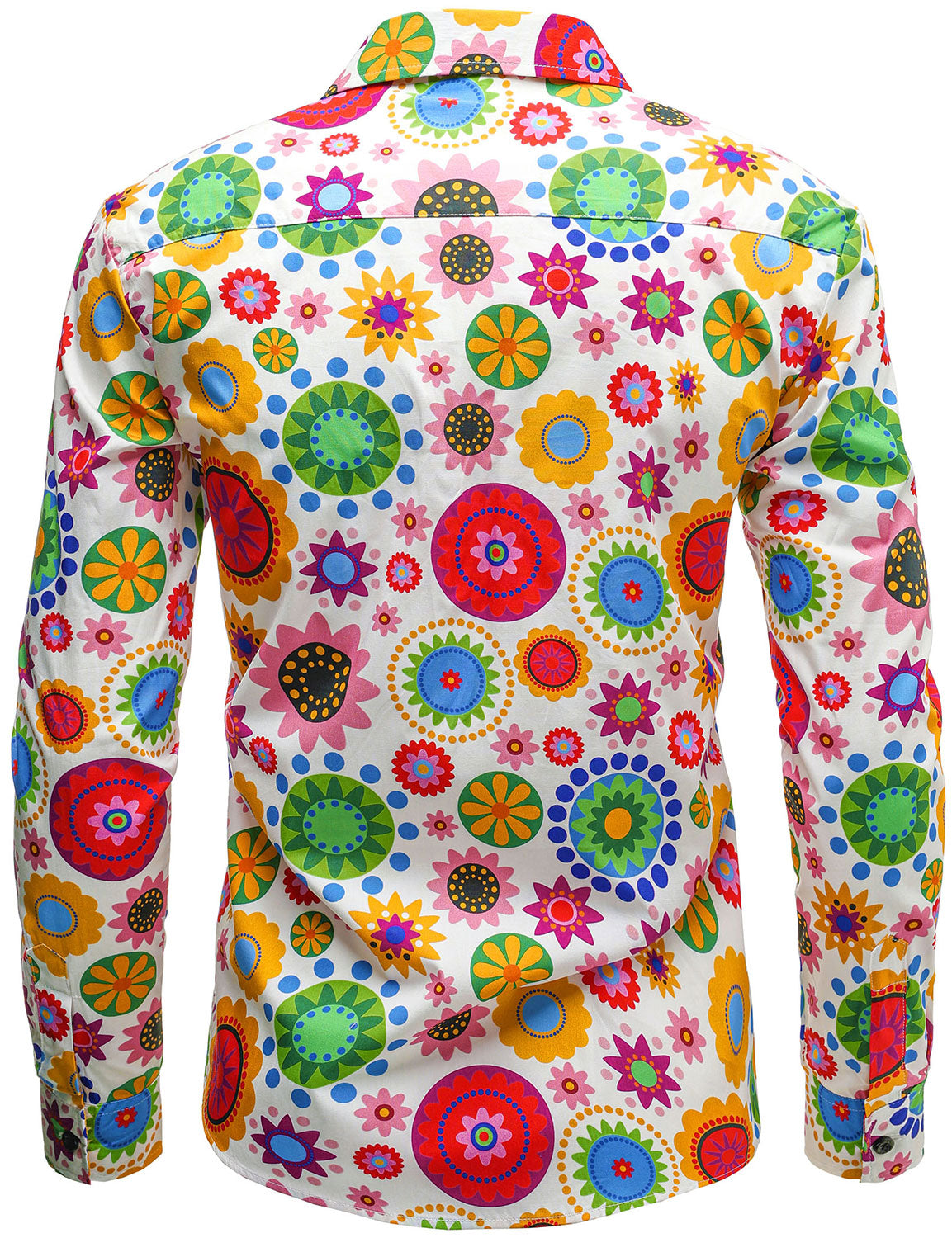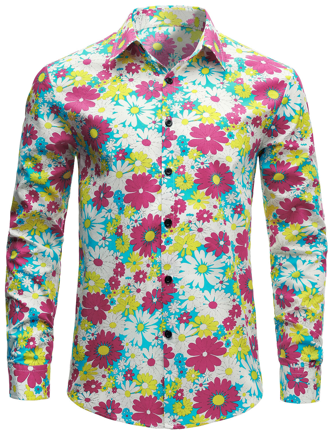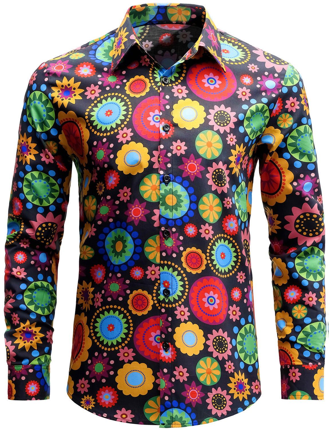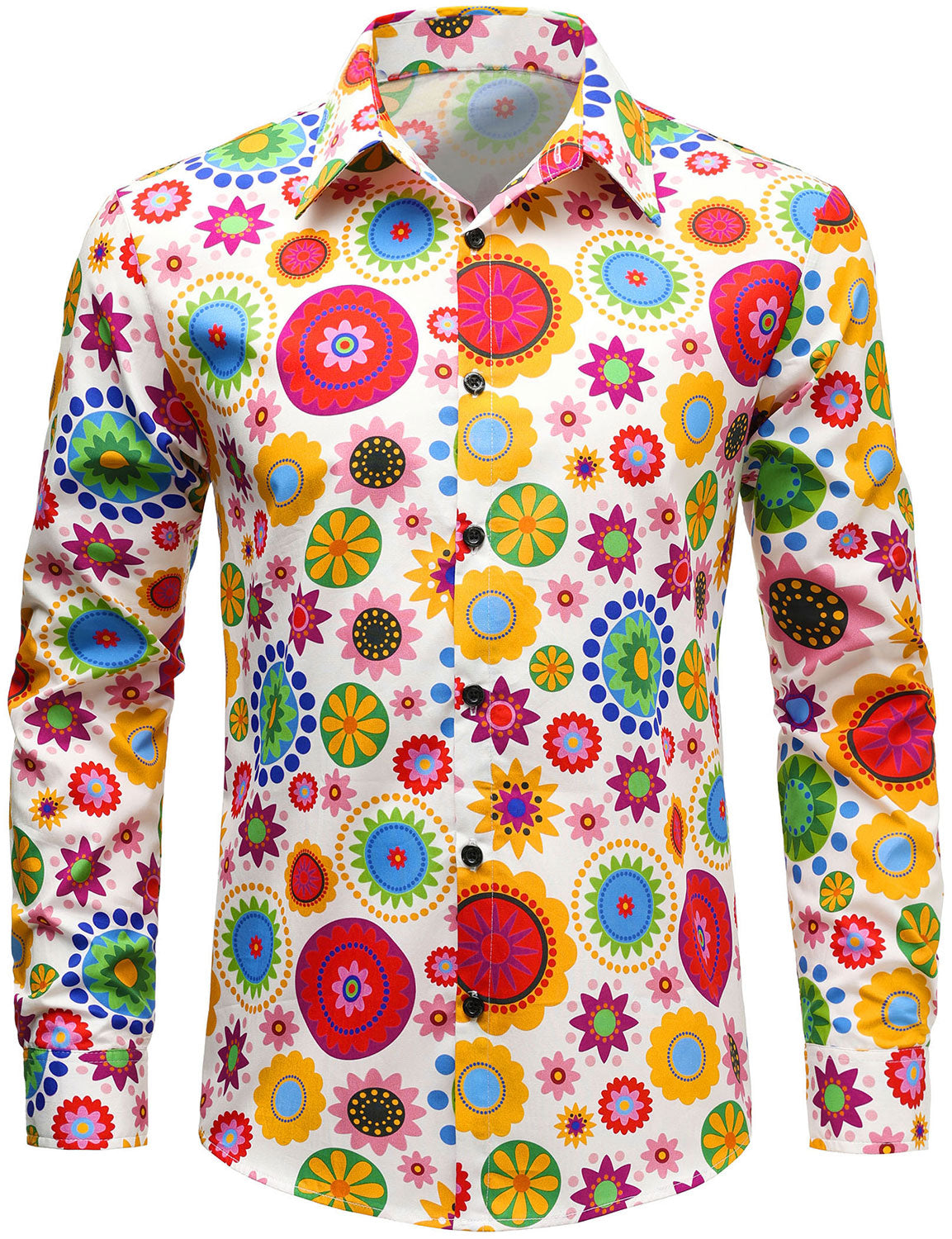 Men's Colorful Floral Cotton Party Disco Button Up Long Sleeve Shirt