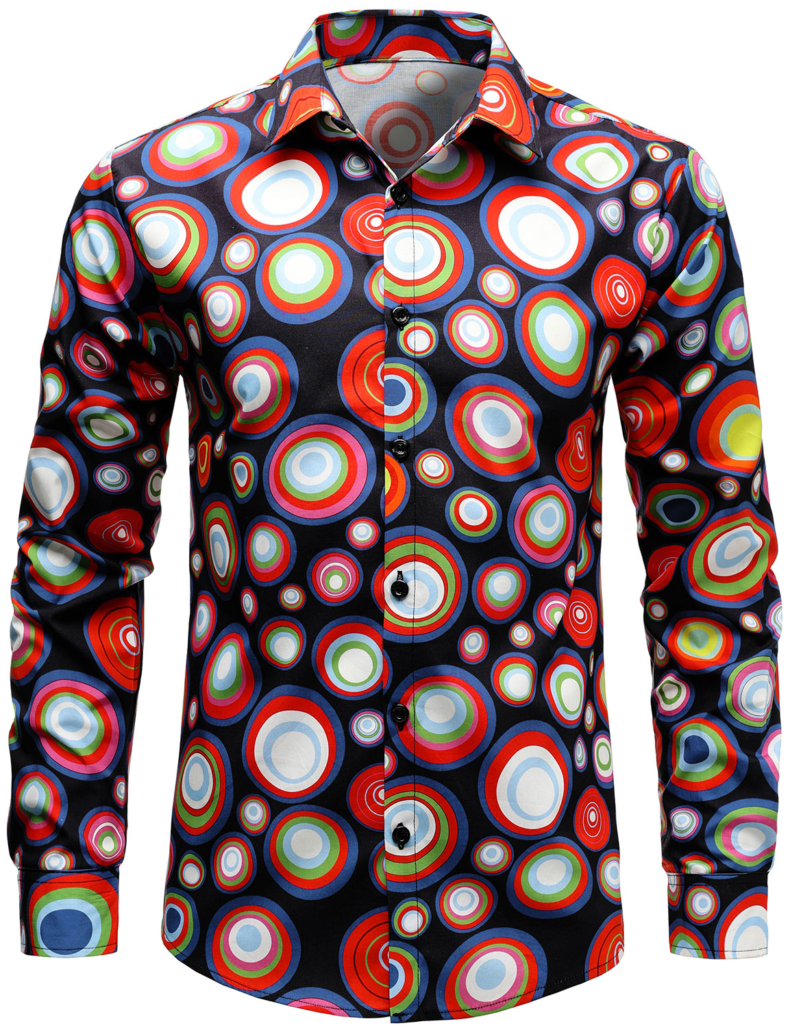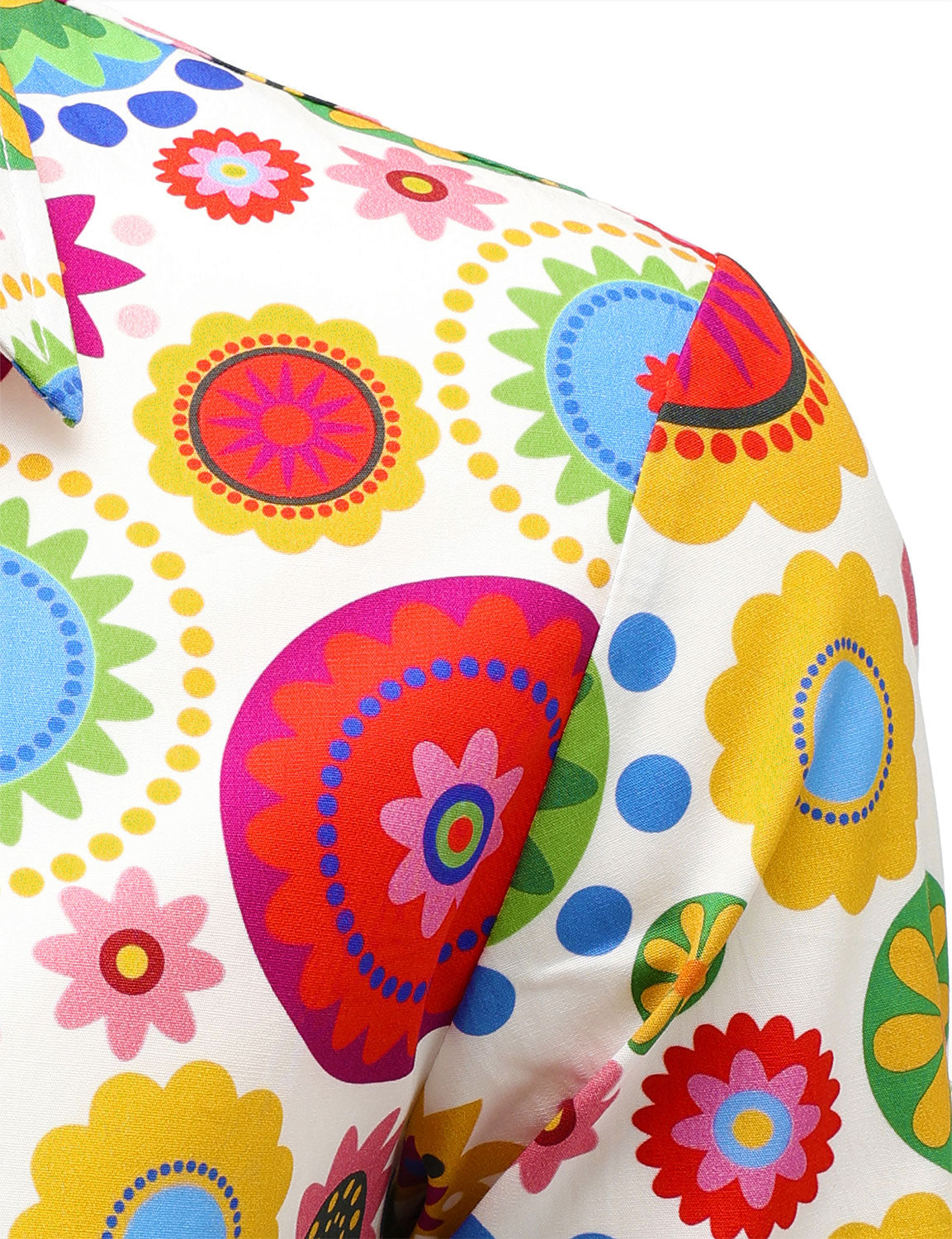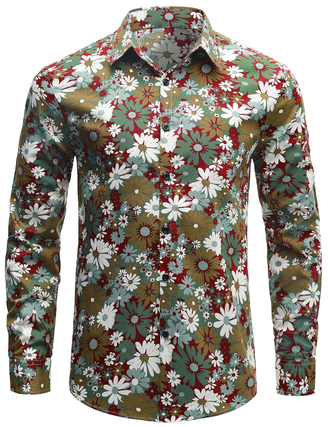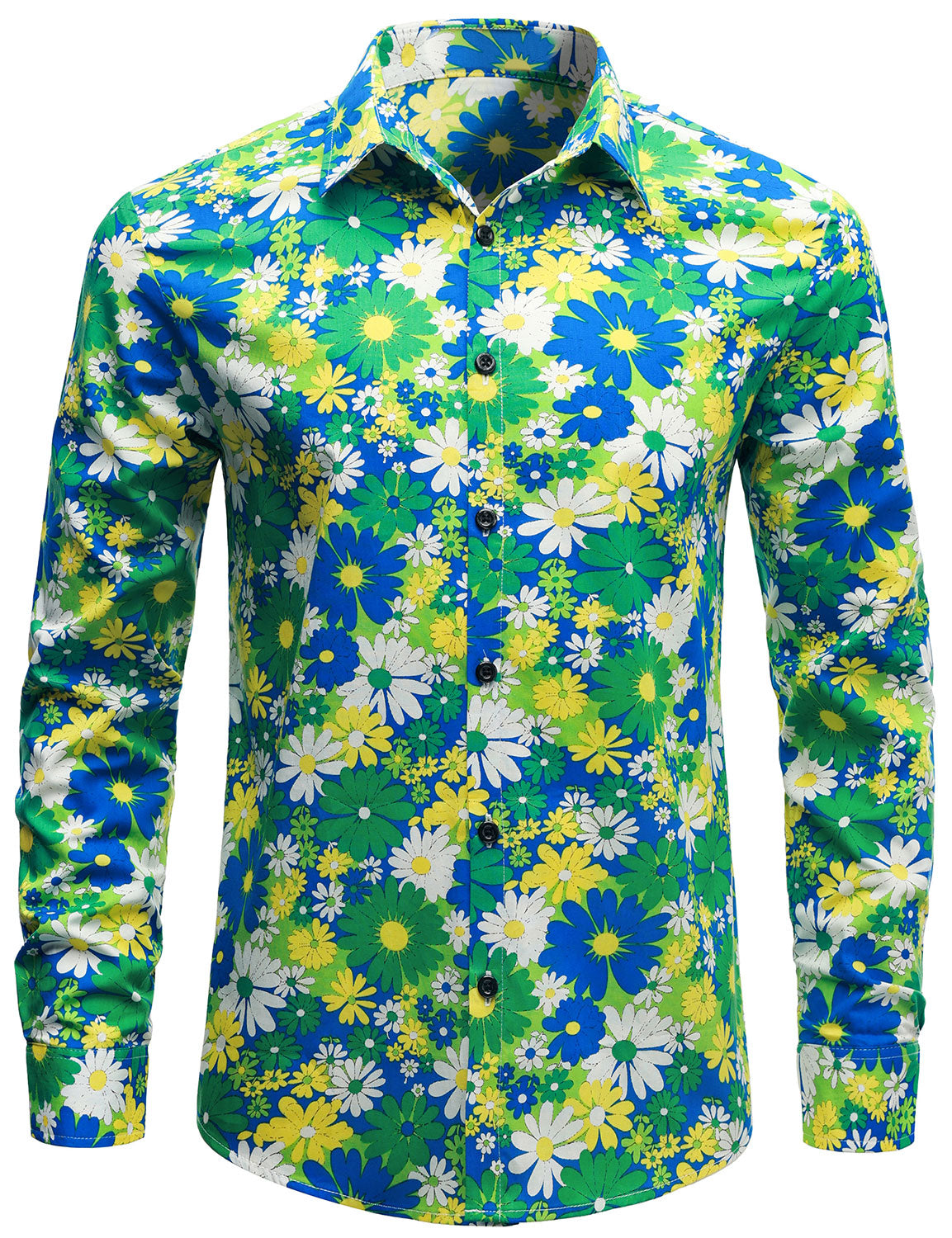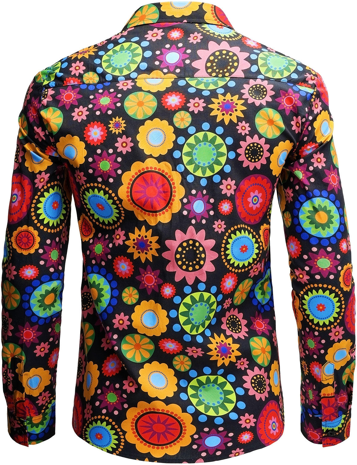 Men's Colorful Floral Cotton Party Disco Button Up Long Sleeve Shirt
