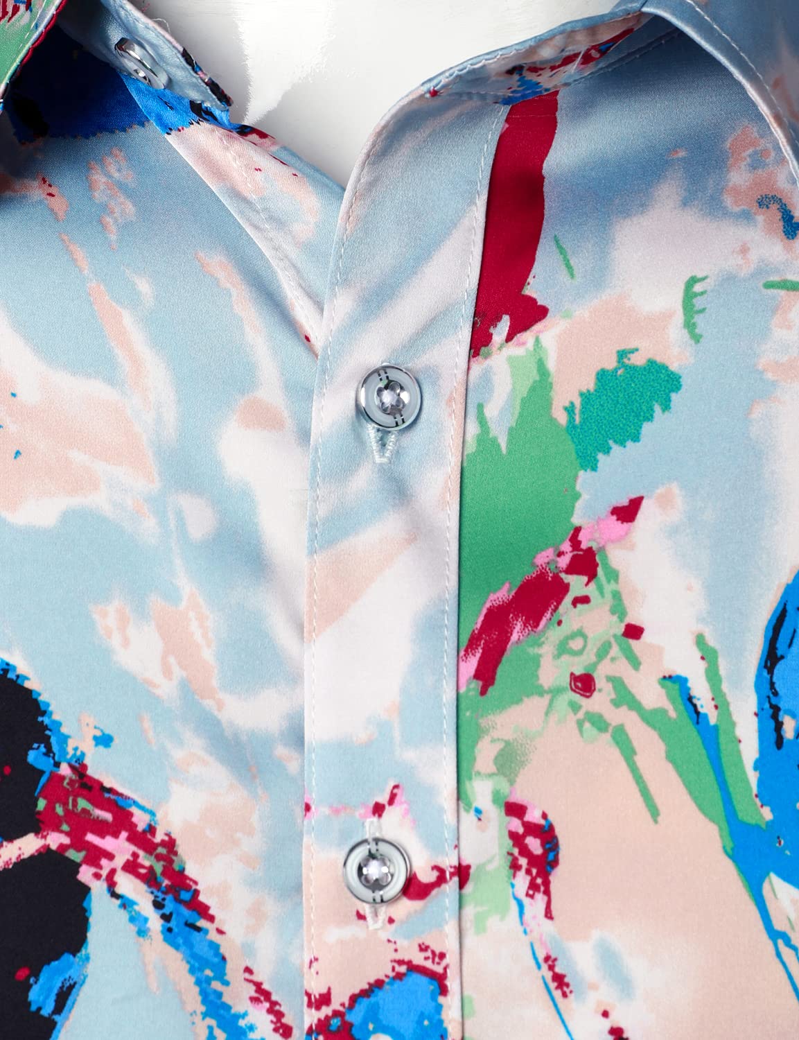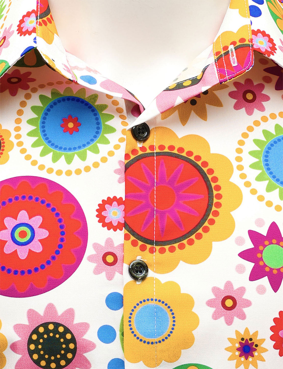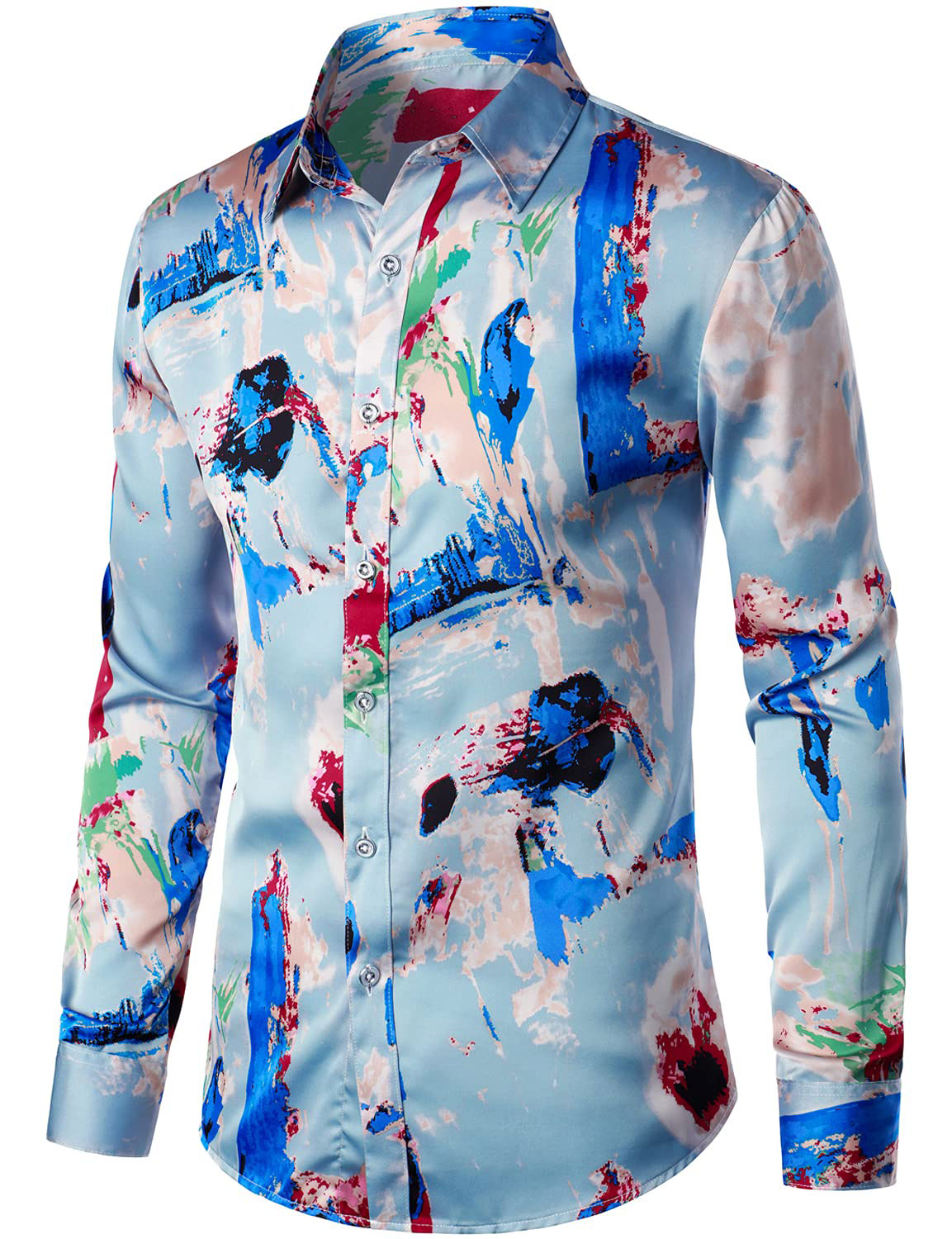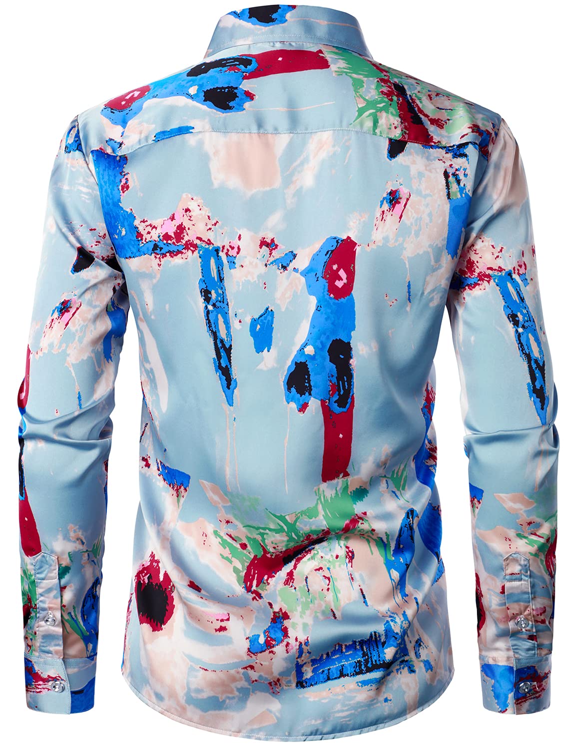 Men's Colorful Floral Cotton Party Disco Button Up Long Sleeve Shirt
