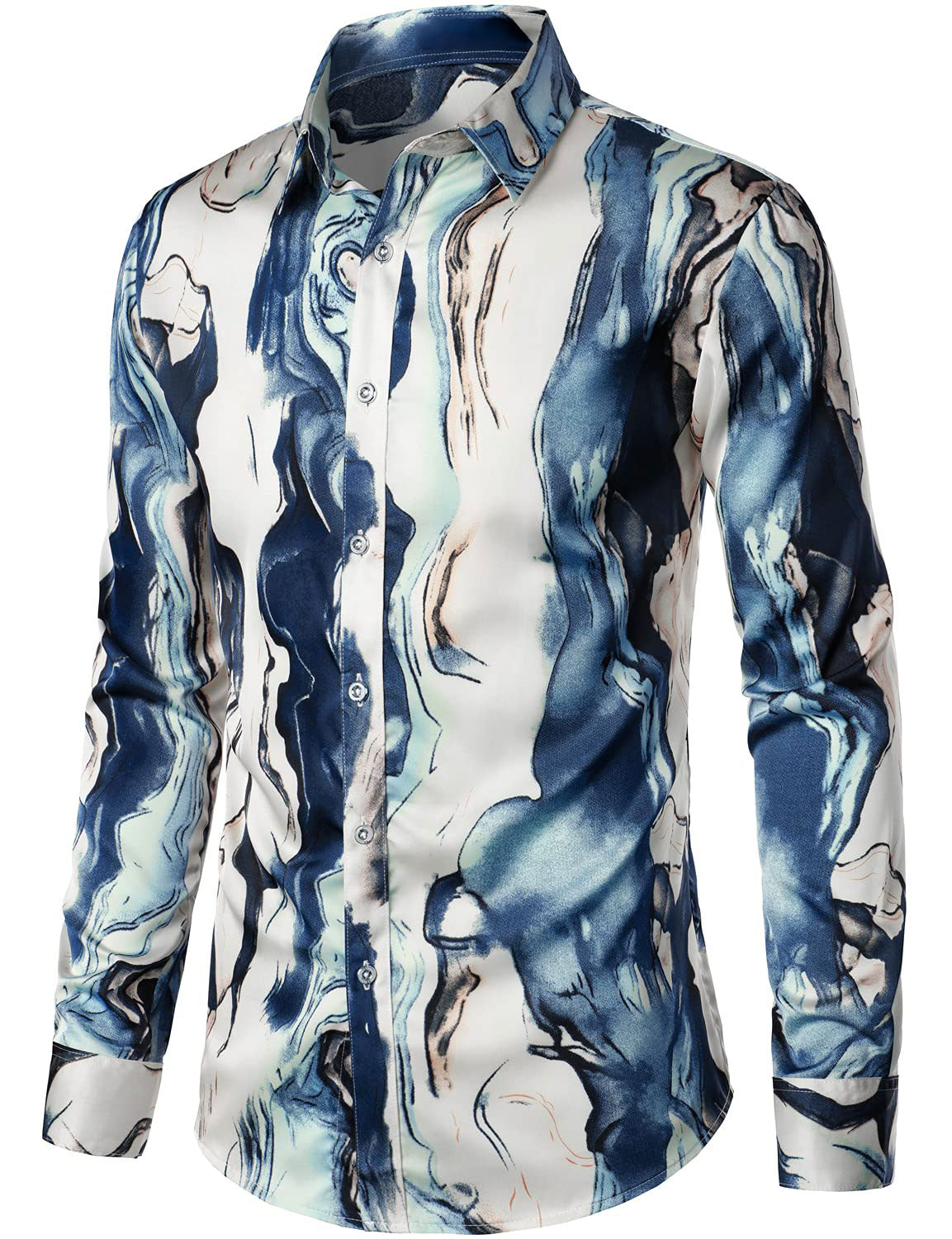 Men's Casual Abstract Print Button Up Long Sleeve Shirt