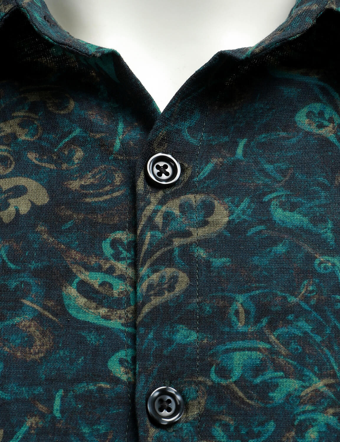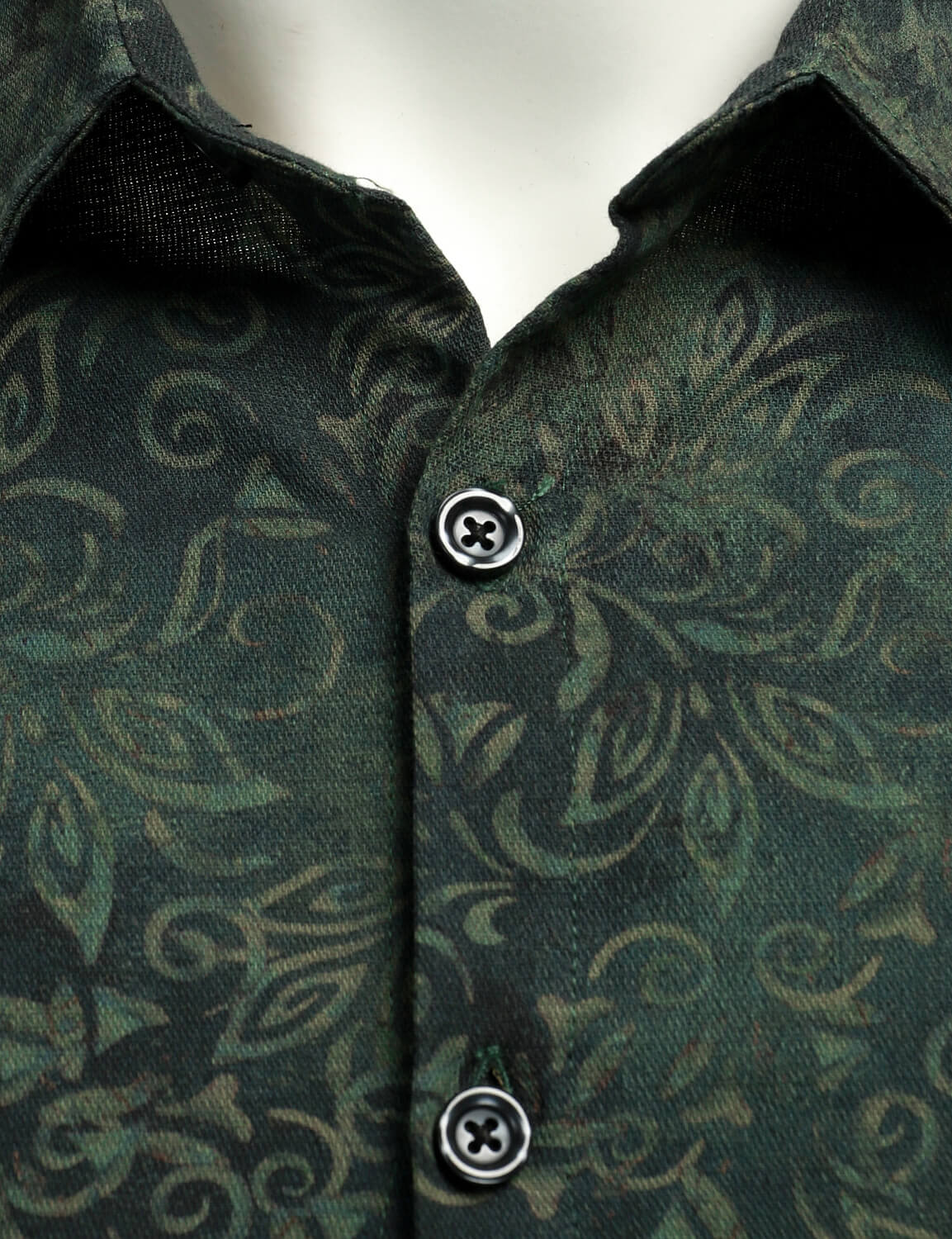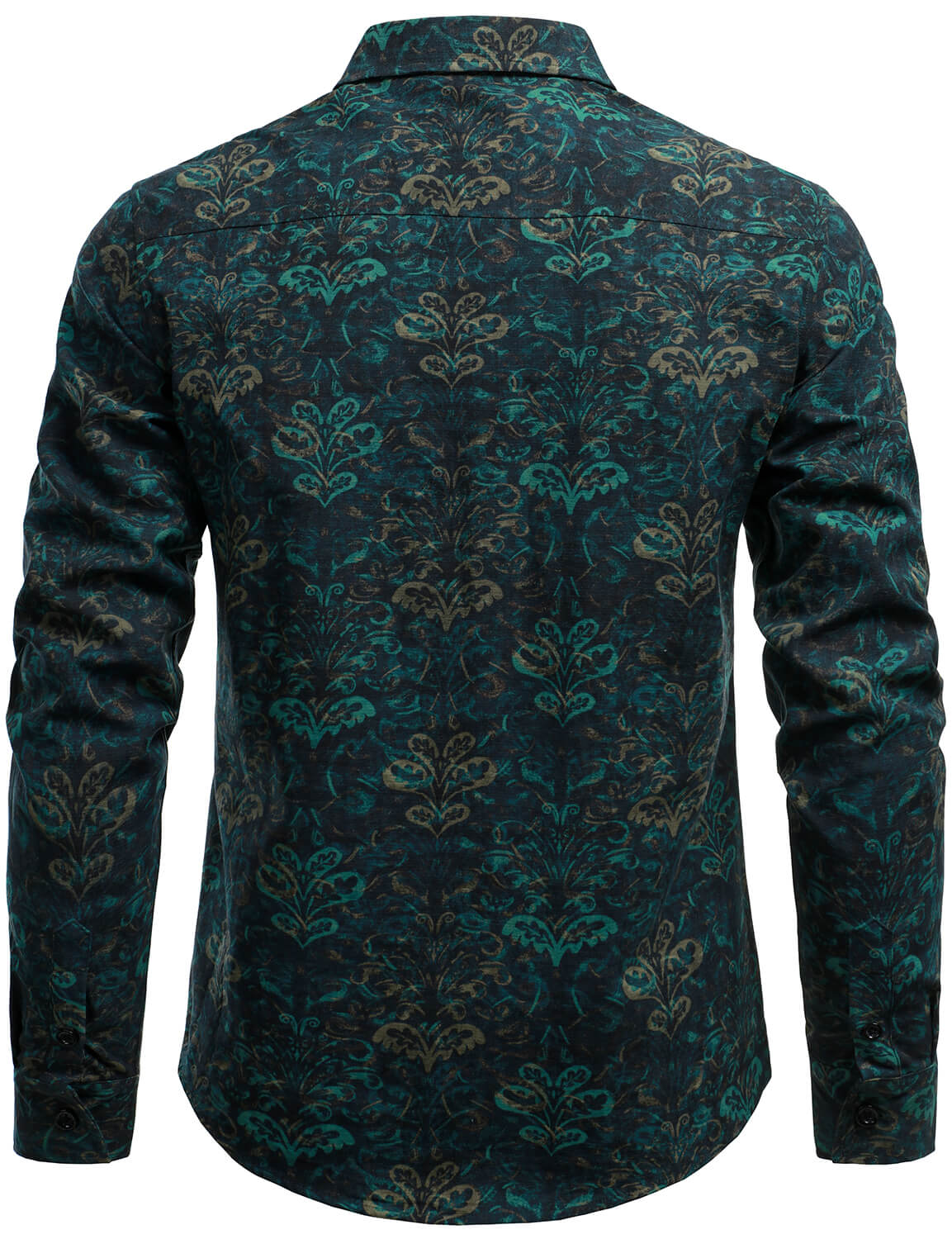 Men's Cotton Green Floral Button Up Long Sleeve Shirt