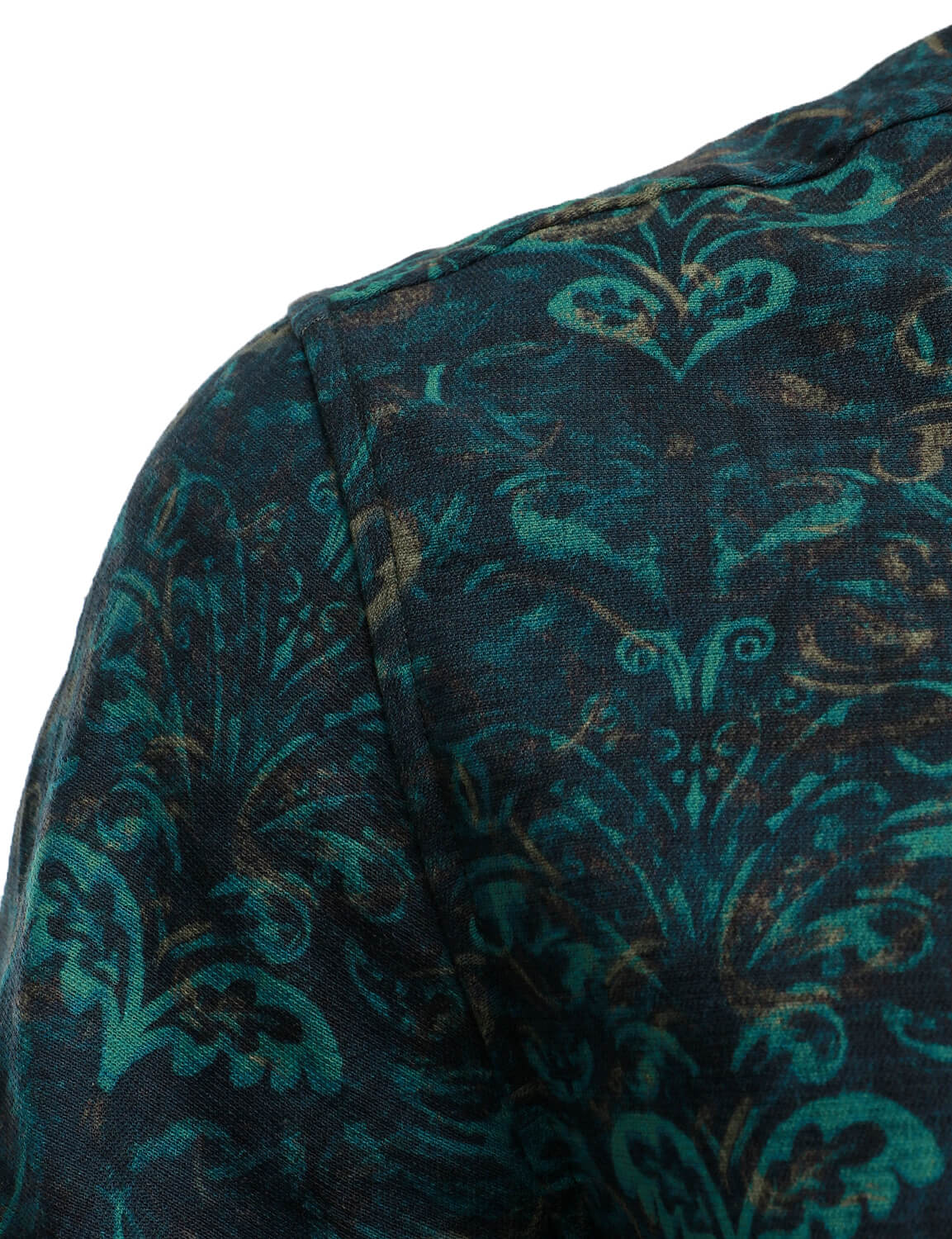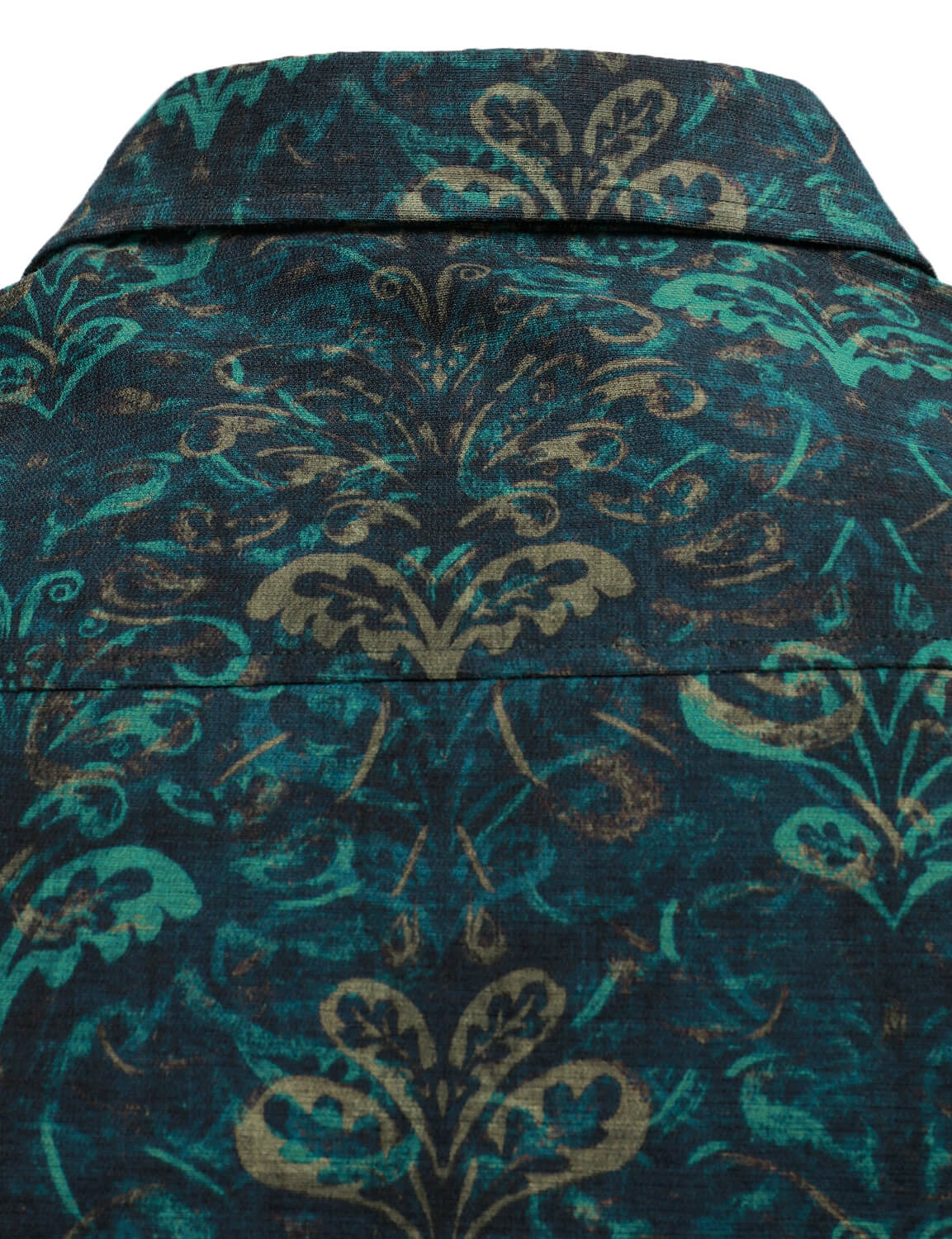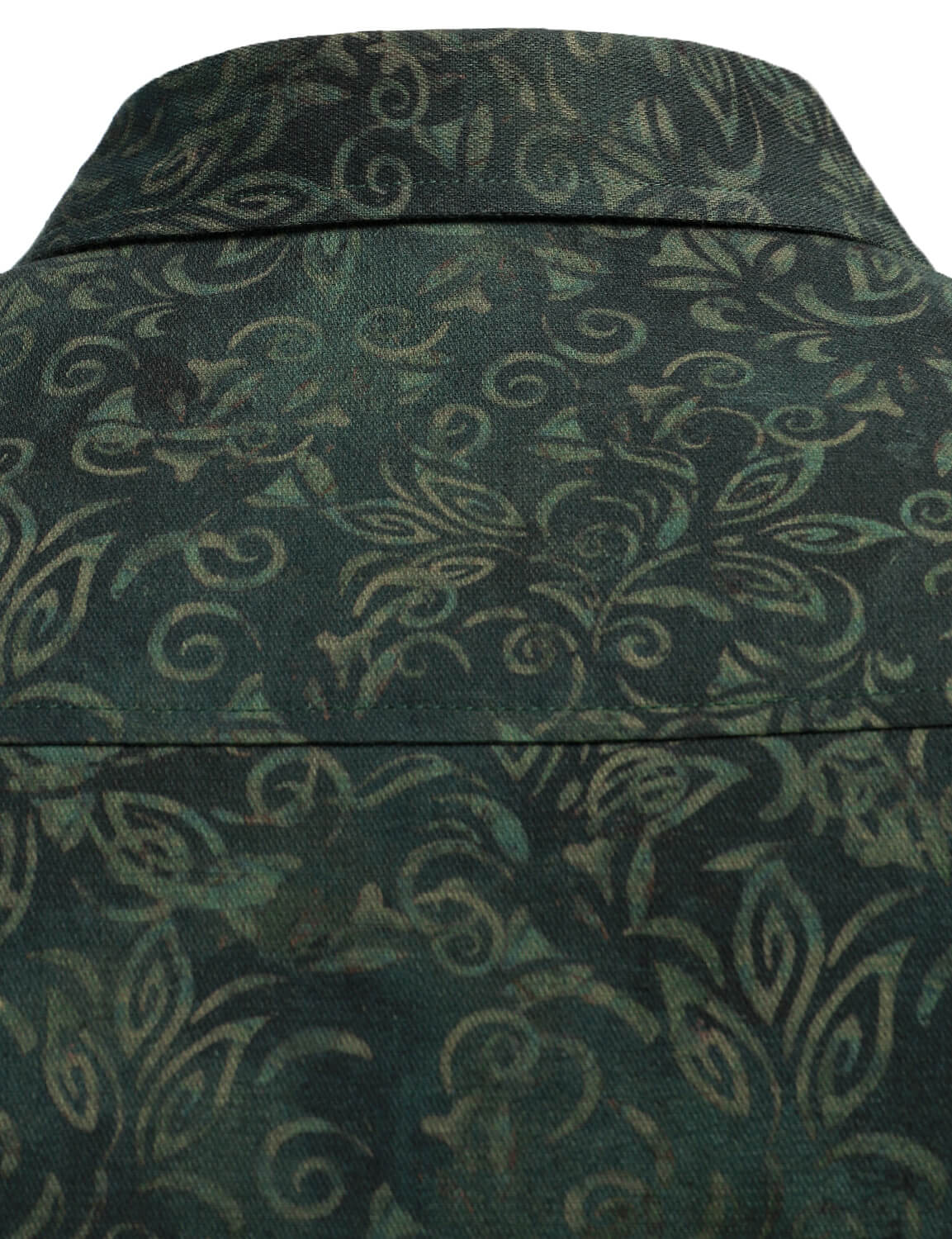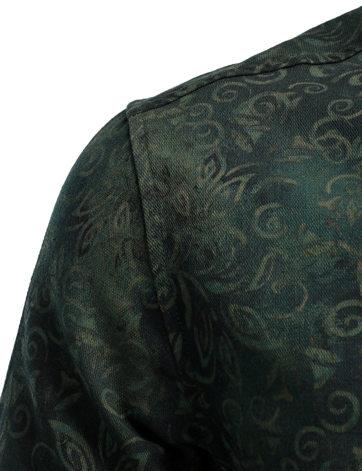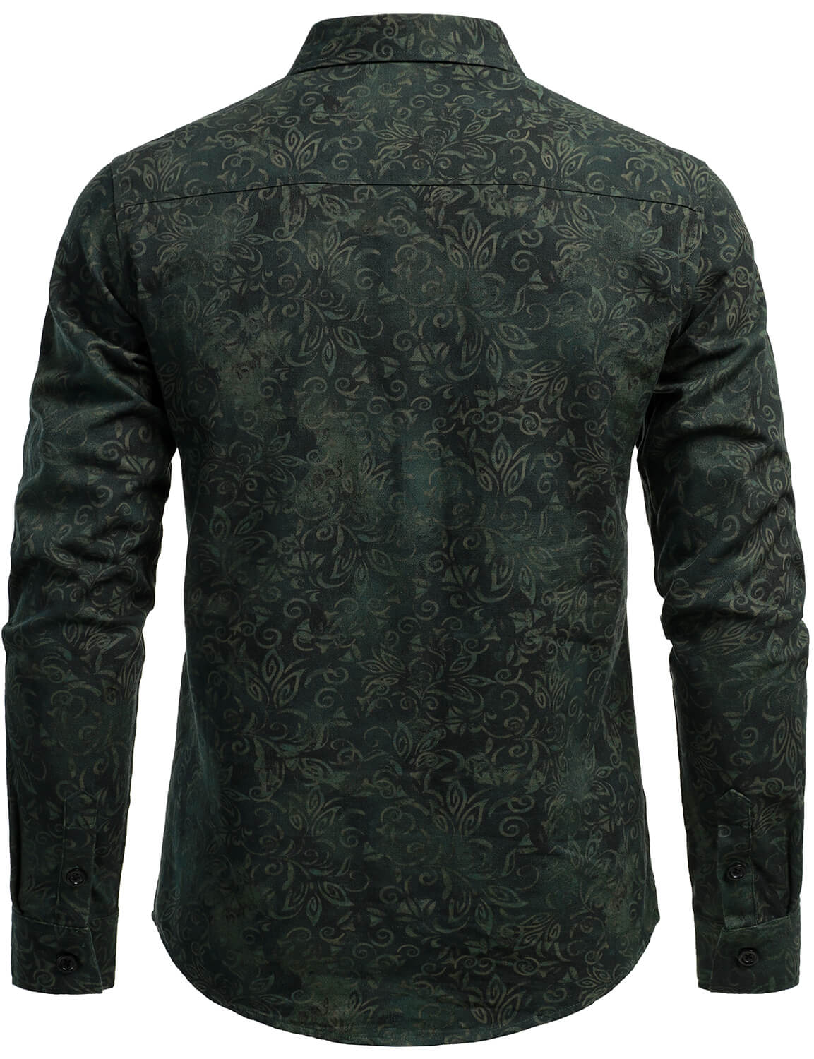 Men's Vintage Print Green Long Sleeve Dress Shirt