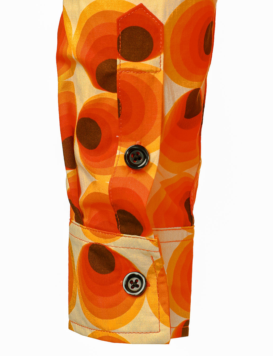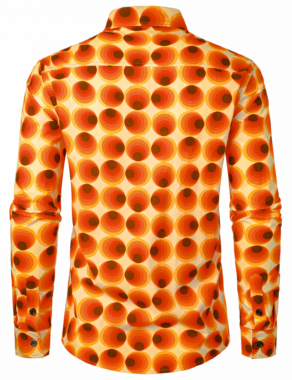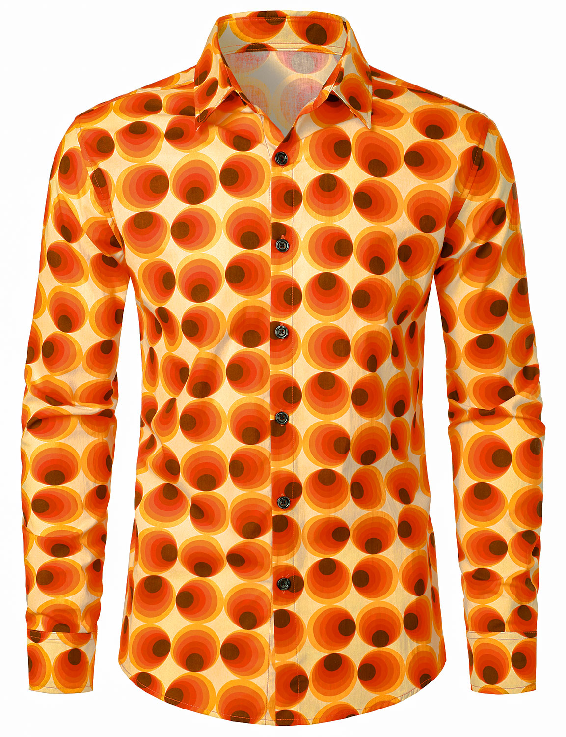 Men's Orange 70s Retro Button Up Vintage Geometric Circle Long Sleeve Shirt