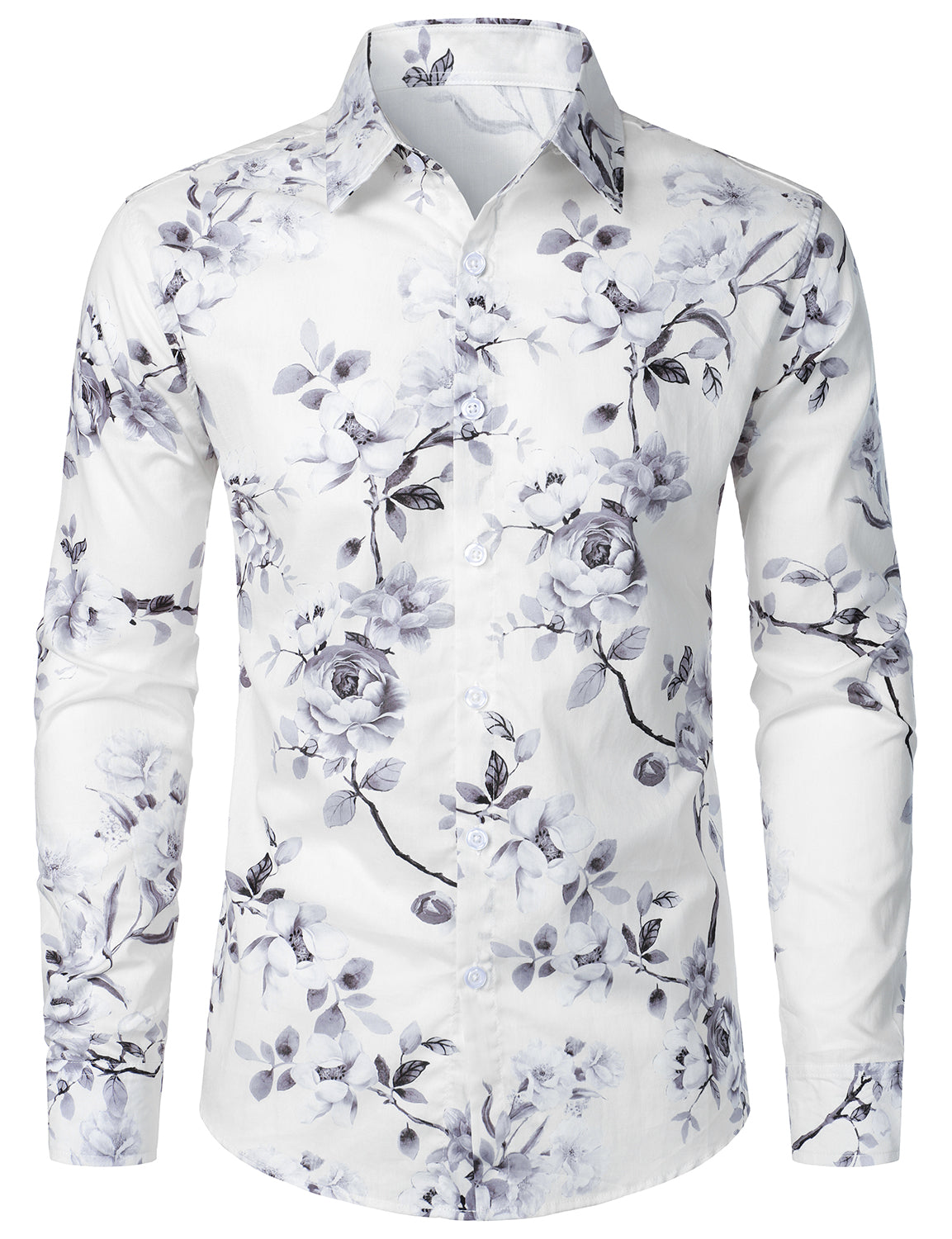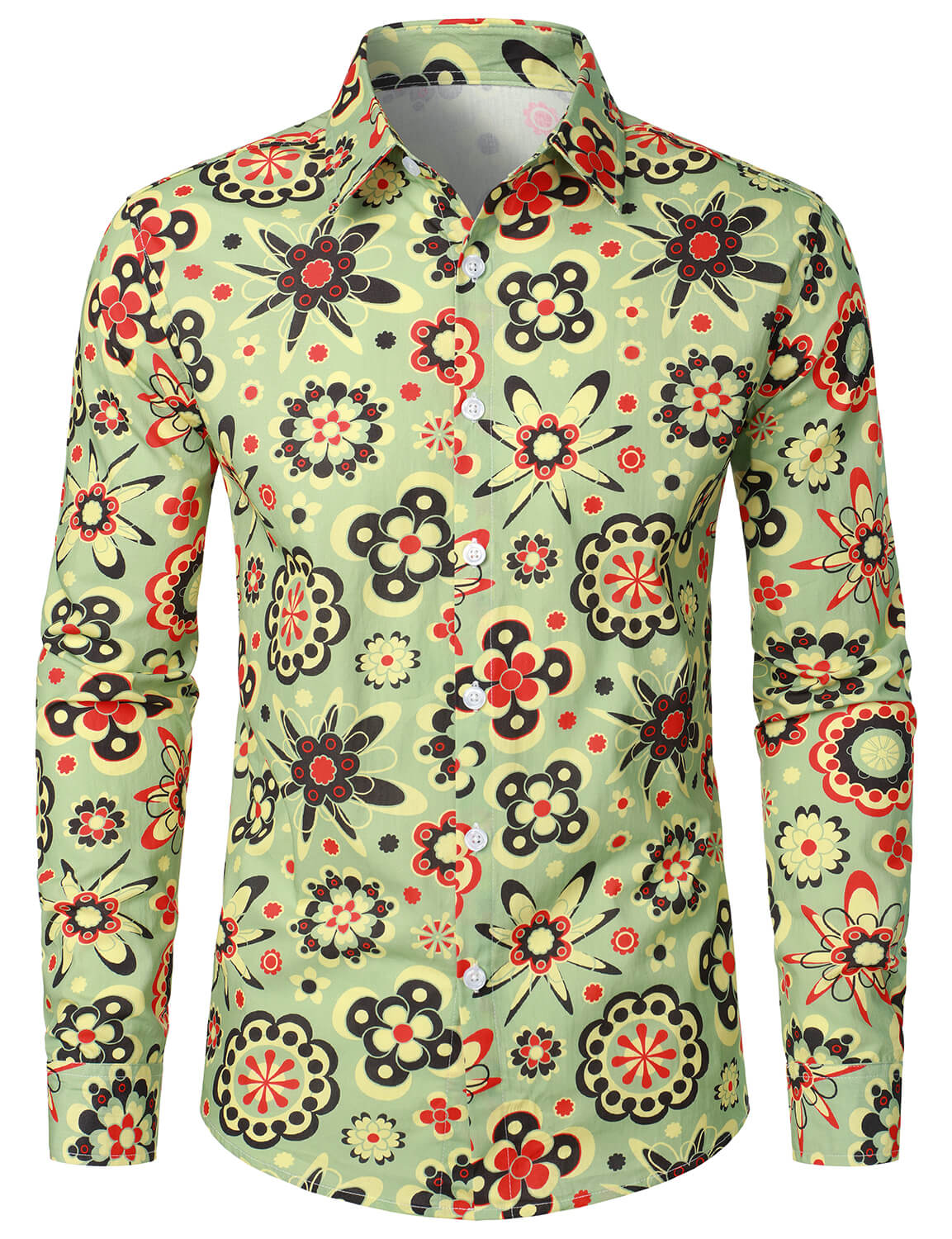 Men's Cotton Floral Disco Party Button Up Long Sleeve Shirt