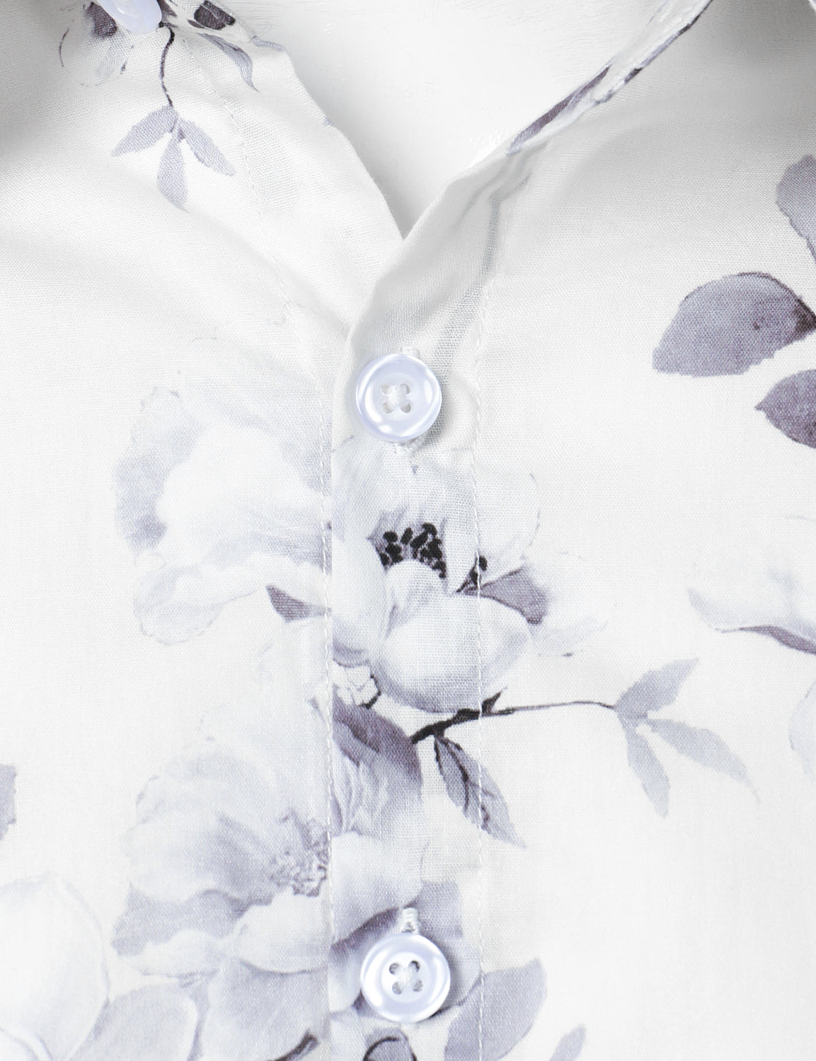 Men's Floral Cotton White Long Sleeve Shirt