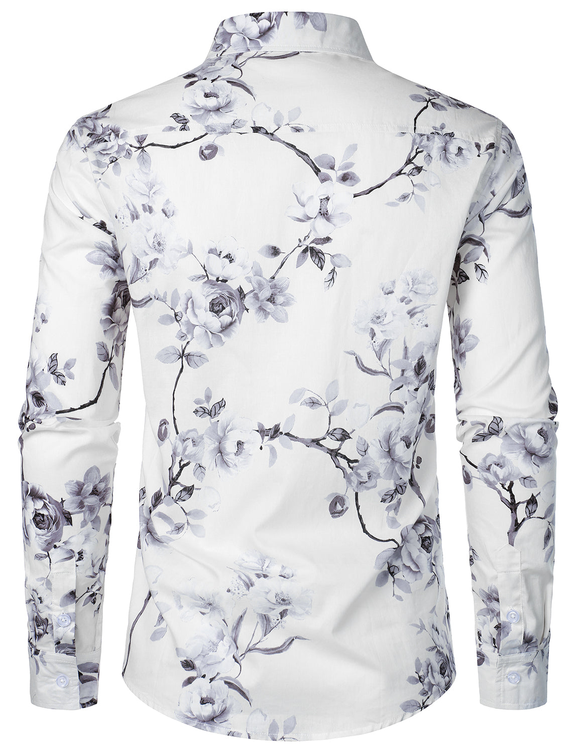 Men's Flower Print Cotton Vintage Long Sleeve Button Up Dress Shirt
