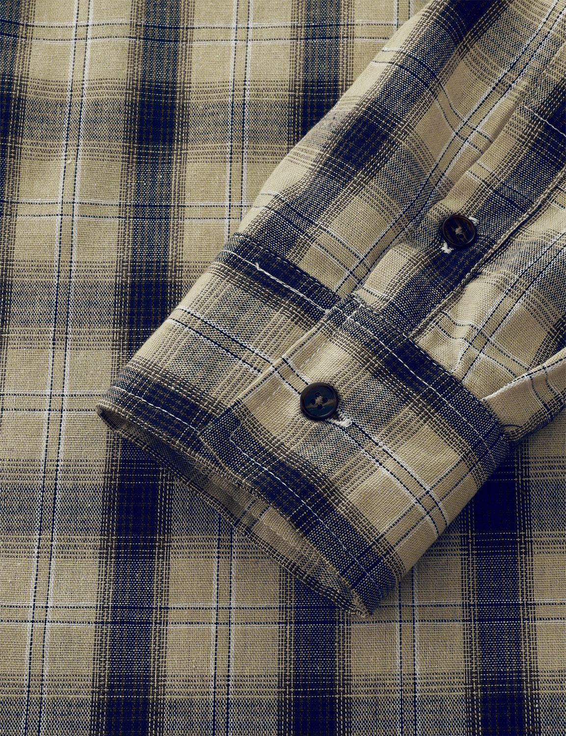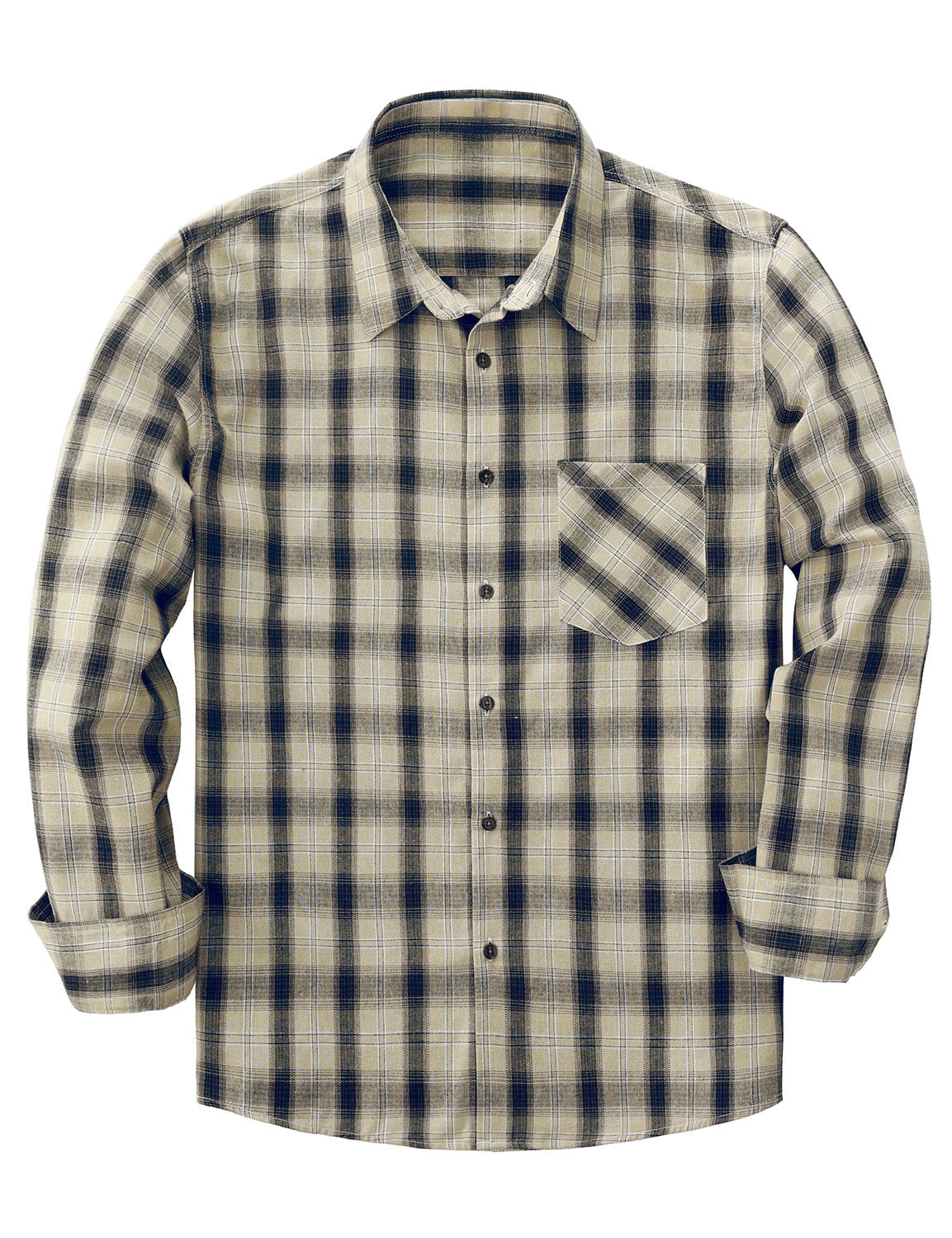 Men's Casual Beige Button Long Sleeve Shirt