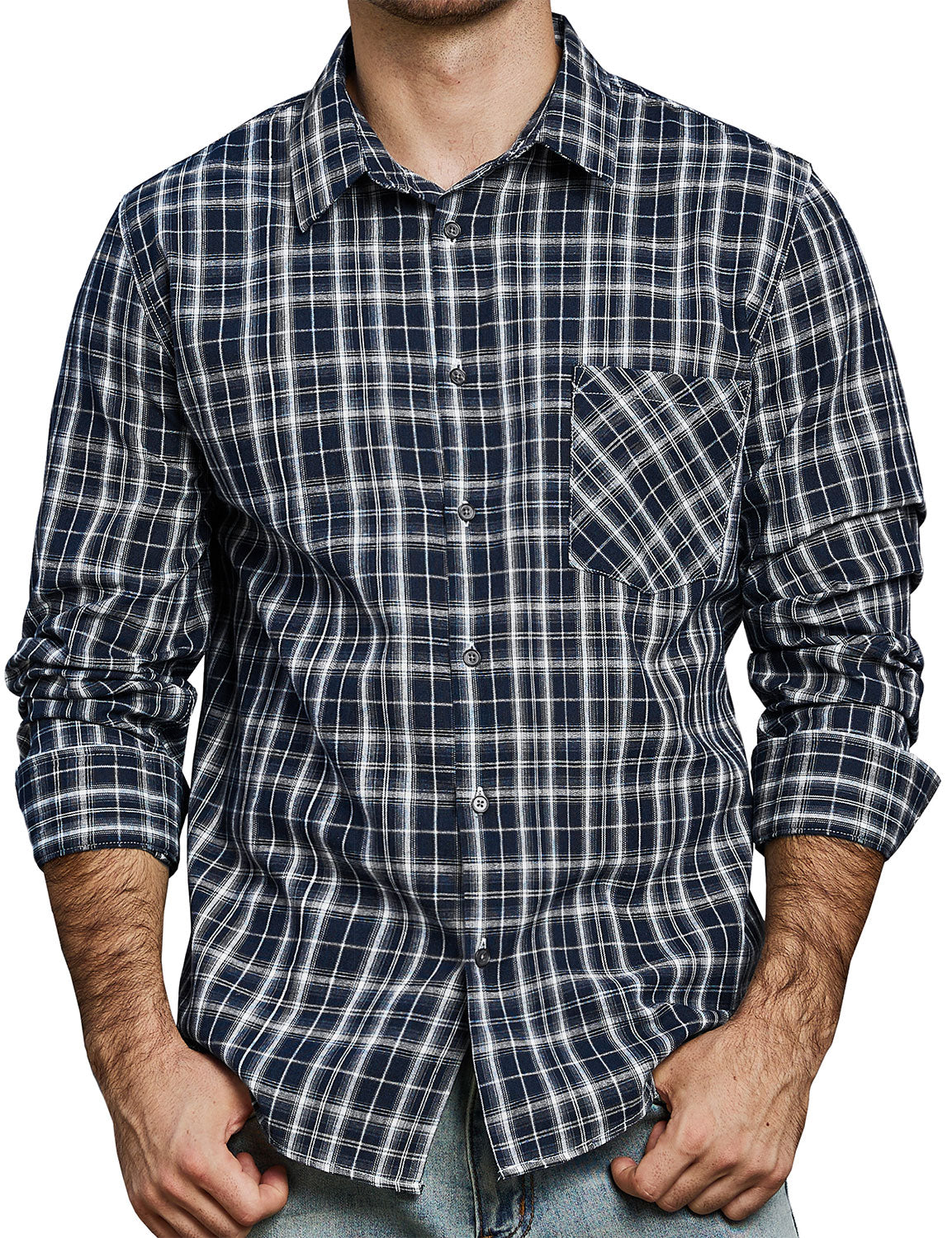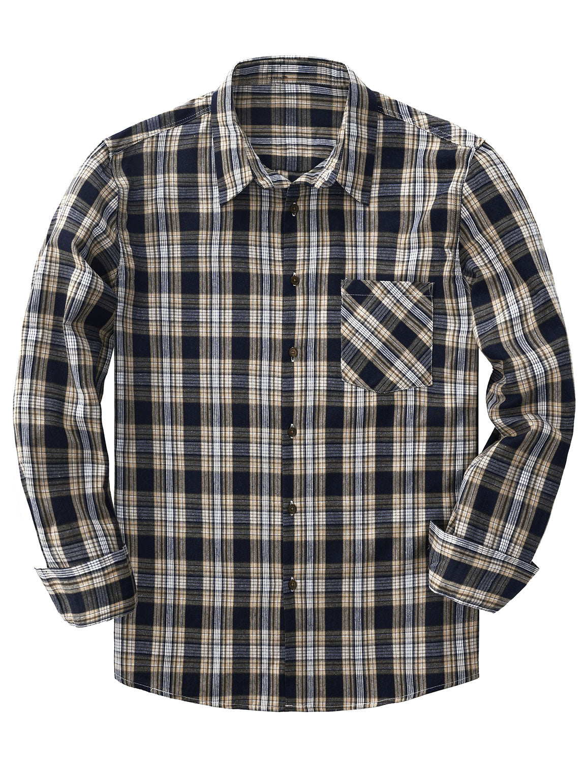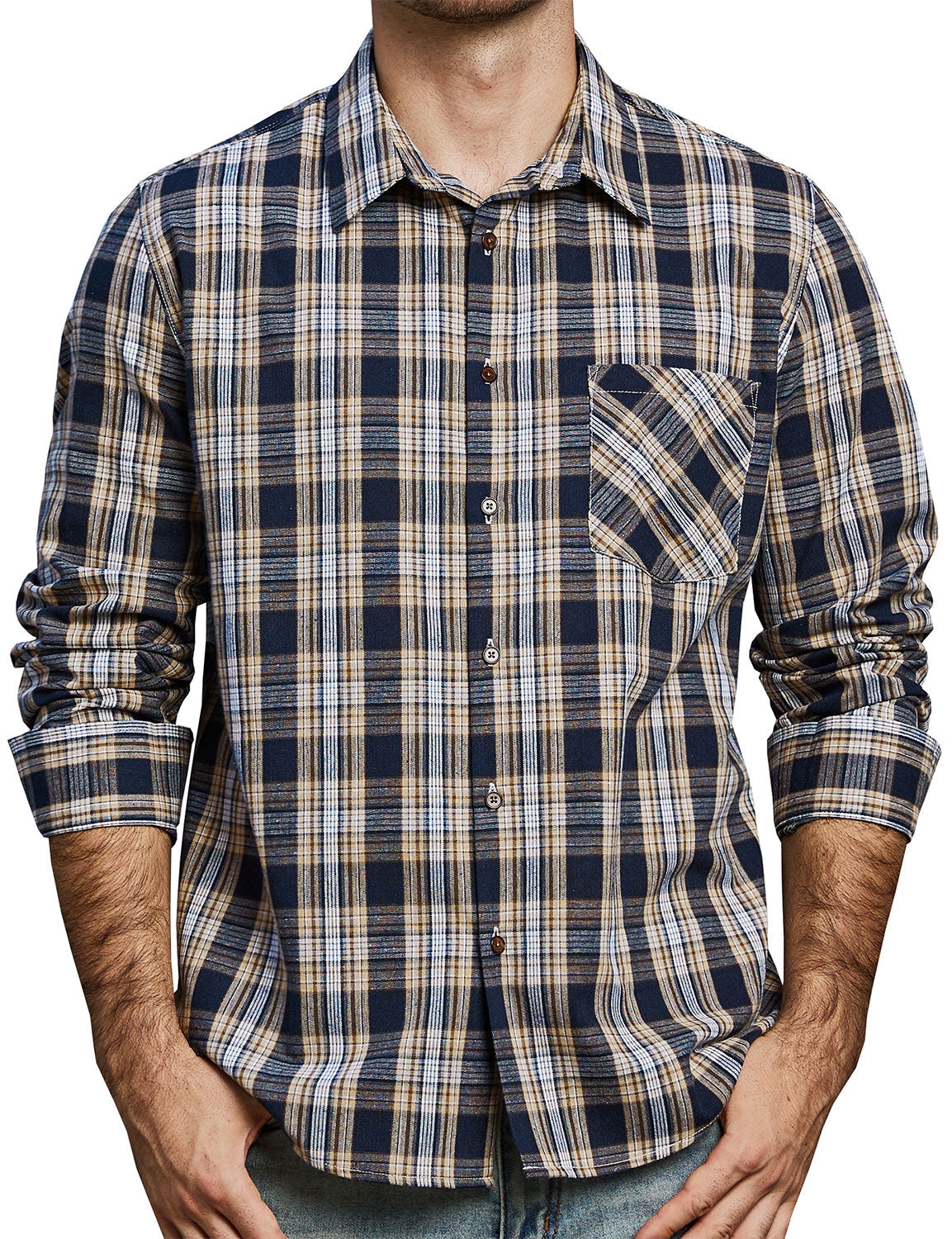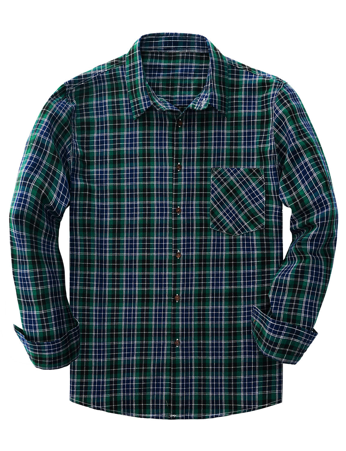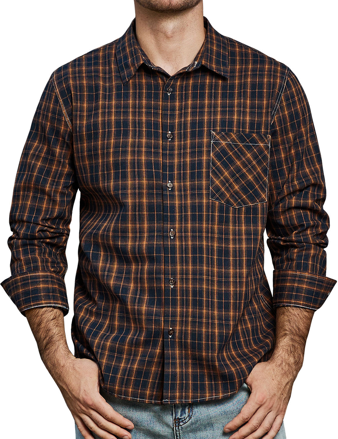 Men's Plaid Casual Retro Pocket Long Sleeve Dress Shirt