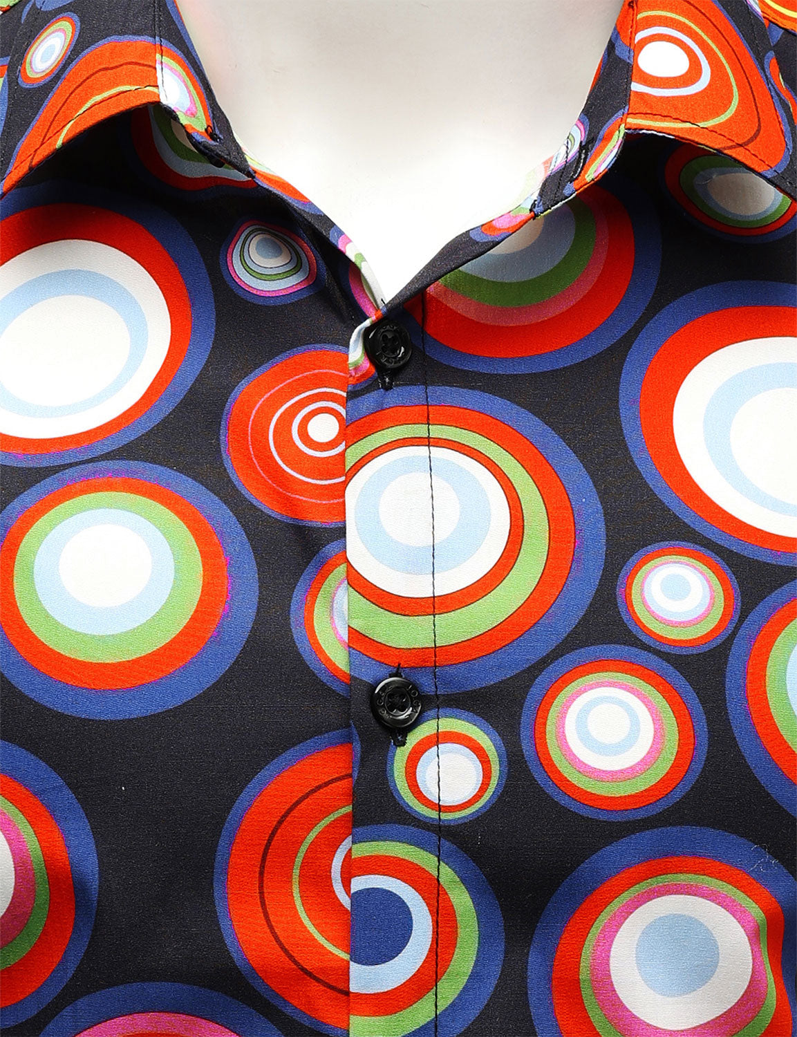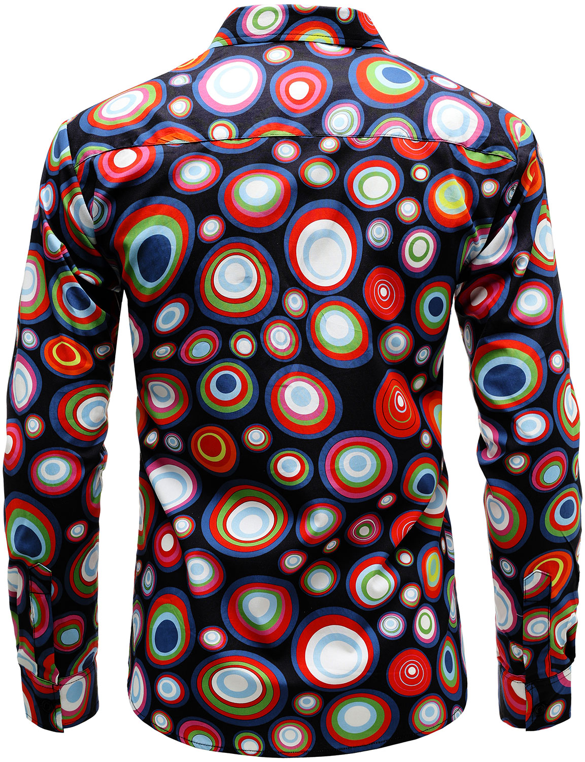 Men's Retro 70s Cotton Geometric Round Print Long Sleeve Shirt