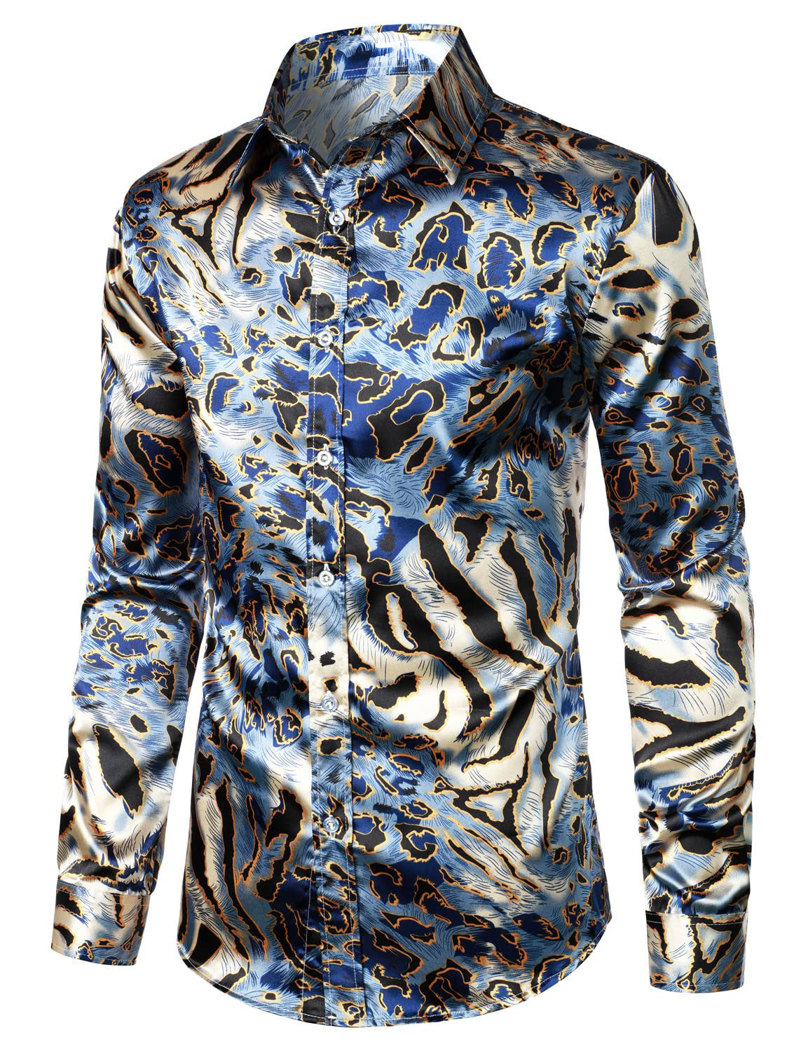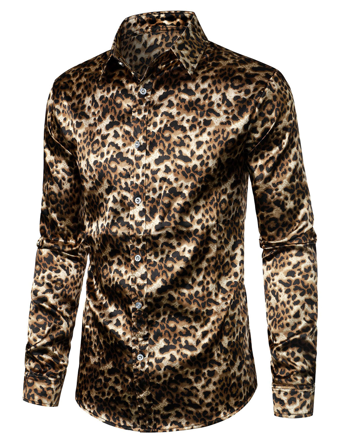 Men's Leopard Vintage Long Sleeve Button Up Dress Shirt