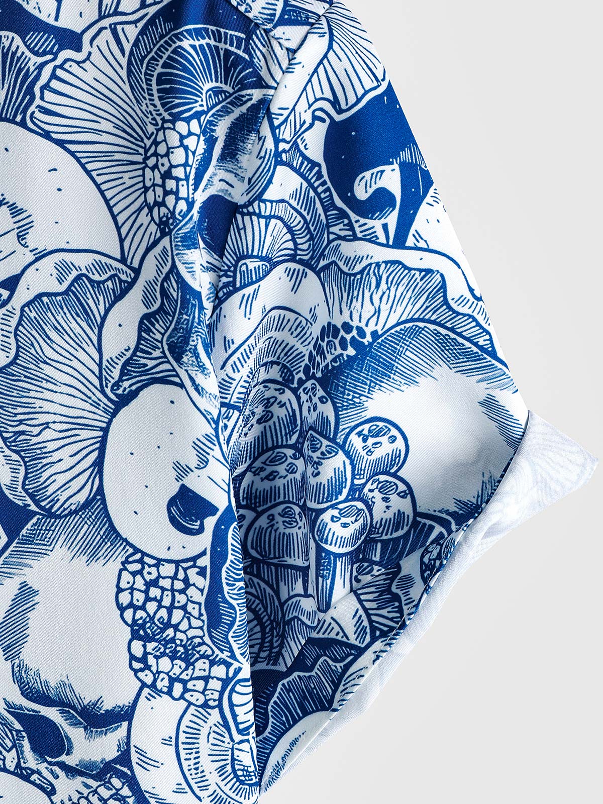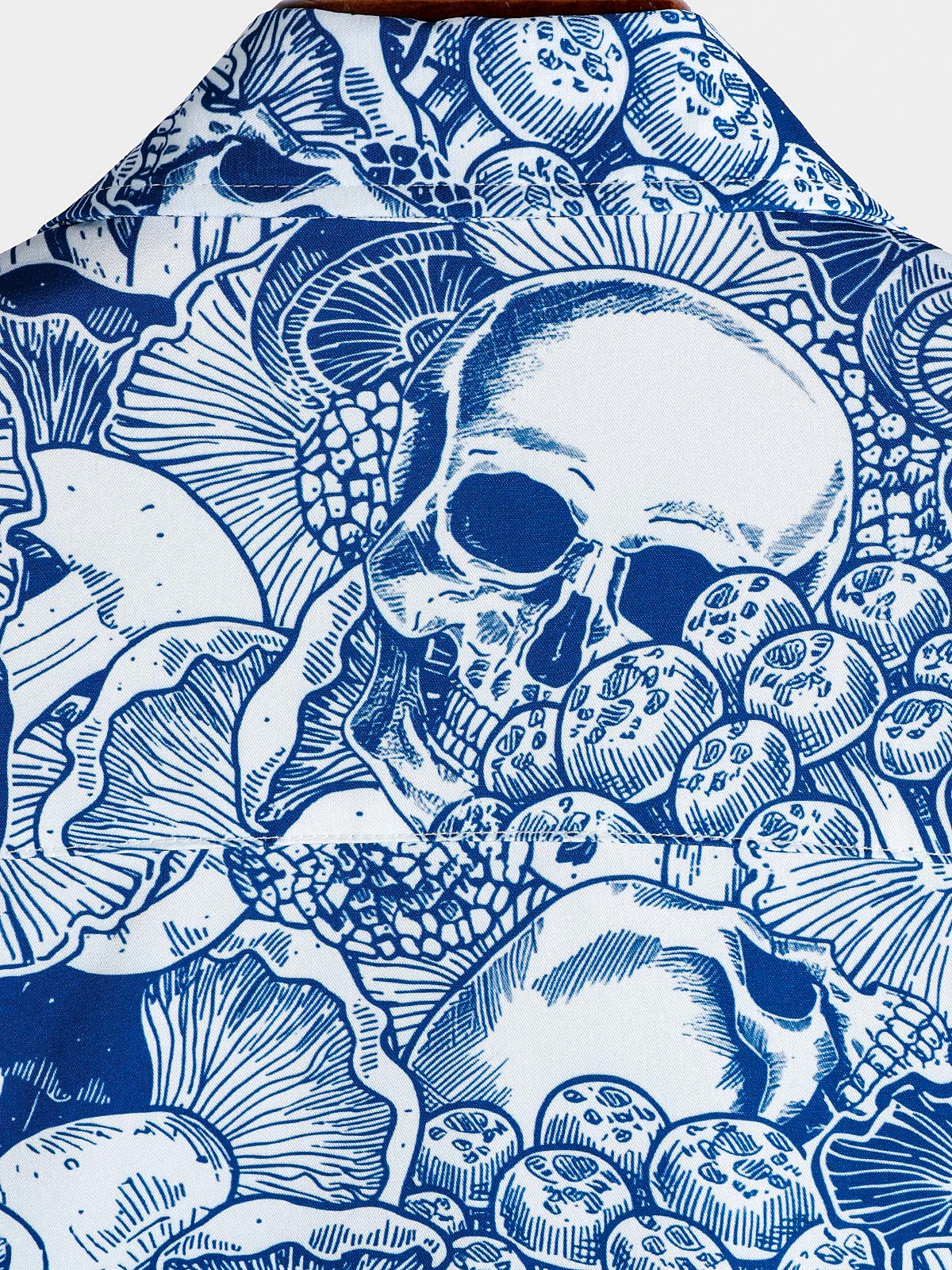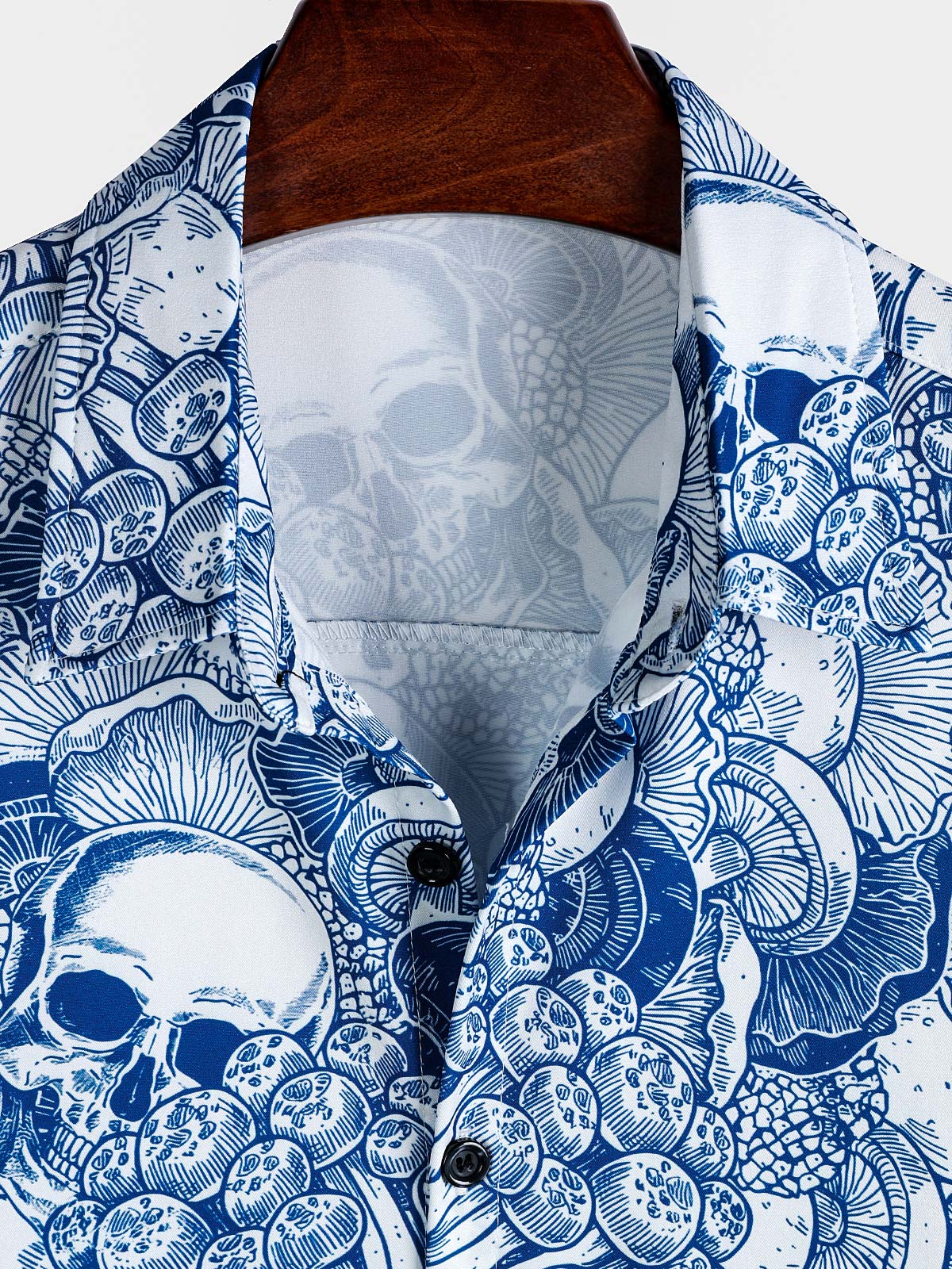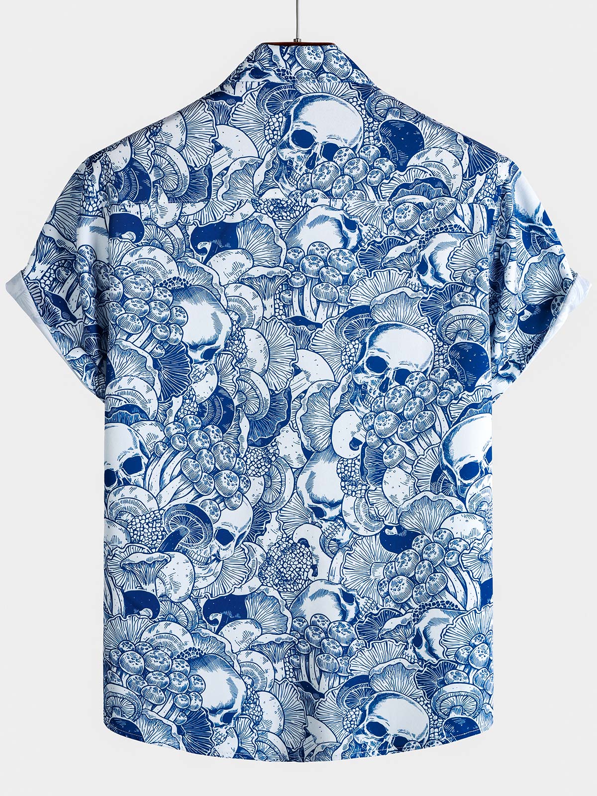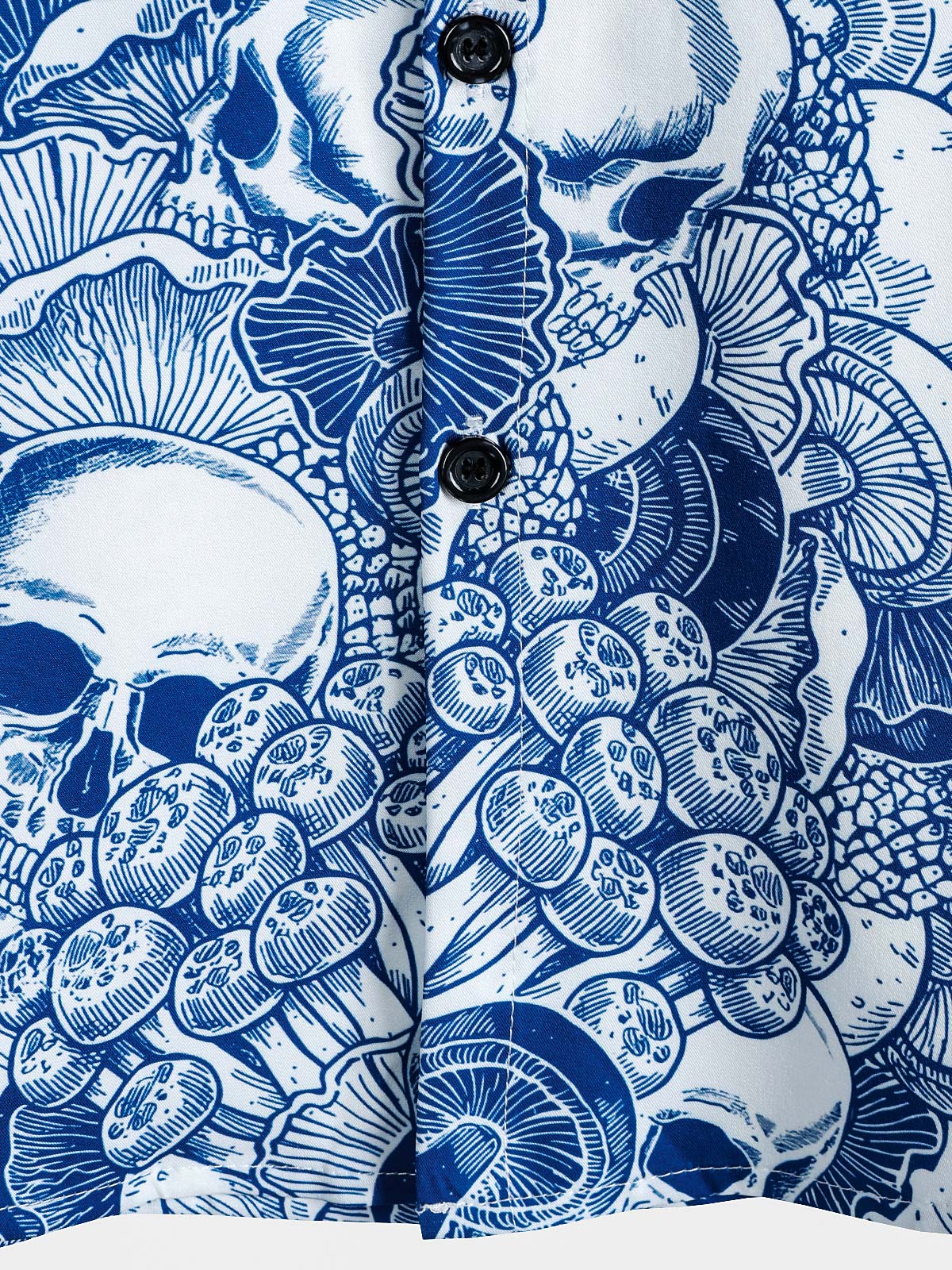 Men's Blue Skull Graphic Button Up Short Sleeve Punk Rock Art Shirt