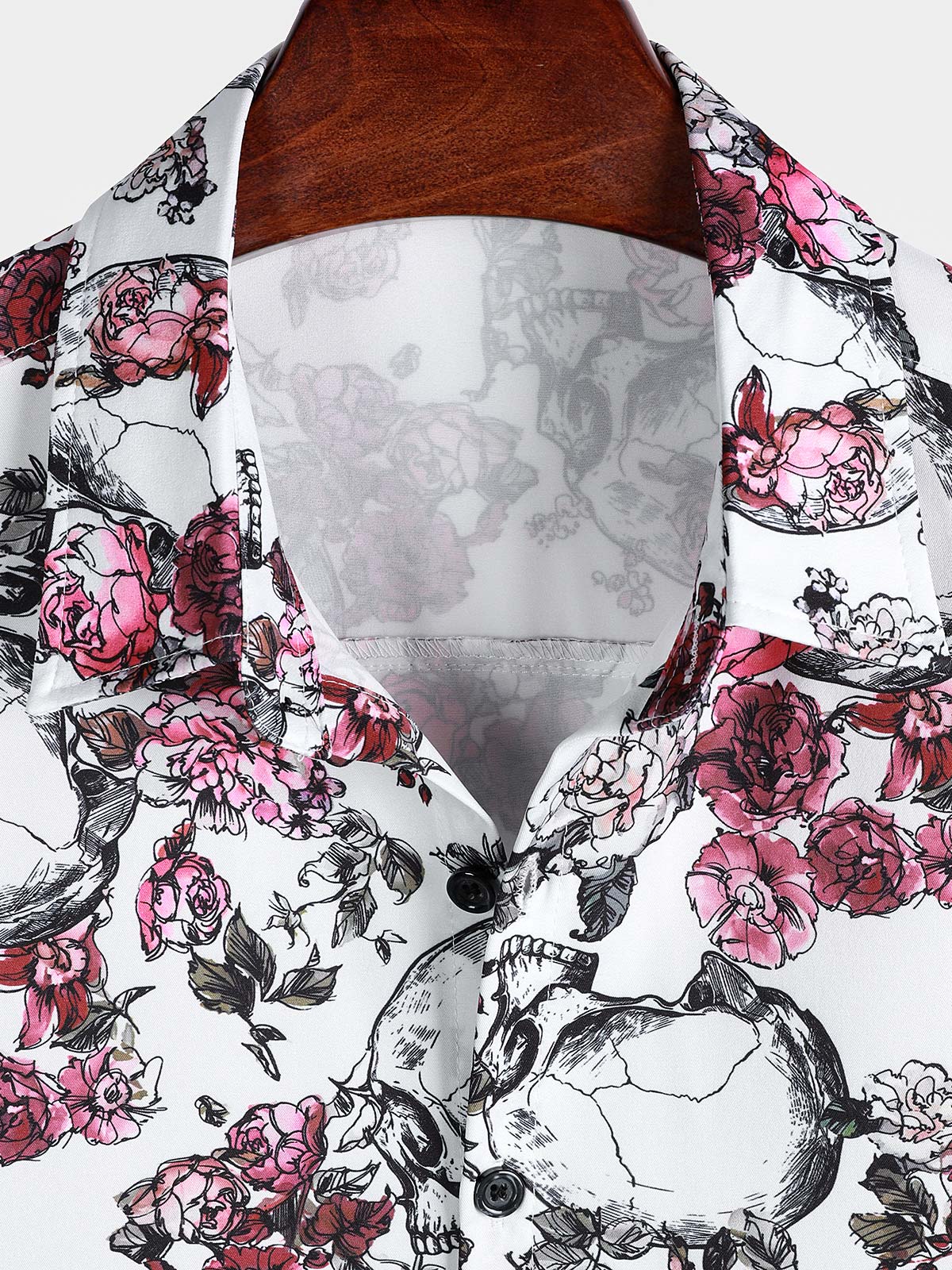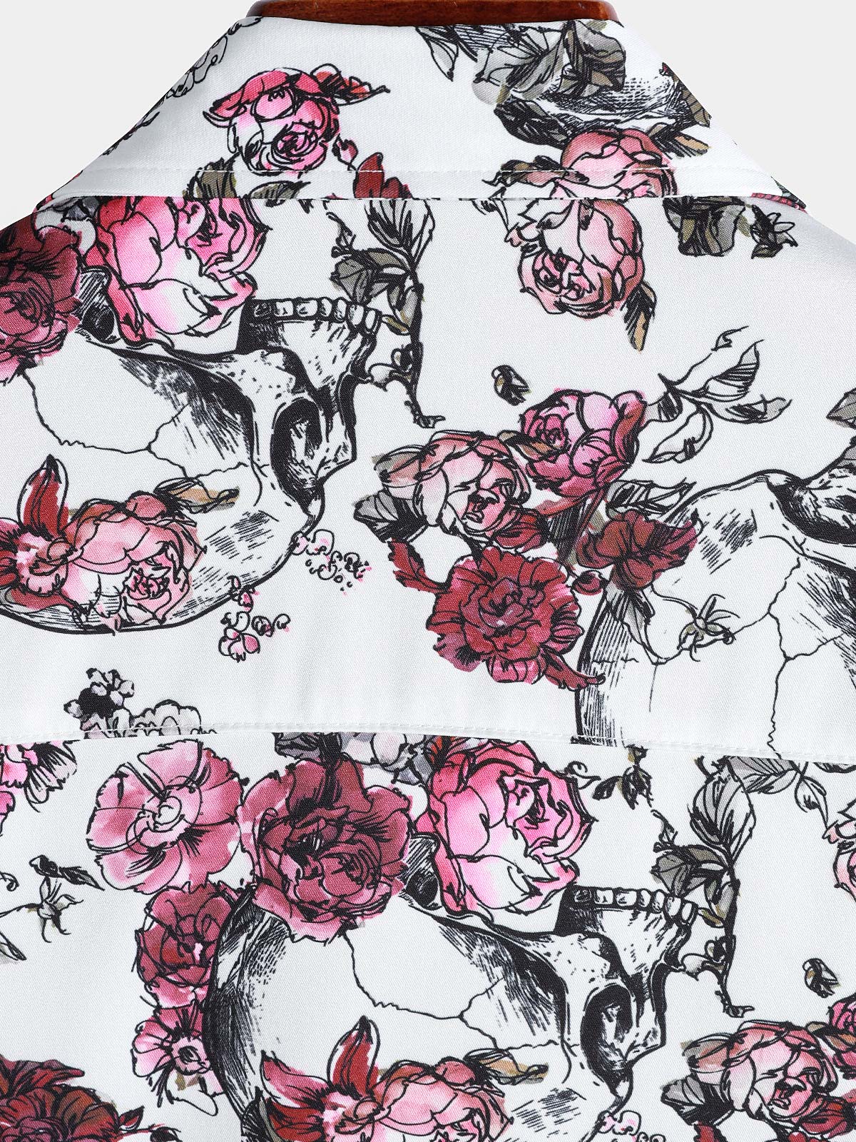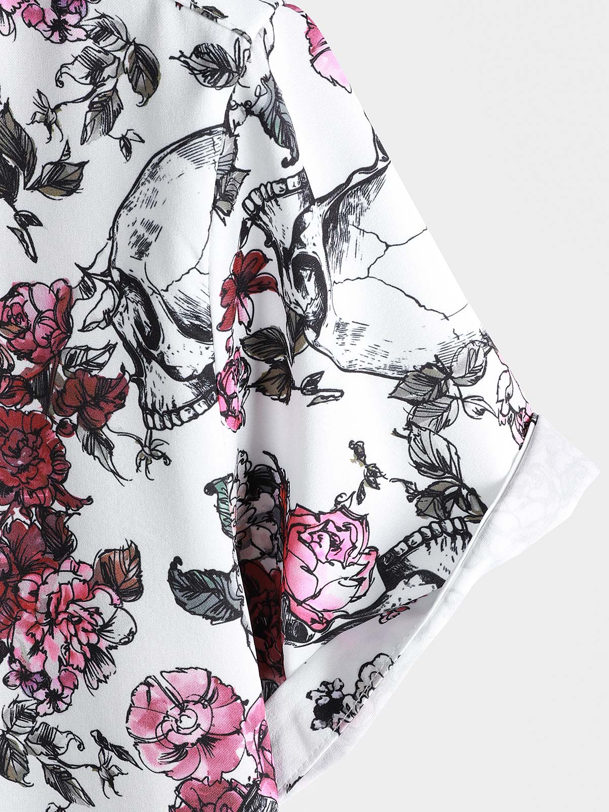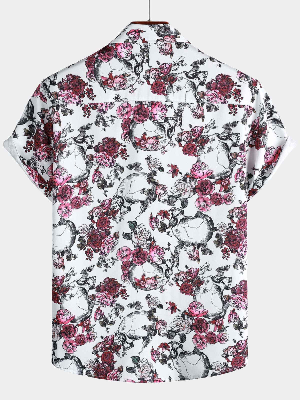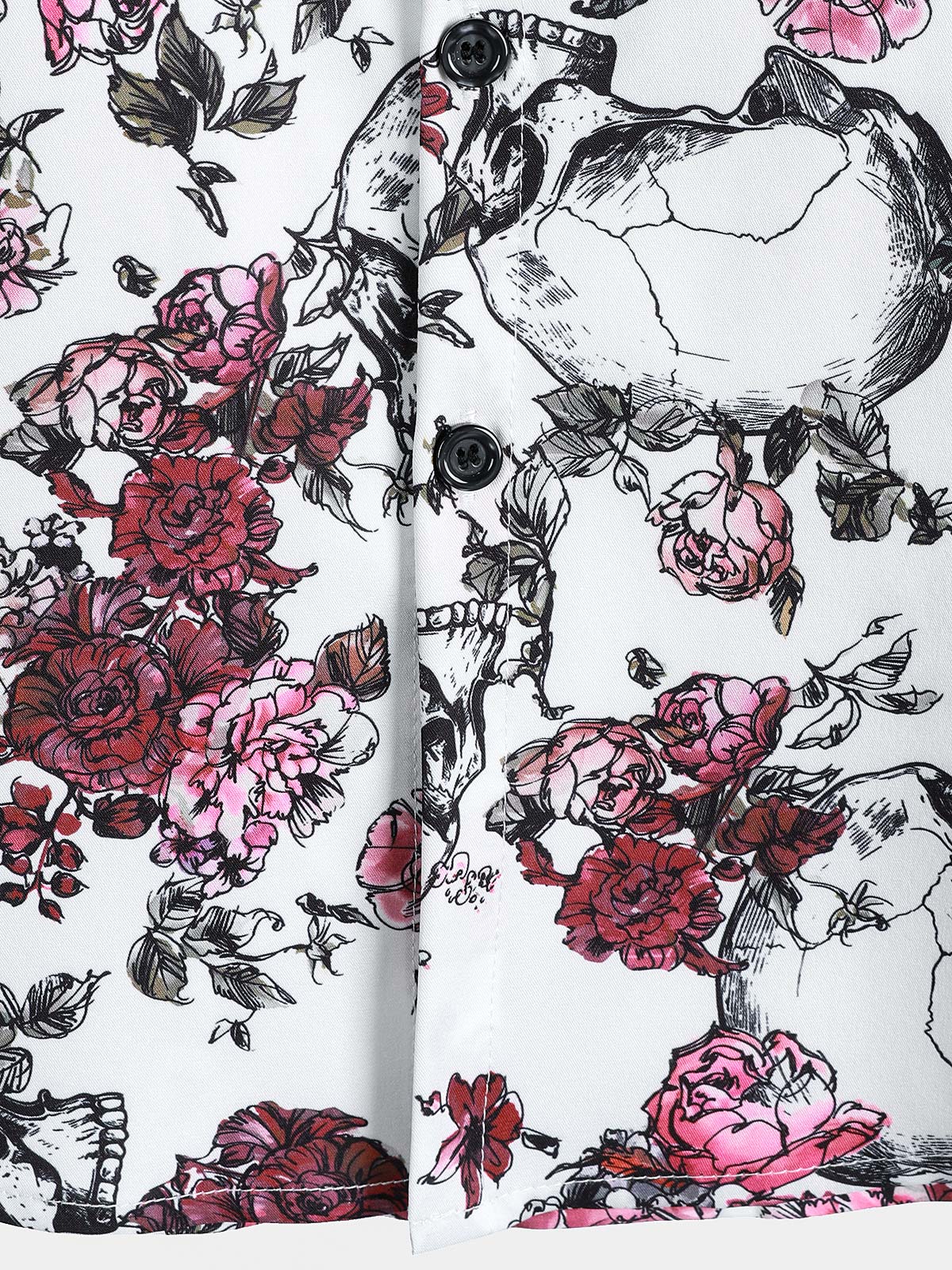 Men's Pink Flower Skull Graphic Button Up Short Sleeve Punk Rock Art Shirt