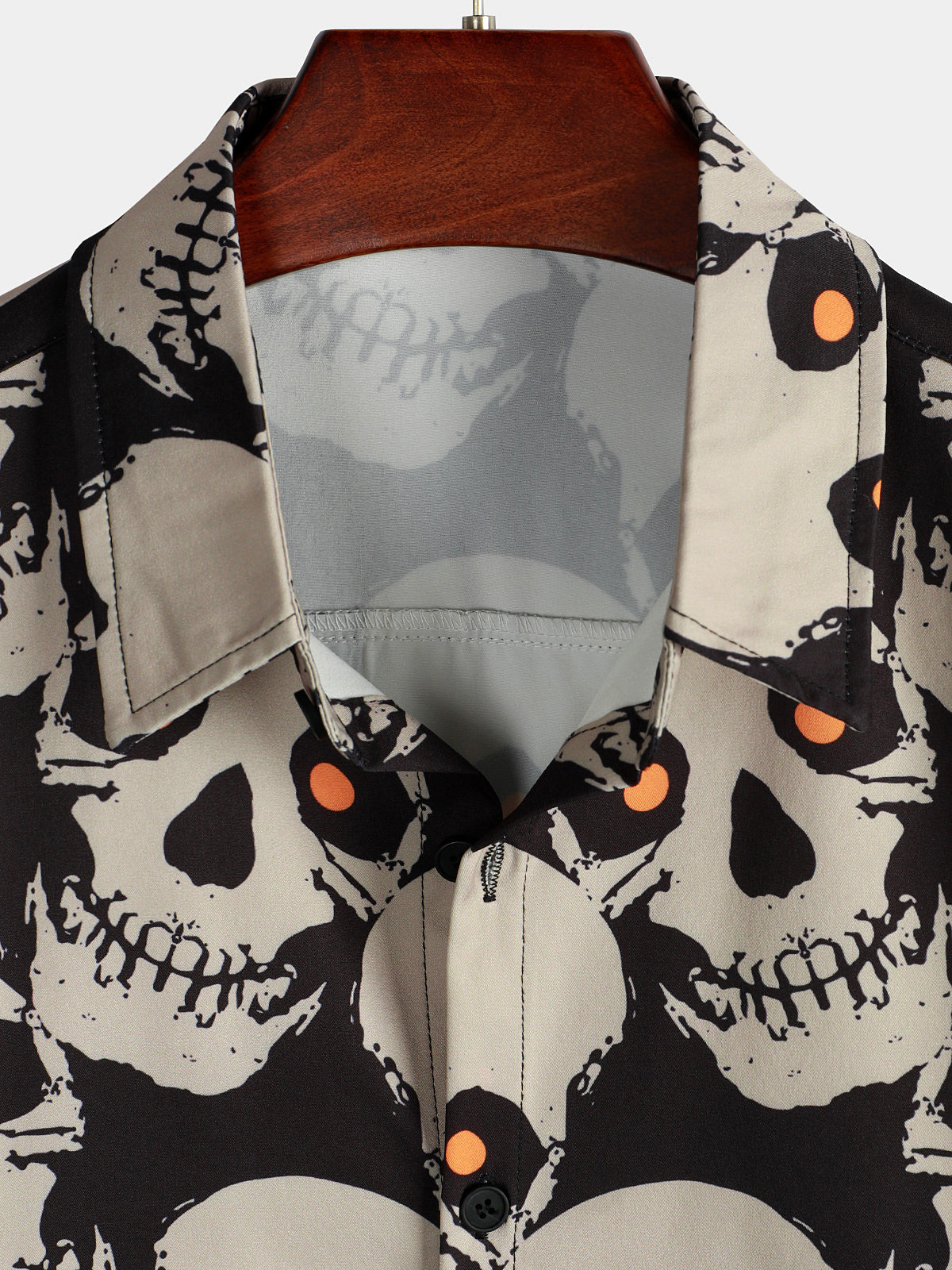Men's Skull Cool Graphic Button Up Short Sleeve Punk Rock Art Black Hawaiian shirt