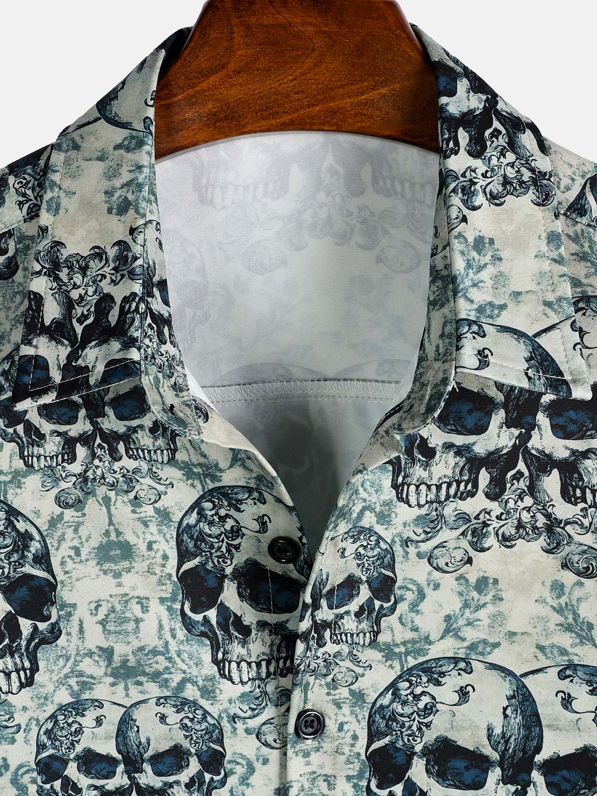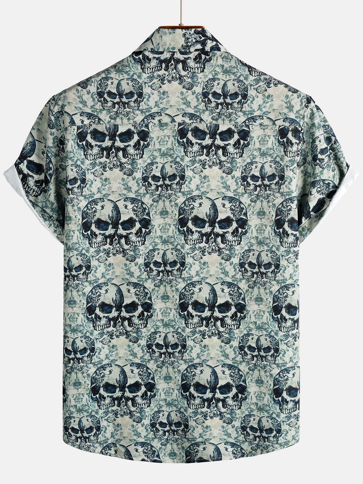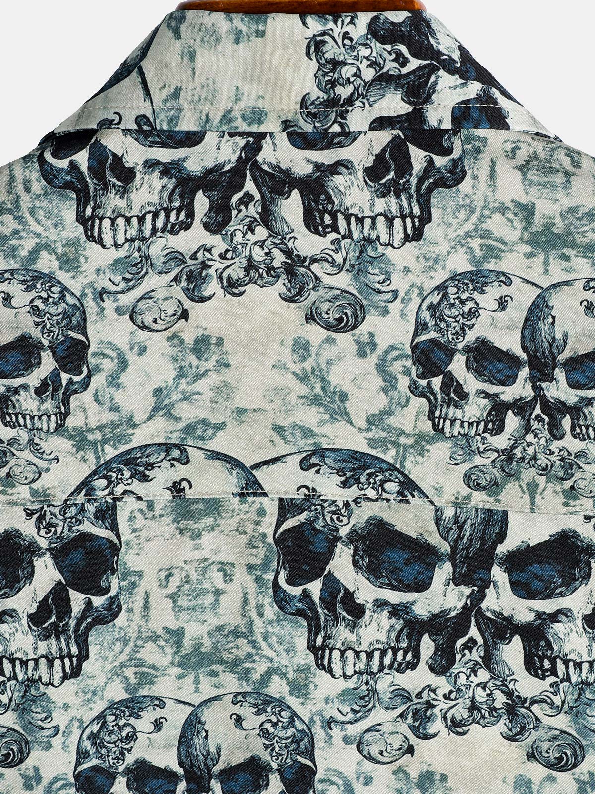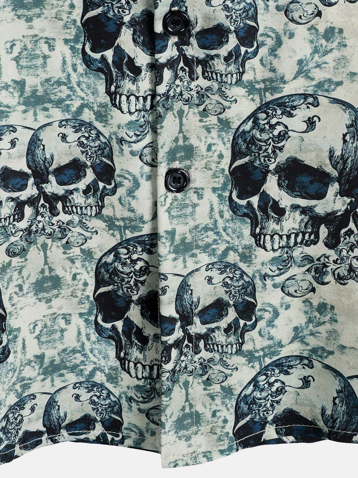 Men's Skull Cool Graphic Button Up Short Sleeve Punk Rock Art Shirt