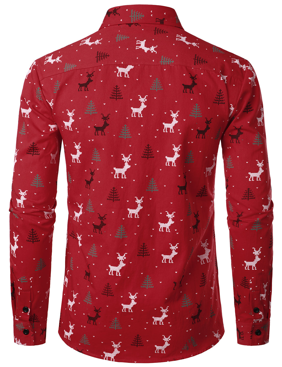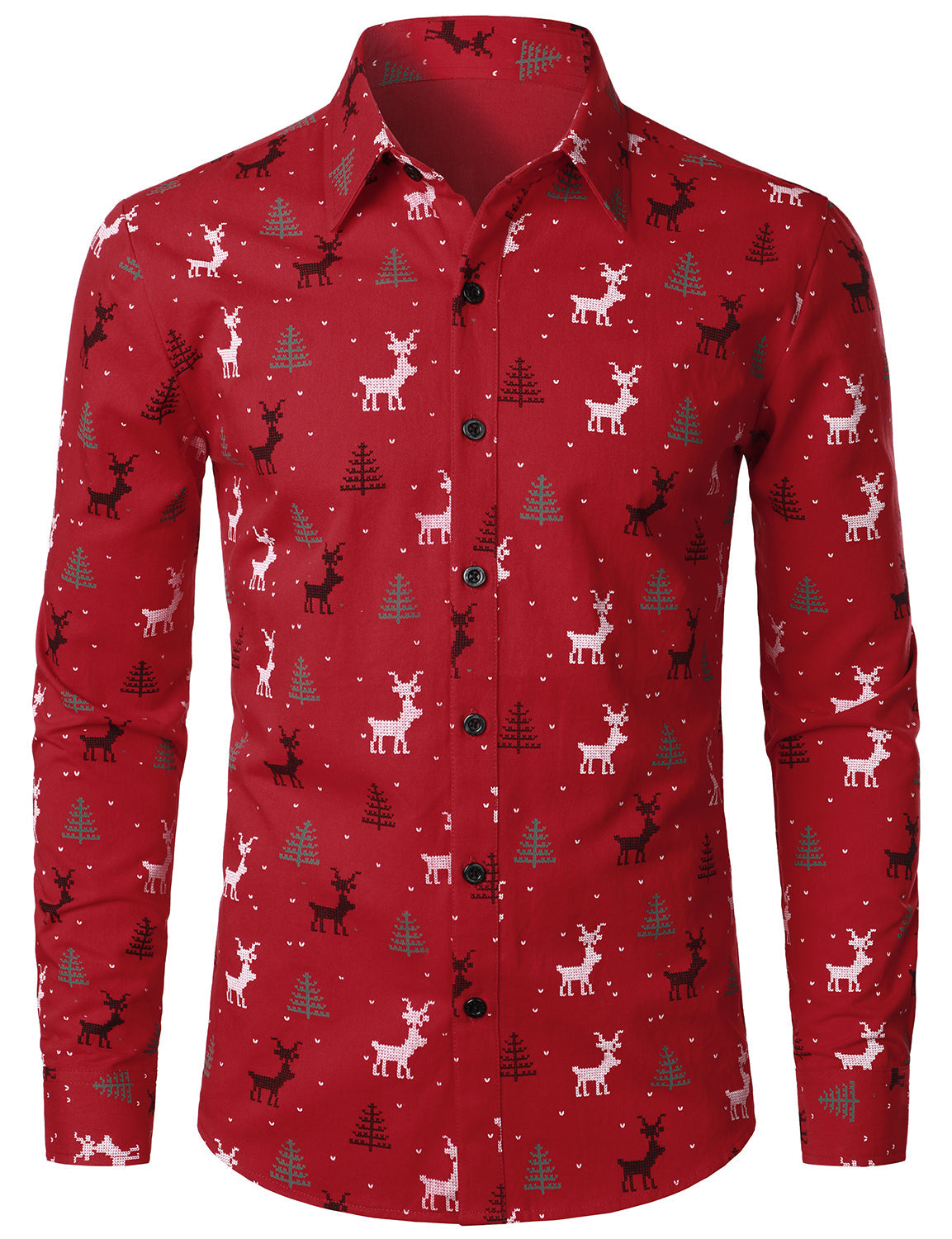 Men's Christmas Tree Elk Print Breathable Red Long Sleeve Shirt