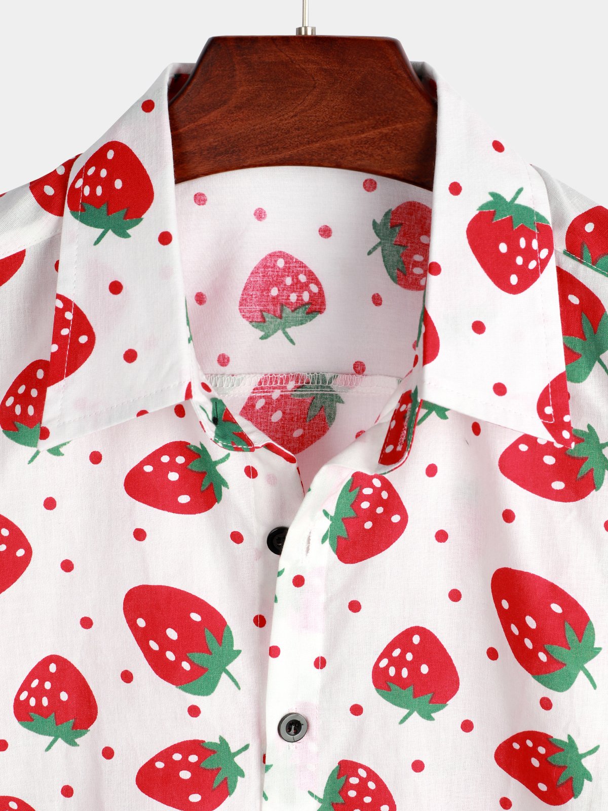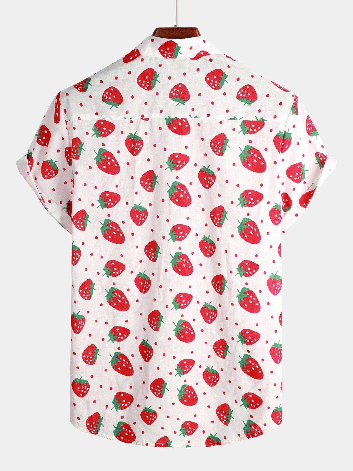 Men's Strawberry Print Fruit Cotton Button up Hawaiian Resort Cotton Collared Shirt